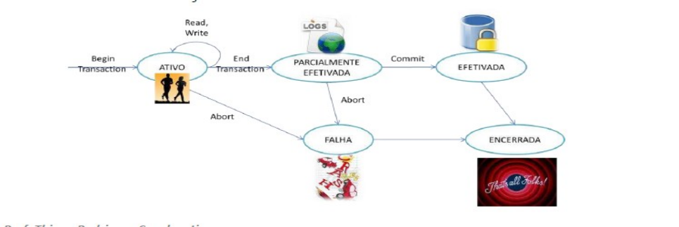 RESUMO TRANSAÇÕES As propriedades desejáveis, conhecidas pela sigla ACID, são as seguintes: Atomicidade: representa uma unidade atômica de processamento. Cada transação deve ser executada por completo ou não ser executada. Em outras palavras, cada operação presente dentro de uma transação deve ser executada com sucesso ou nenhuma delas será executada (sofrem rollback). Não deve existir a possibilidade de apenas parte de uma transação ser concluída com sucesso. Consistência: a correta execução de uma transação deve levar o banco de dados de um estado consistente para outro estado igualmente consistente. Desta forma, conserva-se a consistência interna do banco de dados. Dentro deste contexto, todas as restrições de integridade devem ser respeitadas. Isolamento: as atualizações não devem ser tornadas visíveis para outras transações até o commit. Uma transação não deve ter conhecimento sobre a execução das demais. Podemos dizer que um conjunto de transações é isolado entre si caso o efeito da execução delas concorrentemente seja o mesmo da execução de cada uma delas sequencialmente. Durabilidade: sempre que o banco de dados for modificado e essas mudanças forem efetivadas, elas não podem ser perdidas por causa de falhas subsequentes. Estados de uma transação: • Ativa: poderá emitir operações de read e write. • Parcialmente efetivada: alguns protocolos de restauração precisam garantir que uma falha de sistema não impossibilite a gravação permanente dos dados. Uma possibilidade é a gravação das alterações nos logs. Nesta etapa são feitas algumas verificações para garantir a continuação da execução. • Efetivada (committed state): uma vez atendida todas as verificações da etapa anterior, é possível executar o commit que se encarregar de gravar os dados em um armazenamento não volátil. • Falha: se uma das verificações falhar ou se a transação for interrompida em seu estado ativo. A transação deverá ser revertida para desfazer os efeitos das operações de write já efetivadas no banco de dados. • Encerrada: Quando a transação deixa o sistema. Uma transação T alcança seu ponto de efetivação (commit point) quando todas as suas operações que acessam o banco de dados foram executadas com sucesso e o efeito de todas elas estiver gravado no log. Após o ponto de efetivação, a transação é dita efetivada e seu efeito será gravado de modo permanente no banco de dados. A ordem de execução das operações de transações distintas executando concorrentemente de forma intercalada é conhecida como plano de execução ou escalonamento. Duas operações são ditas em conflito se elas satisfazem todas as três condições seguintes: 1. Pertencerem a transações diferentes, 2. Acessarem o mesmo item X, e 3. Pelo menos uma das operações sobre o item X ser um escrever_item(X). O padrão SQL define quatro níveis de isolamento de transação (Read uncommitted, Read committed, Repeatable read, Serializable) em termos de três fenômenos que devem ser evitados entre transações simultâneas. Os fenômenos não desejados são: dirty read (leitura suja) A transação lê dados escritos por uma transação simultânea não efetivada (uncommitted). [1] nonrepeatable read (leitura que não pode ser repetida) A transação lê novamente dados lidos anteriormente, e descobre que os dados foram alterados por outra transação (que os efetivou após ter sido feita a leitura anterior). [2] phantom read (leitura fantasma) A transação executa uma segunda vez uma consulta que retorna um conjunto de linhas que satisfazem uma determinada condição de procura, e descobre que o conjunto de linhas que satisfazem a condição é diferente por causa de uma outra transação efetivada recentemente. [3] Os quatro níveis de isolamento de transação, e seus comportamentos correspondentes, estão descritos na tabela abaixo: Níveis de isolamento da transação no SQL Nível de isolamento Dirty Read Nonrepeatable Read Phantom Read Read uncommitted Possível Possível Possível Read committed Impossível Possível Possível Repeatable read Impossível Impossível Possível Serializable Impossível Impossível Impossível