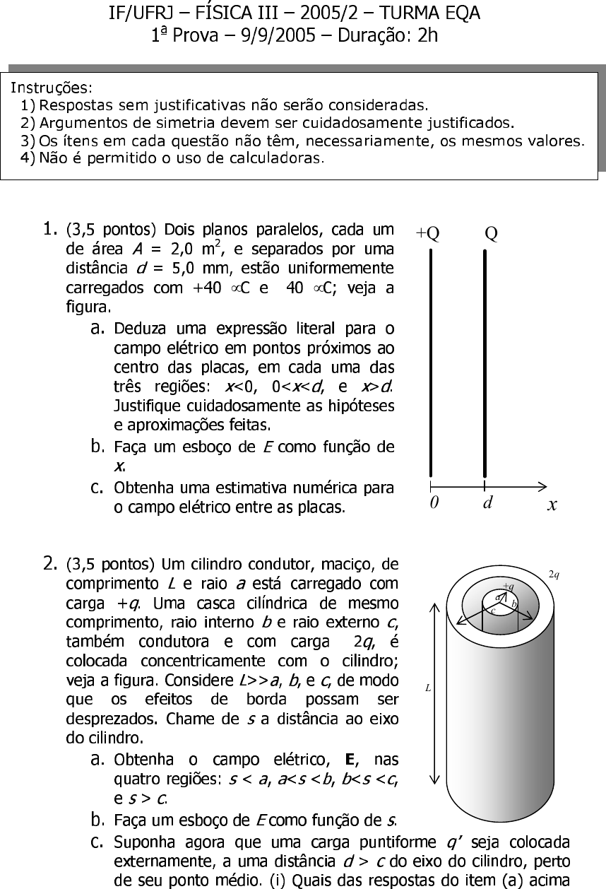 IF/UFRJ – FÍSICA III – 2005/2 – TURMA EQA 1a Prova – 9/9/2005 – Duração: 2h