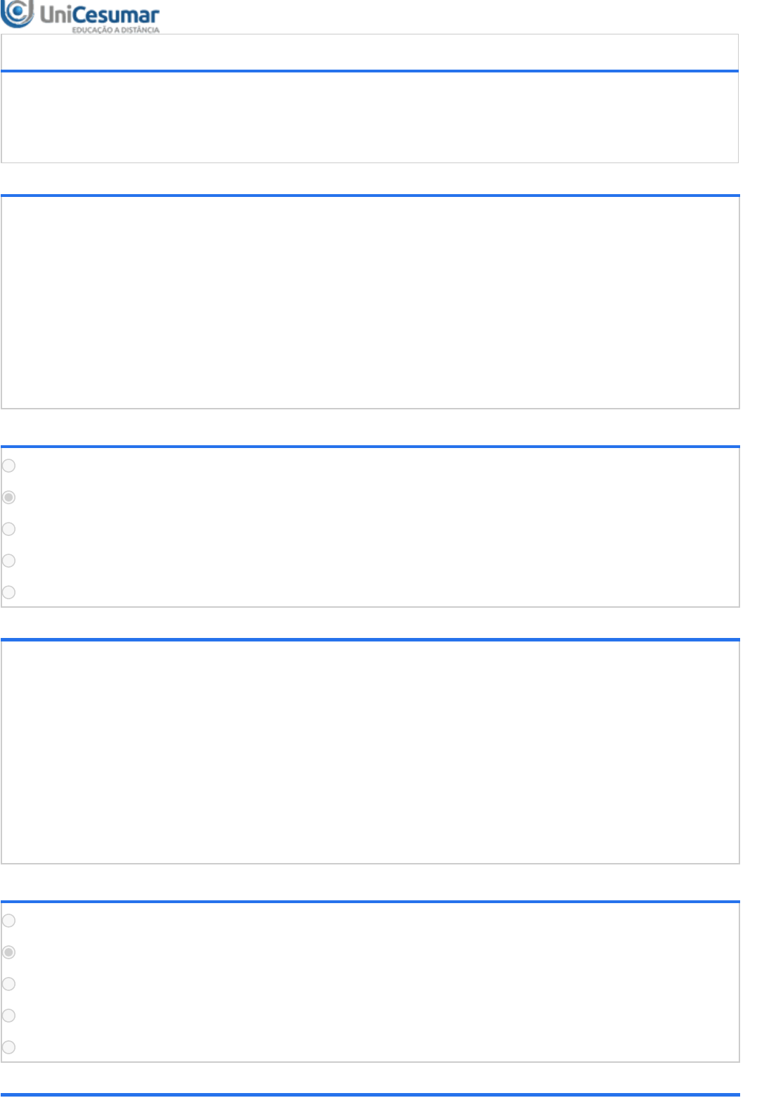 PREPARE-SE - 2021 - BEDU - DESENVOLVIMENTO MOTOR Período:19/07/2021 09:00 a 02/08/2021 23:59 (Horário de Brasília) Status:ABERTO Nota máxima:1,00 Gabarito:Gabarito será liberado no dia 03/08/2021 00:00 (Horário de Brasília) Nota obtida: 1ª QUESTÃO Em certo momento da vida adulta a ampulheta, descrita pelos autores Gallahue, Ozmun e Goodway (2013), é invertida, representando o decréscimo das habilidades motoras e há dois filtros que influenciam este acontecimento. BACIL, E.D.A.; MAZZARDO, O.; SILVA, M.P. Crescimento e Desenvolvimento Motor. Curitiba: InterSaberes, 2020. O filtro de fatores que não se modificam encontrado no gargalo da ampulheta e que influencia a velocidade da perda das habilidades adquiridas quando vira-se a ampulheta, é o filtro: ALTERNATIVAS Da maturação. Da hereditariedade. Psicológico. Do estilo de vida. Do ambiente. 2ª QUESTÃO O crescimento consiste em alterações no tamanho do corpo ou de partes específicas dele, tornando o indivíduo mais pesado e alto com o aumento dos órgãos e dos tecidos magros e gordos. Esse crescimento é decorrente de três processos. BACIL, E.D.A.; MAZZARDO, O.; SILVA, M.P. Crescimento e Desenvolvimento Motor. Curitiba: InterSaberes, 2020. Diante do que foi exposto e do conteúdo estudado, escolha a alternativa que apresenta estes três processos: ALTERNATIVAS Acréscimo; agregação; aumento. Hiperplasia; hipertrofia; agregação. Aptidão física; hipertrofia; treinamento. Maturação; economia de movimento; experiência. Ampliação; aptidão física; experiência. 3ª QUESTÃO A metáfora da Ampulheta dos autores Gallahue, Ozmun e Goodway (2013) é muito utilizada por professores e pesquisadores, uma vez que oferece explicação para um processo previsível, sequencial e irreversível pertinentes às diferentes fases do desenvolvimento motor. BACIL, E.D.A.; MAZZARDO, O.; SILVA, M.P. Crescimento e Desenvolvimento Motor. Curitiba: InterSaberes, 2020. A ampulheta heurística é um modelo teórico que explica o desenvolvimento motor: ALTERNATIVAS da infância à adolescência. da primeira à segunda infância. da adolescência à fase adulta jovem. da infância à vida adulta. da vida adulta à velhice. 4ª QUESTÃO O desenvolvimento motor, segundo Gallahue, Ozmun e Goodway (2013), é a alteração ao longo da vida do comportamento motor, que se relaciona com o movimento humano. Estas modificações no comportamento motor são resultados da interação das características do indivíduo, as influências do ambiente e as tarefas ou atividades motoras que induzem estas mudanças. GALLAHUE, D.L.; OZMUN, J.C; GOODWAY, J.D. Compreendendo o desenvolvimento motor: bebes,crianças, adolescentes e adultos. 7ª ed. São Paulo: Phorte, 2013. Assim, analise o que é afirmado a seguir: I. O fator individual se refere a hereditariedade, biologia, natureza e fatores intrínsecos. II. Ambiente contempla a experiência, aprendizado, encorajamento e fatores extrínsecos. III. A tarefa acontece a partir de fatores físico e mecânicos. A partir do texto acima e analisando informações, podemos considerar que está correto: ALTERNATIVAS I e II, apenas. II apenas. II e III, apenas. I, II e III. I e III, apenas. 5ª QUESTÃO Na ampulheta de Gallahue (2013), quando se trata da fase do movimento reflexo, temos dois estágios: o estágio de codificação de informações (do útero até 4 meses) e o estágio de decodificação de informações (4 meses a 1 ano). GALLAHUE, D.L.; OZMUN, J.C; GOODWAY, J.D. Compreendendo o desenvolvimento motor: bebes,crianças, adolescentes e adultos. 7ª ed. São Paulo: Phorte, 2013. Os estágios de codificação e de decodificação representam: ALTERNATIVAS Momentos de risco no desenvolvimento. Um período de estagnação no desenvolvimento motor. É um momento de se atentar e focar na performance das habilidades motoras. Uma ampla variabilidade de oportunidades para aprender habilidades fundamentais. Períodos de coleta de informações sensoriais, as quais serão processadas para facilitar o surgimento de movimentos voluntários.