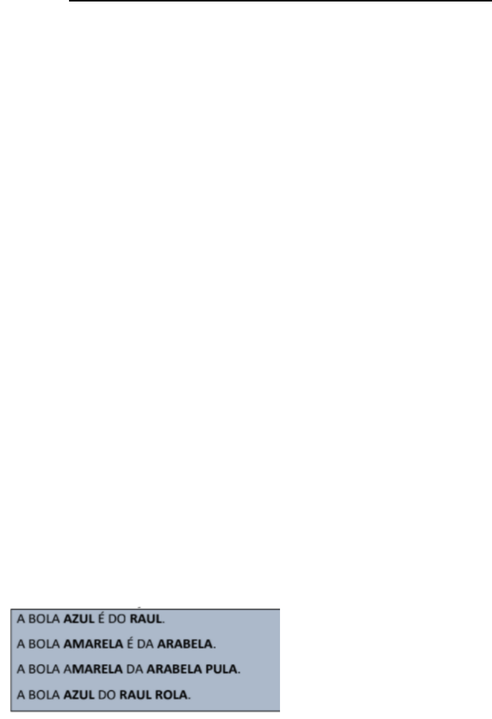 ESCOLA MUNICIPAL PROFESSOR JOAQUIM MODESTO DA ROSA-EIEF Período da 12ª Etapa: 2ª semana de 02 a 06 de agosto Turma: 2º ANO “C”. Prof. Zenaide. Aluno (a): LÍNGUA PORTUGUESA 1) FAÇA A LEITURA DO POEMA: O JOGO DE BOLA A BELA BOLA ROLA A BELA BOLA DO RAUL. BOLA AMARELA, A DA ARABELA. A DO RAUL É AZUL. ROLA A AMARELA E PULA A AZUL. A BOLA É MOLE, É MOLE E ROLA. A BOLA É BELA, É BELA E PULA. É BELA, ROLA E PULA, É MOLE, AMARELA, AZUL. A DE RAUL É DE ARABELA, E A DE ARABELA É DE RAUL. CECÍLIA MEIRELES 1) DE QUEM É A BOLA AZUL? ( ) ARABELA. ( ) RAUL. 2) E A BOLA AMARELA? ( ) ARABELA. ( ) RAUL. 3) MARQUEM COM UM X AS QUALIDADES QUE A BOLA TEM: ( ) MOLE ( ) GRANDE ( ) BELA ( ) PEQUENA 4) LEIA AS INFORMAÇÕES ABAIXO E DEPOIS COMPLETE. A) A BOLA AZUL É DO B) A BOLA É DA ARABELA. C) A BOLA AMARELA DA PULA. D) A AZUL DO RAUL ROLA. 5) BRINCANDO COM A PALAVRA BOLA. A) TROQUE A LETRA B PELAS LETRAS DO RETÂNGULO E DESCUBRA NOVAS PALAVRAS. A) LEIA E OBSERVE AS PALAVRAS QUE COMPLETA AS RIMAS E RESPONDA: COELHA – BOMBA – FACA – COCADA – PENTE –ORELHA – POMBA – VACA – ENXADA. 6) COLOQUE A VOGAL INICIAL DE CADA FIGURA. 7) AJUDE O ÍNDIO PASSAR PELO CAMINHO DO ALFABETO ATÉ CHEGAR EM SUA OCA. 8) LIGUE CADA DESENHO Á SUA LETRA INICIAL. MATEMÁTICA SUBTRAÇÃO. QUANDO TIRAMOS UMA QUANTIDADE, ESTAMOS FAZENDO UMA SUBTRAÇÃO. O SINAL DA SUBTRAÇÃO É ( - ) QUE CHAMAMOS DE MENOS. OBSERVE NA IMAGEM ABAIXO AS LARANJAS QUE VOVÓ COLHEU. 1) QUANTAS LARANJAS HÁ NA CESTA? A) ( ) 9 B) ( ) 7 2) VOVÓ USOU 5 LARANJAS PARA FAZER UM DELICIOSO SUCO. QUANTAS LARANJAS SOBRARAM NA CESTA? 9 - 5 R: NA CESTA SOBRARAM ____________LARANJAS. 3) DESENHE A RESPOSTA DE CADA SUBTRAÇÃO. 4) CONTINUE ANOTANDO QUANTOS PINTINHOS A EM CADA LINHA. GEOGRAFIA EXTRATIVISMO. A ATIVIDADE EXTRATIVA CONSISTE NA RETIRADA DE DIFERENTES RECURSOS DA NATUREZA, QUE PODEM SER DE ORIGEM VEGETAL, ANIMAL, OU MINERAL. ESSES RECURSOS RETIRADOS DA NATUREZA PODEM SER UTILIZADOS NA ALIMENTAÇÃO DAS PESSOAS OU NA FABRICAÇÃO DE PRODUTOS. Fonte: livro didático de geografia novo pitanguá. 1) QUAL É A ATIVIDADE QUE ESTÁ REPRESENTADA NAS FOTOS ACIMA? A( ) PECUÁRIA. B) ( ) EXTRATIVISTA. C)( ) INDÚSTRIA D) ( ) AGRICULTURA. 2) A ATIVIDADE EXTRATIVA CONSISTE NA RETIRADA DE DIFERENTES RECURSOS DA NATUREZA. A)( ) VERDADEIRA . B)( ) FALSA. 3) OS RECURSOS RETIRADOS DA NATUREZA PODEM SER UTILIZADOS NA FABRICAÇÃO DE PRODUTOS? A)( ) VERDADEIRA . B)( ) FALSA. 4) A EXTRAÇÃO DE LÁTEX DA SERINGUEIRA É UMA ATIVIDADE: A( ) EXTRATIVISTA VEGETAL. B) ( ) EXTRATIVISTA ANIMAL. 5) A PESCA É UMA ATIVIDADE: A( ) EXTRATIVISTA VEGETAL. B) ( ) EXTRATIVISTA ANIMAL. 6) ENCONTRE NO DIAGRAMA E PINTE OS NOMES DAS ATIVIDADES ECONÔMICAS: PECUÁRIA, INDÚSTRIA, EXTRATIVISMO E AGRICULTURA. A N B M W A L G N V G E T V T G R Y I V S I G P E C U Á R I A F S A J H T H O K C G K Ç H G B I N D Ú S T R I A B E K L V A L P S D F U R E W R T G H J M G H J B A G R I C U L T U R A S V S D E E R Y N D M S V H J M A S D I R J D A S V A U F E P E X T R A T I V I S M O I H J K L