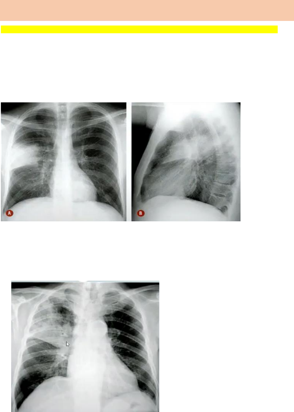 Anna Victória – T17 Pneumonia Pneumonia Lobar (é mais restrita a alguma área/lobo do parênquima pulmonar, no máximo pega 2 lobos) • Progride da região subpleural e atravessa segmentos adjacentes (distribuição não segmentar) para envolver a maior parte ou todo o lobo pulmonar • A consolidação quase invariavelmente toca a superfície da pleura visceral • Broncograma aéreo ✓ Brônquios pérvios e contêm ar em seu interior • Derrame pleural ✓ Geralmente pequeno ✓ A- Área de consolidação homogênea, junto a região subpleural, mais localizada ✓ B – A pneumonia lobar não passou para o lobo médio, está restrita ao lobo superior. Existe uma linha que não permite isso (fissura horizontal), onde há uma pleura impedindo a contiguidade do processo pneumônico ✓ Broncograma aéreo (na imagem não é possível visualizar), mas podemos observar isso na pneumonia lobar. Anna Victória – T17 ✓ Predominantemente homogênea, existe heterogeneidade do parênquima e um pouco de broncograma aéreo QUESTÃO DE PROVA ✓ A forma de propagação da lesão acima se dá por contiguidade, atravessando segmentos adjacentes → pneumonia lobar geralmente se propaga por contiguidade, acometendo um ou dois lobos pulmonares ✓ Notamos extensa consolidação no terço médio do hemitórax direito com presença de broncograma aéreo; ✓ O principal agente etiológico é Streptococcus pneumoniae (pneumococo); ✓ O consequente derrame pleural geralmente é pequeno para as lesões acima TC – área de pneumonia lobar Anna Victória – T17 Lâmina de um pulmão normal ✓ Espaços aéreos livres. ✓ O ar dentro dos alvéolos da a cor escura ao pulmão tanto na radiografia como na tomografia computadorizada Pneumonia ✓ Há ocupação da luz dos alvéolos por processo infamatório infeccioso ✓ O ar é eliminado, a luz dos alvéolos passa a ser ocupada por líquido ou por processo inflamatório. ✓ A cor escura (ar) é eliminada e passa a ser branca (opacidade), se a ocupação for completa vai ficar totalmente branco, se a ocupação for parcial dará origem a uma opacidade que é chamada de vidro fosco. Nesse esquema temos um pulmão normal e um pulmão com uma grande consolidação: ✓ Com broncograma aéreo (desenho da arvore brônquica em preto em decorrência da consolidação dos alvéolos que estão ao redor dos brônquios) Anna Victória – T17 Broncopneumonia ✓ Geralmente é uma pneumonia um pouco mais difusa, pega mais de 2 ou 3 lobos pulmonares, pode ser bilateral. ✓ Tipicamente progride da região centrolobular (ou seja, dos bronquíolos) para o envolvimento de todo o lóbulo pulmonar (consolidação lubular) ✓ É mais comum que a pneumonia lobar ✓ As areas de consolidação podem ser ESPARSAS OU CONFLUENTES e frequentemente afetam MAIS DE UM LOBO PULMONAR ✓ TC ✓ Focos nodulares de consolidação com 5-10 mm de diâmetro (nódulos do espaço aéreo ou nódulos acinares), nódulos centrolobulares e padrão de arvore em brotamento ✓ Os nódulos do espaço aéreo ou nódulos acinares muitas vezes também são identificados na radiografia ✓ Derrame pleural é COMUM, mas geralmente pequeno ✓ Tanto a pneumonia lobar como a broncopneumonia podem gerar derrame pleural! ✓ Linfonodomegalia hilar ou mediastinal ✓ Agentes etiológicos ✓ Staphylococcus aureus, Streptococcus pyogenes, Haemophilus influenzae, pseudomonas aeruginosa e bactérias anaeróbicas ✓ Pulmão esquerdo esta um pouco mais branco, não dá para definir onde começa e termina a aérea branca ✓ É uma área heterogênea de opacificação, com broncogramas aéreos, mas apresenta limites imprecisos Anna Victória – T17 Pneumonia redonda ✓ É um tipo de pneumonia lobar. Se manifesta como área de consolidação redonda ou oval que pode simular massa pulmonar ✓ Geralmente constitui etapa precoce na evolução de pneumonia lobar ✓ É mais comum em crianças ✓ Streptococcus pneumoniae (mais comum) ✓ Outros: Haemophilus influenzae, Legionella pneumophila e nocardia sp ✓ Área consolidada na metade do hemitórax esquerdo, com aspecto arredondado mesma imagem, evidenciando a área arredondada. Anna Victória – T17 (imagem de uma adolescente) Complicações Abscesso pulmonar ✓ Necrose do tecido pulmonar por infecção microbiana ✓ Na fase inicial - TC – área hipodensa arredondada, com realce do tec. Periférico, dentro de consolidação ou numa massa ✓ Alguns abscessos progridem para a formação de cavidade com presença de gás ✓ Margens internas dos abscessos geralmente são lisas ✓ Níveis líquidos são vistos em cerca de 70% ✓ Na fisiopatologia temos uma área consolidada que acabou necrosando (morrendo), se liquefaz. Na periferia há areas de realce aos produtos de contraste ✓ Essa necrose pode acabar drenando pra dentro de um brônquio, quando isso acontece -> se drenou liquido vai entrar ar, forma um nível hidroaéreo existe ar e existe líquido Anna Victória – T17 Pneumonia necrosante ✓ Além de ter a necrose inerente ao abscesso, há pedaços de fragmentos pulmonares dentro da necrose. ✓ Klebsiella pneumoniae (agente principal) Pneumatocele ✓ Espaço de conteúdo gasoso cuja parede é formada por espaços aéreos distendidos ✓ Imagem arredondada de conteúdo gasoso com paredes finas contida em área de pneumonia ✓ Pode persistir após resolução da pneumonia como cisto ✓ Muda de tamanho em curto espaço de tempo (mecanismo valvular) ✓ Pode se desenvolver de forma espontânea ✓ Agentes - Staphylococcus em crianças e Pneumocystis em pacientes adultos ✓ Não deve ser confundida com cavidade (escavação) ✓ São comuns em algumas condições -> pct HIV positivo que são infeccionados por um patógeno (pneumocystis jiroveci) -> gera zonas de pneumatocele