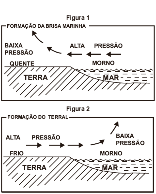 GABARITO ENEM / 2017 / PRIMEIRO DIA / CADERNO AZUL QUESTÃO 77 SALGADO-LABOURIAU, M. L. História ecológica da Terra. São Paulo: Edgard Blucher, 1994 (adaptado). Nas imagens constam informações sobre a formação de brisas em áreas litorâneas. Esse processo é resultado de · uniformidade do gradiente de pressão atmosférica. · aquecimento diferencial da superfície. · quedas acentuadas de médias térmicas. · mudanças na umidade relativa do ar. · variações altimétricas acentuadas. Comentário da questão A formação das brisas litorâneas (marinha e terral) ocorre devido à diferença de pressão entre as áreas comparadas (terra e mar). O menor calor específico do solo faz com que ele aqueça mais rapidamente criando uma zona de baixa pressão sobre o continente, e uma zona de alta pressão sobre oceano, criando assim a brisa marítima. O Terral é o processo inverso, onde uma zona de alta pressão é formada sobre o continente e assim os ventos se originam dessa região. Portanto, o aquecimento diferencial da superfície origina células de baixa pressão e alta pressão em diferentes lugares ao longo do dia, ocasionado uma mudança na direção dos ventos. Equipe Descomplica A melhor equipe de professores do Brasil ;) Gabarito da questão Opção B