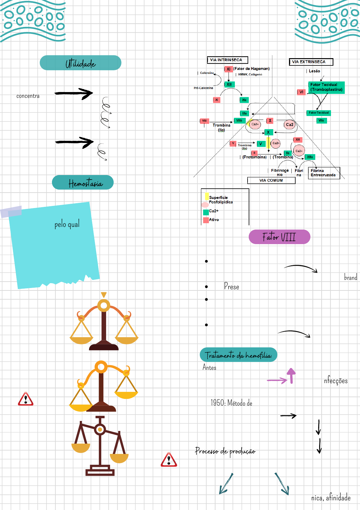 Hemofilia B Def.FVII - 70 a 85% Fator XVIII Hemofilia A Fator IX Proteínas da coagulação Anticoagulação Fibrinólise Hemorragia Trombose Circula na forma de complexo Fatores da coagulaçãoFatores da coagulação Hemoderivados Utilidade concentrado concentrado Mais comum Def. FIX-- 15 a 30% Hemostasia Processo pelo qual o sangue consegue se manter fluido e evitar sua perda em processos de lesão vascular Fator VIII Fator de Van Willenbrand Presente no espaço subendotelial O FvW se liga nas extremidade O complexo aumenta a meia vida do FVIII carboxi e amino do FVIII Protege contra degradação Tratamento da hemofilia: Infusões de plasma riscos de infecções 1950: Método de Cohn Uso de crioprecipitadoA partir do descongelamento Processo de produção Precipitação e cromatografia PEG, glycina Gel, troca iônica, afinidade Antes:: Atual:: Necessidade de transfusão de sangue total Estabeleceu uma dose Dissocia o complexo Reassociação Dificuldade de unir-e a plaquetas 2B: Rende FVIII na forma de complexo Muito gasto, porque não dá pra reutilizar o gel Resinas ressitentes a tratamentos com NaOh Limpa Reutiliza Liga FVIII seletivamente por reconhecimento da Heparina Remoção de vírus Piares de segurança Seleção de doadores Triagem de doações e liberação de pool não reativo Processo de inativação Pasteurização 1. - Fragiliade proteíca - Tem que desnaturar e provoca imunogenicidade Cromatografia em gel Cromatografia por troca iônica Rende FVIII na forma de complexo Cromatografia por afinidade 2. Calor seco 3. Solvente/detergente Só vírus envelopados 50% Vírus envelopados e não envelopados Aquecimento prolongado do produto liofilizado( tá em pó, mais resistente) 60ºC por 10hrs - Requer a gentes estabilizantes, como açúcares 100ºC/30min 80ºC/72hrs 4. Nanofiltração Retém o complexo FVIII/VWF intácto As membranas com poros de 15nm remove vírus não envelopados Filtração por 5. Filtração por 35-25nm CACL2 Filtra CACL2 6. Luz ultravioleta Não é muito utilizada em escala industrial Pode provocar dano nas proteínas Fator de Van Willembrand Circula acoplado ao fator viii Doença de von Willebrand Diminuição ou disfunção do FvW Doença hemoragica Tipo I 60 a 80% dos casos Sangramentos leve a moderado FvW em 20-50% Tipo II Defeito qualitativo 20-30% dos casos adesão e agregação plaquetária Circulação livre de FvW 2M Deficiência total do FvW Participa na agragação plaquetária A adesão plaquetária pode ser por ligação a colágeno ou a FvW que está ligado ao colágeno subendoletial Evita proteólise do FVIII 2A Subtipo mais comum Afinidade de união às plaquetas Ainda tem multímeros, mas com capacidade menor de ligação 3N Percda da capacidade de complexação FVIII/FvW Tipo IIII Sangramentos severos FII, FVII, IX, X Auxiliares Puriificação Cromatografia e precipitação: Inativação viral Pasteurização e detergente Sisntetizado no fígado e altamente glicosilada Circula em cadeia simples Dependente de vitamina K(Co-fator) e Ca Cadeia polipeptídica de 461aa Produção Obtido no complexo protrombínico(PCC) Fatores anticoagulantes Criosobrenadante Passa pelo método de Cohn Pontos isoelétricos(4.4 e 4.6)_são próximos Combinação de processos para obtenção Adsorção, cromatografia de troca iônica, afinidade Fator IX Fração 2 Tem muitos fatores, logo precisa de muitos métodos para tentar obter só o FIX