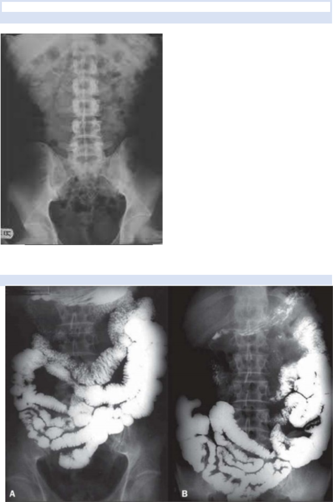 Alterações intestinais Radiografia simples do abdome em ortostase: · Avaliar o padrão da gaseificação intestinal. As bolhas de gás precisam ter: · Tamanho pequeno · Distribuídas difusamente no abdome Não é normal identificar o desenho de uma alça inteira através de uma bolha de ar. Isso pode significar obstrução. · Avaliar massas abdominais ou aumento do tamanho dos órgãos que podem empurrar as alças intestinais. Essa alteração pode ser vista porque a região aumentada não vai apresentar bolhas de ar, diferente do restante do abdome · Avaliar presença de corpos estranhos e calcificações Obs: Não observamos detalhamento através do RX. Patologias Radiografia contrastada para avaliar trânsito intestinal · Intestino Grosso é avaliado com contraste via retal. · Enema Opaco: uso de contraste via retal através de uma sombra · Podendo ser duplo contraste ou simples · Utiliza contrastante baritado (ingestão) · São feitas imagens ao longo da movimentação do contraste dentro das alças intestinais · Característica a serem analisadas: Avaliamos principalmente a luz intestinal · Calibres dos vasos · Dilatação · Estreitamento · Padrão da mucosa melhor visto com duplo contraste · Intestino delgado: avaliado através de contraste oral Colonoscopia Sem duplo Contraste: · Preenchido branco por igual Rx com contraste Intestino delgado · Pregas normais Tomografia· Permite avaliar a parede do intestino · Nesse exame é possível ver a presença de água dentro do intestino e contraste venoso · Esse tipo de contraste permitir visualizar um realce e opacificação da parede · Em algumas doenças a realce aumentado e em outras, realce reduzido Pregas intestinais: Aspecto Normal: · Pregas intestinais com aspecto de normal · Espessura da parede do intestino normal Contraste negativo: água Contraste positivo: bário ou iodo Enterotomografia · Uso de substância hiperosmolar para ocorrer preenchimento das alças intestinais. O intuito é que elas fiquem cheias de líquidos · Dessa forma é possível avaliar melhor as características dessa alça · Na segunda imagem é possível ver uma TM do abdome com contraste oral. Útil em algumas doenças. Patologias – Processos inflamatórios intestinais: Divesticulose/Diverticulite Presença de divertículos na parede intestinal. Através do contraste é possível ver os divertículos porque eles serão preenchidos. · Rx contrastado. · TM Divertículo com inflamação. · Diverticulite: Causa dor abdominal e pode causar febre · Gordura edemaciada (borramento e densificação – gordura mais esbranquiçada) · Parede espessada · Presença de líquido Divertículo pode perfurar · Gás solto dentro do abdome · Líquido fora da alça intestinal ao redor do divertículo · Tem a possibilidade de tá ligado somente a inflamação · “presença de bolas” na parede do intestino. Divertículo com conteúdo branco: · Contraste · Resíduos alimentares Frequentemente a coloração é preta porque contém ar. Divertículos com aspecto “normal” sem inflamação · Diverticulose Diagnóstico Diferencial da diverticulite: Colite Ulcerativa: · Presença de úlceras (são menores que os divertículos) · Espessamento da parede Apendagite epiplóica: Apêndices inflamados. Apresentam características de inflamação: · Densificação com borramento · Espessamento da parede intestinal · Pode ter um pouco de líquido ao redor Não costuma perfurar. Obstrução intestinal Sinais de obstrução intestinal: · Presença de acumulados nas alças · Presença de várias bolsas de ar nas alças com nível líquido · Sinal em escada Obstrução intestinal do íleo paralítico adinâmico (perdem movimentos peristálticos normais) Volvo Obstrução de uma alça intestinal · Essa alça gira em seu próprio eixo volvo · Dilatando o segmento Segmento grande, distendido com gás, com a parede de duas alças intestina fazendo relação Sinal do grão de café Volvo TM: · Alça bem dilatada · Ponto da obstrução · Presença de vários níveis líquidos. Sinal da escada problema de peristaltismo Sinal do grão de café: Segmento de alça intestinal grande, distendido com gás, com a parede de duas alças intestinais fazendo relação no meio Intussuscepção: Uma alça intestinal entra dentro da outra. No corte axial é possível ver as duas camadas (aspecto de alvo). A área apresenta: · Edema · Dupla camada Pode levar as isquemia e acúmulo de gás dentro da parede intestinal Causas de dilatação do ID: Muito importante diferenciar na TM se é uma obstrução ou uma paralisia Obstrução: · Vai ser possível analisar um segmento onde a alça está obstruída · Aderência · Volvo · Tumor · Bezoar · Corpo estranho Causas funcionais: Disfunção Muscular · Íleo paralíticos: alça não está se movimento. Não há ponto de obstrução EspessAMENTOS PARIETAIS INTESTINAIS: De acordo com o tipo de espessamento há sugestão de doenças. · Doença de Crohn padrão salteada (segmentar) Gás: Dentro da parede: Sinal preocupante Pode tá ligado a necrose e isquemia do segmento No caso de infecções pode tá ligado ao tipo de bactéria, anaeróbias por exemplo Presença de gordura Relacionada a doenças crônicas: Cronh, colite, celíaca Típico de isquemia (vasos sanguíneos obstruídos não chega o sangue com contraste) Realce só da mucosa: Característica de infecção Parede que realçou com contraste Vascularização normal ou aumentada Ligada a inflamação e hiperemia Colite Espessamento de pregas intestinais. O espaço entre a haustrações está aumentado Avaliar espessamento de prega pelo Rx é muito difícil. Espessamento focal · Espessamento intenso focal com luz do intestino diminuída sinal do barbante Doença inflamatória intestinal: · Parede bastante espessada · Realce mucoso · Contorno irregular Doença de chron Pode acometer desde a boca até o ânus. Geralmente acomete de maneia segmentar. 