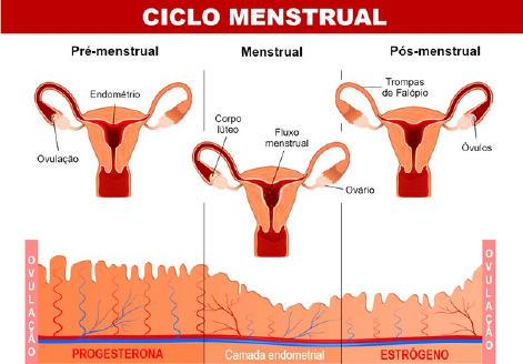 Menstruação A menstruação é a descamação cíclica do endométrio, a camada mais interna do útero, caracterizada por um sangramento com duração de 3 a 7 dias. Ela ocorre todos os meses e representa parte do ciclo reprodutivo da mulher, pois é quando o útero se prepara para receber o bebê, no caso de uma gravidez. Se não houver fecundação, tudo o que foi preparado no útero para acolher o feto se desfaz e é eliminado através da menstruação. A primeira menstruação é chamada de menarca. Ela marca o início dos ciclos menstruais, os anos férteis da vida mulher e se iniciam por volta dos 11 aos 15 anos de idade. A última menstruação é a menopausa, encerrando o ciclo reprodutivo da mulher. Ciclo Menstrual O ciclo menstrual se renova a cada mês, durando cerca de 28 dias e representa as interações de hormônios produzidos na hipófise (FSH e LH) com os hormônios ovarianos estrógeno e progesterona. O ciclo menstrual pode ser dividido em três momentos: o pré-menstrual, o menstrual e o pós menstrual. O pré-menstrual é quando as células foliculares, durante o desenvolvimento folicular, secretam estrógeno. Ele tem como objetivo estimular o amadurecimento dos óvulos e auxiliar no processo de tornar o endométrio mais espesso, promovendo assim a proliferação das células do endométrio. Além desse processo, o estrógeno ainda estimula a liberação do hormônio LH pela hipófise. O hormônio LH é responsável por regular a secreção de progesterona e controlar o amadurecimento dos folículos, que por sua vez, provoca a ruptura do folículo maduro, estimulando a ovulação. O óvulo, capturado pelas fímbrias da tuba uterina, permanece viável por aproximadamente 30 horas, que é o período fértil da mulher. O momento menstrual do ciclo ocorre após o rompimento do folículo e sob ação do hormônio LH, quando as células foliculares dão origem ao corpo lúteo, o qual passa a produzir doses crescentes do hormônio progesterona. A progesterona é que estimula o crescimento do endométrio, promovendo a sua vascularização e deixando o endométrio preparado para receber o embrião. Começa então a haver uma inibição da produção de FSH e LH pela hipófise, devido à progesterona produzida pelo corpo lúteo. A ação do hormônio FSH é muito importante, pois ele estimula o desenvolvimento de um folículo ovariano, que é conjunto de células com um ovócito primário em seu interior. Com a queda do hormônio LH, o corpo lúteo regride e se transforma em corpo albicans, que é inativo. Isso leva a uma redução da taxa de progesterona e estrógeno. Sem esses hormônios, o endométrio não se mantém e sua camada mais superficial se descama, dando origem à menstruação. A diminuição da taxa de estrógeno e progesterona faz com que a hipófise passe a secretar mais FSH e um novo folículo entra em desenvolvimento. Assim, recomeça um novo ciclo menstrual. Fases da menstruação O ciclo menstrual apresenta duas fases que se separam pela ovulação. A primeira fase está relacionada ao crescimento de um novo folículo e no espessamento gradual do endométrio. Já a segunda, ocorre após a ovulação, que é quando o endométrio torna-se receptivo para um possível embrião. Fase folicular A fase folicular representa a primeira fase do ciclo menstrual e tem início no primeiro dia da menstruação. O tempo médio de duração da fase folicular é entre 12 e 14 dias. O objetivo desta fase é aumentar a produção do hormônio FSH, para que assim, os ovários levem ao amadurecimento dos óvulos. As mudanças que ocorrem no organismo durante esta fase podem causar cólicas e fraqueza. Fase ovulatória A fase ovulatória é o momento que os níveis de estrogênio tendem a aumentar gradativamente, estimulando a produção do hormônio LH. É ele quem seleciona o óvulo mais maduro para que este saia do ovário. É quando ocorre a ovulação, ou seja, é o período mais fértil do ciclo menstrual. No organismo ela provoca mudanças de comportamento, aumentando o ânimo e a libido. Fase lútea A fase lútea representa a segunda fase da menstruação, ou seja, é quando o folículo deixado no ovário passa a produzir mais progesterona e preparando o útero para a gravidez. Neste momento podem ocorrer duas situações, a fecundação do óvulo ou não. Quando a fecundação não ocorre, o revestimento do útero é eliminado, resultando no início da menstruação e no novo ciclo. Já se houver a fecundação começa a produção do hormônio HCG, que produz estrogênio e progesterona com o objetivo de manter o revestimento do útero e iniciar a formação da placenta. Reações do corpo relacionadas ao ciclo menstrual Durante o ciclo menstrual, o corpo da mulher sofre diversas mudanças, provocando alterações físicas e emocionais, que por sua vez é representado pela Tensão Pré - Menstrual (TPM). Esta começa no meio do ciclo menstrual e tende a desaparecer quando chega a menstruação. Os principais sintomas da TPM são: Fadiga; Dor de cabeça e nas mamas; Inchaço; Cólica; Irritabilidade; Ansiedade; Oscilação de humor. Gravidez na adolescência A gravidez na adolescência é considerada a que ocorre entre os 10 e 20 anos, de acordo com a Organização Mundial de Saúde (OMS). Apontada como uma gestação de alto risco decorrente das preocupações que traz à mãe e ao recém nascido, a gravidez nesta faixa etária pode acarretar problemas sociais e biológicos. O Brasil apresenta elevados índices de adolescentes grávidas. Porém, o Ministério da Saúde indica que houve uma redução de 17% no número de mães entre 10 e 19 anos, no período de 2004 a 2015. Gravidez Precoce A gravidez na adolescência ocorre em um momento de intensas mudanças corporais A adolescência é um período da vida rico em manifestações emocionais, caracterizadas por ambiguidade de papéis, mudança de valores e dificuldades face à procura de independência pela vida. A gr