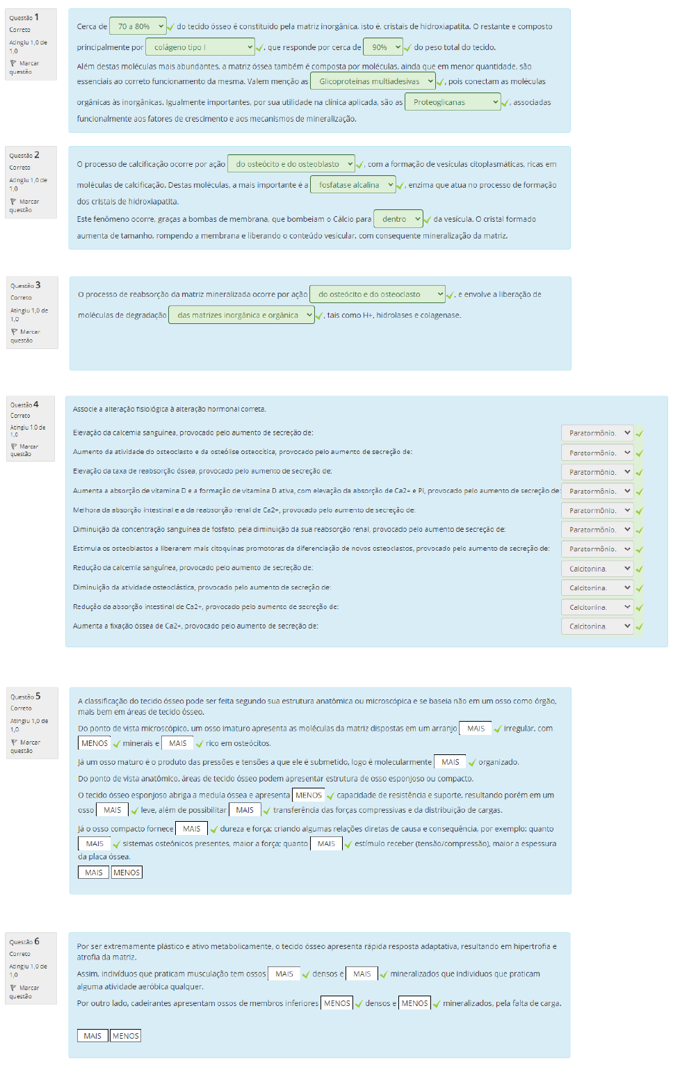 7. Desenhe um sistema osteónico (ósteón ou de Havers) e identifique com cores diferentes suas diferentes estruturas, em seguida a fotografe e anexe aqui. Dentre os muitos fatores que influenciam e determinam o correto desenvolvimento e crescimento dos ossos podemos citar a genética, a nutrição, o nível de atividade, os hábitos posturais, o estilo de vida e enfermidades. Considerando o aprendido sobre tecido ósseo, discuta estes fatores sob um ponto de vista histológico e clínico. O tecido ósseo é a unidade estrutural que tem papel central na sustentação do corpo. Esse tecido também tem funções de proteção, reserva, plasticidade e atua na regulação homeostático, controlando os níveis de cálcio e fosfato no sangue. Em sua composição, há predominância de matriz inorgânica (75%), a qual é constituída por cristais de hidroxiapatita. Na matriz orgânica, que compõem o restante do osso, estão presentes colágeno do tipo I, além de outras proteínas não- colágenas, como proteoglicanos, glicoporteínas multiadesivas, citocinas e fatores de crescimento, entre outros. Na composição desse tecido também estão presentes outros tipos células, com destaque para os osteoblastos, os osteócitos e os osteoclastos. Em relação a cada uma dessas células, podemos citar algumas características importantes. O osteoblasto, derivado de células osteoprogenitoras, é quem deposita a matriz óssea, iniciando o processo de mineralização pela liberação de vesículas na matriz. O osteócito, por sua vez, é uma célula que se origina do osteoblasto, e é responsável pela manutenção da matriz óssea, percebendo o estresse mecânico e regulando a homeostasia do cálcio e do fosfato. O osteoclasto, por fim, deriva de células hematopoiéticas e tem papel na reabsorção do osso por hidrólise enzimática da matriz. Ademais, os ossos contêm cavidades em seu interior, onde são encontrados a medula óssea, os capilares sinusóides e tecido. Também, duas membranas conjuntivas revestem os ossos: o endóstio (membrana interna) e o periósteo (membrana externa). Quanto a classificação, dois tipos de tecido ósseo são apresentados: o tecido ósseo maduro e o imaturo. O osso imaturo é um osso mais irregular, em relação a disposição das moléculas da matriz, além de possuir uma quantidade diminuta de minerais e ser apresentar mais osteócitos. O osso maduro, por sua vez, é um tecido que sofreu mais pressões e tensões e, por isso, apresenta um ordenamento celular mais organizado. Ainda sobre os tipos ósseos, observam-se ossos esponjosos e ossos compactos. O osso esponjoso é um osso poroso que serve de abrigo para a medula óssea, por possuir essa estrutura (porosa) ele é um osso mais fraco, mas que absorve mais energia e distribui melhor as cargas. Já o osso compacto, tem mais capacidade de suportar pressões/tensões, fornecendo força e dureza. No desenvolvimento e manutenção óssea, vários fatores (nutricionais, físicos, genéticos, comportamentais) influenciam esse tecido. Ao pensar na nutrição, a ingestão de algumas vitaminas é essencial. A vitamina C, por exemplo, é importante para a síntese de colágeno e, na sua falta, é diminuído o crescimento e aumenta risco de fratura. A vitamina A é essencial no controle das atividades osteoblásticas e osteocláticas e na manutenção dos discos epifisários. Também podemos citar a vitamina D, um pró-hormônio importante para a reabsorção do cálcio e fosfato pelo intestino delgado. Por fim, podemos lembrar da grande importância do cálcio. Esse mineral tem papel no processo de ossificação, garantindo a rigidez do osso. Além da nutrição, a diminuição de absorção de minerais ao longo do envelhecimento, por exemplo, pode ser influenciada por fatores genéticos, que tornam alguns indivíduos mais propensos a esse empobrecimento, o que pode levar a fraturas e lesões ósseos, mais graves com o aumento da idade. Outro fator fundamental na modelagem óssea é o nível de atividade. Ossos mais densos e mineralizados são resultado de respostas a desafios que ocorrem ao longo da transformação do osso imaturo. Por outro lado, pessoas sedentárias têm tendência a possuírem ossos mais imaturos e frágeis. Aliado a isso, os hábitos posturais influenciam o desenvolvimento ósseo de forma semelhante. A calcificação ocorre em resposta ao estímulo de manter certa posição. Em casos de escoliose, hipercifose ou hiperlordose a situação pode se agravar, pois se não houver correção do problema o osso se tornará maduro na posição “errada”. Além dessas questões, algumas enfermidades podem acometer os ossos. Entre elas pode-se citar a osteomalácia, que é decorrente da falta de cálcio e leva à fragilidade da matriz óssea. Osteoporose e osteopenia também são doenças que fragilizam o tecido pela ausência de minerais e vitaminas, seja pela dieta deficitária ou por algum problema de absorção. O tecido ósseo pode ser acometido ainda por tumores, como osteomas e osteossarcomas.
