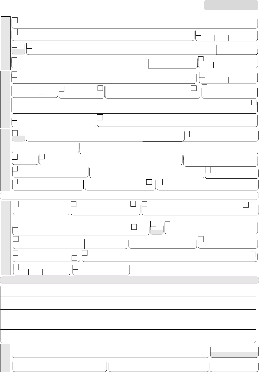 | | | | | | | | | | | Nº República Federativa do Brasil Ministério da Saúde SINAN FICHA DE NOTIFICAÇÃO/CONCLUSÃO SISTEMA DE INFORMAÇÃO DE AGRAVOS DE NOTIFICAÇÃO C o n cl u sã o | | | | | | | 31 Data da Investigação Conclusão 32 Classificação Final 1 - Laboratorial 2 - Clínico-Epidemiológico 1 - Confirmado 2 - Descartado 33 Critério de Confirmação/Descarte 42 Data do Óbito 43 Data do Encerramento Evolução do Caso41 1 - Cura 2 - Óbito pelo agravo notificado 3 - Óbito por outras causas 9 - Ignorado Local Provável da Fonte de Infecção Doença Relacionada ao Trabalho 1 - Sim 2 - Não 9 - Ignorado 40 | | | | | | | | | | | | Notificação/conclusão Observações adicionais In v es tig a do r Município/Unidade de Saúde | | | | | | Cód. da Unid. de Saúde Nome Função Assinatura Informações complementares e observações SVS 27/09/2005 Tipo de Notificação Data da NotificaçãoAgravo/doença | | | | | 1 32 | | 2 - Individual D a do s G er a is Código (CID10) Unidade de Saúde (ou outra fonte notificadora) Município de Notificação Data dos Primeiros Sintomas | | | | | 5 6 | | 7 | UF4 | | | | | | Código D a do s de R es id ên ci a N o tif ic a çã o In di v id u a l Nome do Paciente8 Data de Nascimento | | | | | 9 | | Nome da mãe16 11 M - Masculino F - Feminino I - Ignorado | | Número do Cartão SUS | | | | | | | | | | | | | | | 15 1-1ºTrimestre 2-2ºTrimestre 3-3ºTrimestre10 (ou) Idade Sexo 4- Idade gestacional Ignorada 5-Não 6- Não se aplica 9-Ignorado Raça/Cor13Gestante12 14 Escolaridade 1 - Hora 2 - Dia 3 - Mês 4 - Ano 0-Analfabeto 1-1ª a 4ª série incompleta do EF (antigo primário ou 1º grau) 2-4ª série completa do EF (antigo primário ou 1º grau) 3-5ª à 8ª série incompleta do EF (antigo ginásio ou 1º grau) 4-Ensino fundamental completo (antigo ginásio ou 1º grau) 5-Ensino médio incompleto (antigo colegial ou 2º grau ) 6-Ensino médio completo (antigo colegial ou 2º grau ) 7-Educação superior incompleta 8-Educação superior completa 9-Ignorado 10- Não se aplica 1-Branca 2-Preta 3-Amarela 4-Parda 5-Indígena 9- Ignorado | | | | | Código (IBGE) 35 Distrito 39 UF | Bairro38 O caso é autóctone do município de residência? 1-Sim 2-Não 3-Indeterminado 34 36 País 37 Município | | | | | Código (IBGE) CEP Bairro Complemento (apto., casa, ...) | | | | - | | Ponto de Referência País (se residente fora do Brasil) 23 26 20 28 30Zona29 22 Número 1 - Urbana 2 - Rural 3 - Periurbana 9 - Ignorado (DDD) Telefone 27 Município de Residência | UF17 Distrito19 Geo campo 124 Geo campo 225 | | | | | Código (IBGE) Logradouro (rua, avenida,...) Município de Residência18 | | | | | Código (IBGE) 2121 | | | | | | | | | | Código Sinan NET
