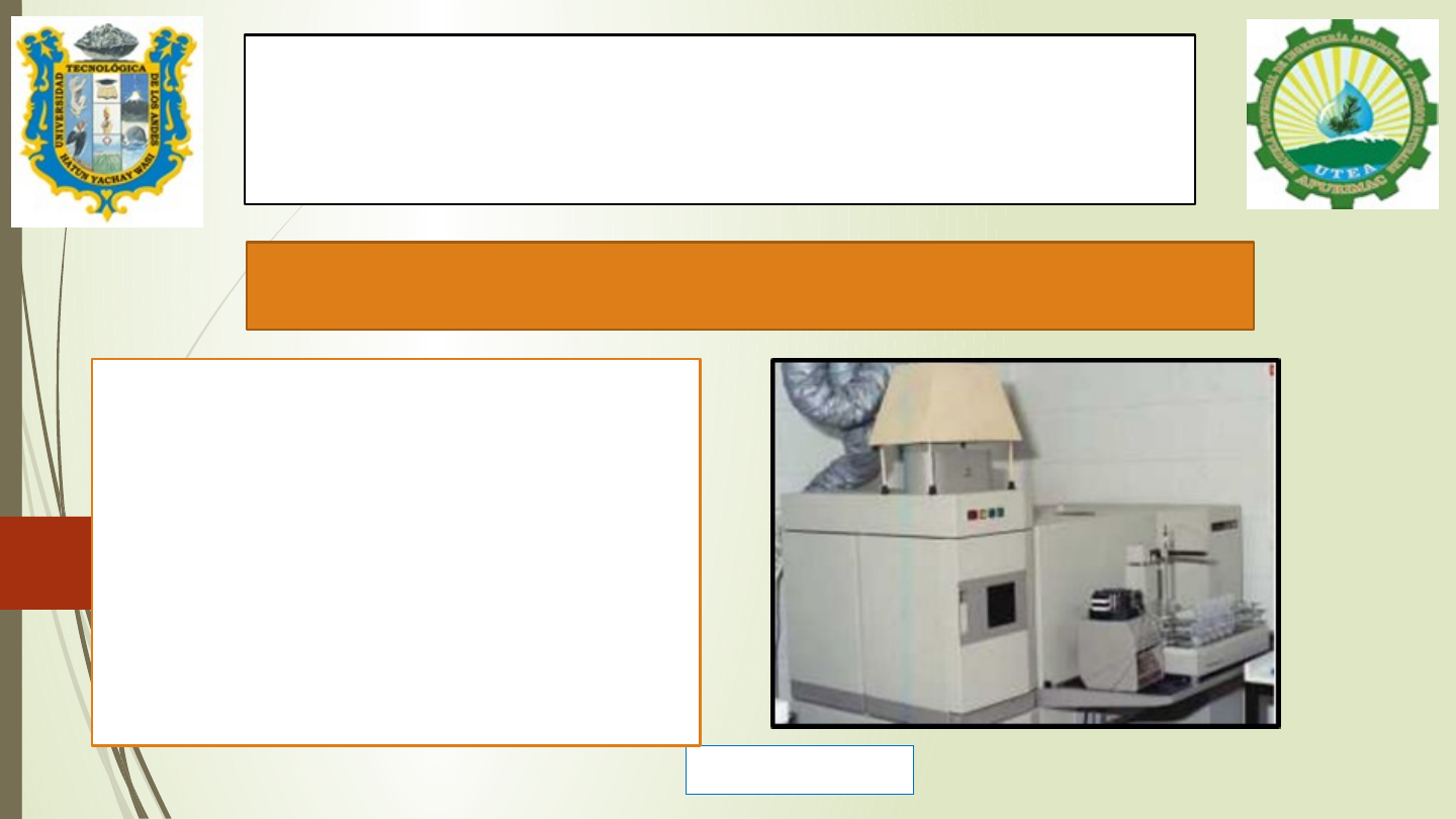 UNIVERSIDAD TECNOLÓGICA DE LOS ANDES FACULTAD DE INGENIERÍA ESCUELA PROFESIONAL DE INGENIERÍA AMBIENTAL Y RRNN TEMA: MANEJO Y OPERACIÓN DEL EQUIPO DE ABSORCIÓN ATÓMICA Abancay- 2021 CURSO: ANALISIS INSTRUMENTAL DOCENTE: ING. Edward Arostegui León ESTUDIANTES: CARDENAS PANCORBO Frank Yerson CHIRINOS RAMOS Gabriel Alonso ESTRADA CRUZ Arnold FLORES QUISPE Yina Ruthmery HERMOZA VERA Erick HUILCA CUELLAR Guisela 1. ¿QUÉ ES LA ABSORCIÓN ATÓMICA? La absorción atómica es una técnica común para detectar metales en muestras ambientales, aguas, suelos y aire, así como muestras minerales, alimentos, productos químicos, aleaciones y fundiciones. La técnica está basada en el hecho de que los átomos en estado fundamental de un determinado elemento absorben la energía emitida por una fuente de excitación del mismo elemento. Los átomos del analito presentes en una solución son convertidos a su estado atómico mediante el uso de una llama, horno de grafito o manta calefactora. PRINCIPIOS DE ABSORCIÓN ATÓMICA REQUERIMIENTOS DE UN SISTEMA PARA AA Fuente de emisión de luz característica. Un sistema de atomización para crear una población de átomos. Un monocromador para separar la luz de una longitud de luz característica. Un sistema óptico para dirigir la luz la fuente a través de la población de átomos y el monocromador. Un detector sensible a la luz. Sistema electrónico el cual mide la respuesta del detector. 2. ¿CUÁL ES EL EQUIPO DE ABSORCIÓN ATÓMICA? Espectrómetro de Absorción Atómica Espectroscopia es la medición e interpretación de la radiación electromagnética absorbida, dispersada o emitida por átomos, moléculas u otras especies químicas. dado que cada especie posee estados energéticos característicos, la espectroscopia puede utilizarse para identificarlas y cuantificarlas. La espectroscopia de Absorción atómica es una técnica analítica que permite la cuantificación de 67 elementos metálicos presentes como contaminantes o constituyentes en muestras de diverso origen, como son, fármacos, fluidos y tejidos biológicos, muestras industriales, ambientales y en alimentos principalmente. Tiene como fundamento la absorción de radiación de una longitud de onda determinada, que es absorbida selectivamente por átomos que tengan niveles energéticos cuya diferencia en energía corresponda en valor a la energía de los fotones incidentes. La radiación de absorción involucra una transición de esos átomos desde el estado basal hasta un nivel excitado. 3. ATOMIZACION DE LAS MUESTRAS El proceso por el cual la muestra se convierte en un vapor atómico se denomina atomización. La precisión y exactitud de los métodos atómicos dependen en gran medida de la etapa de atomización. La muestra liquida es aspirada a traves de un tubo capilar y conducida a un nebulizador, donde se desintegra y forma pequeñas gotas de liquido (niebla) que son conducidos a una llama, donde se produce la desolvatacion (se evapor el disolvente hasta producir un aereosol molecular solido finalmente dividido). Luego la disociacion de la mayoria de estas moleculas producen un gas que origina la formacion de atomos. Atomización de llama: Atomización Electrotérmica (Horno de Grafito) Espectrometría de absorción atómica de horno de grafito (GFAAS) es también conocido como espectrometría de absorción atómica electro térmica (ETAAS). La técnica se basa en el hecho de que los átomos absorben la luz en la frecuencias o longitudes de onda característica del elemento de interés. Dentro de ciertos limites, la cantidad de luz absorbida se puede correlacionar linealmente con la concentración de analito. Los átomos de la mayoría de elementos pueden ser producidos a través de las muestras mediante la aplicación de altas temperaturas. En GFAAS, las muestras se depositan en un tubo de grafito pequeño, que puede ser calentado para vaporiar y atomizar el analito. Analito: es un componente (elemento, compuesto o ion) de interés analítico de una muestra. Es una especie química cuya presencia o contenido se desea conocer. Modo de funcionamiento A través del cuerpo del horno de grafito, para enfriamiento del sistema cuando así requiera, además de un gas inerte (argón o nitrógeno) que sirve como gas de protección de sistema. El gas inerte fluye exteriormente al tubo de grafito para evitar la oxidación provocada a altas temperaturas, e interiormente para desalojar los componentes volátiles que se produzcan. El calentamiento del horno y del tubo se hace por medio de una fuente de poder eléctrica controlada por un microprocesador. El microprocesador abre y cierra el gas inerte, sube la temperatura indicada, sostiene la temperatura y el tiempo deseado, abre el flujo del agua para el enfriamiento del horno, después de la secuencia del programa completo. 4. INSTRUMENTACIÓN DE ABSORCIÓN ATÓMICA Fuentes de radiación Debe originar una banda estrecha, de intensidad adecuada y estabilidad suficientes, durante periodos de tiempos prolongados. Los más comúnmente utilizados son las lámparas de cátodo hueco. Detector Miden la intensidad de la radiación antes y después de la absorción por la muestra. A partir de los valores obtenidos se podrá calcular la radiación absorbida. En los aparatos comerciales se emplean tubos fotomultiplicadores. Sistema nebulizador atomizador (quemado) El nebulizador y el atomizador suelen estar integrado en uno, en este sistema la disolución de la muestra es aspirada y dirigida como una fina niebla hacia el atomizador, lugar donde se forman los átomos en estado fundamental. Monocromador Tienen como función seleccionar la línea de absorción, separándose de las otras líneas de emisión emitidas por el cátodo hueco. Los aparatos comerciales suelen venir equipados con monocromadores del tipo de prisma o red de difracción. FUENTES DE RADIACION: Lámparas de Cátodo Hueco (LCH): Consiste en un tubo de vidrio sellado herméticamente y lleno