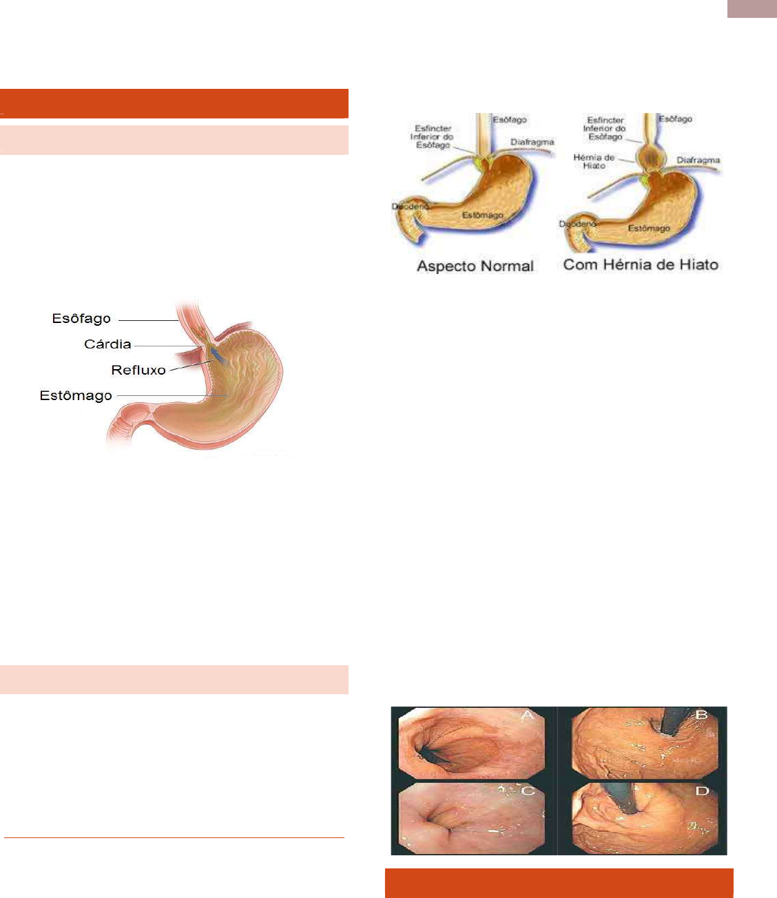 Fonte: aula da professora Vanina. 1 Melinna Cardoso – P6 DRGE INTRODUÇÃO: DEFINIÇÃO: A DRGE decorre da falha da barreira normal antirrefluxo em proteger contra quantidades frequentes e anormais de refluxo gastroesofágico. o Refluxo gastroesofágico: conteúdo gástrico em movimento retrógrado sem esforço a partir do estômago para esôfago. OBS: A maioria dos sintomas decorrem do pH ácido ao qual o epitélio do esôfago não está “acostumado”. OBS: Há, ainda, o refluxo alcalino que é mais difícil de tratar e causa muitos sintomas extra-esofágicos. OBS: Sempre que o paciente se queixar de “azia”, deve- se perguntar o que é azia para ele, pois alguns chamam a pirose de azia e outros denominam por azia uma queimação localizada no epigástrio. EPIDEMIOLOGIA: Acomete 12% da população urbana brasileira; Sexo: igual entre homens e mulheres, mas entre homens é mais comum a apresentação de casos mais graves, como esofagite e esôfago de Barrett; Aumento da idade é um fator importante na prevalência de complicações da DRGE. FATORES DE RISCO POPULACIONAIS Idade: aumenta com a idade; Gestação: aumenta durante a gestação aumento da pressão intra-abdominal/ alterações hormonais; Obesidade: é mais frequente no obeso aumento do volume intra-abdominal; Hérnia Hiatal principalmente por deslizamento: relaciona-se às formas mais graves; Fatores genéticos: sugerem participação genética. Na imagem abaixo, observa-se uma Hérnia de Hiato por deslizamento o estômago desliza para a cavidade torácica. Abaixo, observa-se uma imagem por Endoscopia Digestiva alta. A esôfago distal (onde ocorrem a maioria das lesões por DRGE. o O normal é que a transição esôfago-gástrica (TEG) esteja no pinçamento diafragmático. Através da EDA, pode-se fazer o diagnóstico de hérnia hiatal por deslizamento e medir o tamanho da hérnia. o Nas imagens que vemos o aparelho de endoscopia, estamos vendo a cárdia e o fundo gástrico. O normal é que a cárdia esteja ajustada ao aparelho. Não estar justa pode ser um sinal indireto de DRGE, porém, até mesmo a sedação pode relaxar o esfíncter esofágico inferior. o Assim, através da EDA não se pode dar o diagnóstico de Hipotonia do Esfíncter Esofágico Inferior (quem faz isso é a Manometria), mas sim sugerir que a Cárdia não está ajustada ao aparelho. ETIOPATOGENIA As lesões características da DRGE ocorrem quando a mucosa do órgão é exposta ao refluxato gástrico que contém agentes agressores: ácido, pepsina, sais biliares e enzimas pancreáticas. Refluxo fisiológico: refluxo de curta duração e rápida depuração todos possuem. Fonte: aula da professora Vanina. 2 Melinna Cardoso – P6 Refluxo patológico: tem como principal causa as aberturas transitórias ou relaxamentos transitórios do esfíncter esofágico inferior e hipotensão esfincteriana ocorre várias vezes ao dia, de modo que o paciente não consegue depurar o ácido que vai para o esôfago. Dilatação do espaço intercelular: mudança morfológica mais precocemente observada no epitélio esofágico por isso, a EDA pode ser normal e o paciente mesmo assim ter DRGE com sintomas. OBS: O refluxo ácido é muito mais comum do que o refluxo não ácido; OBS: Refluxo não ácido envolvido na gênese de sintomas extraesofágicos como tosse, pigarro e globus (“bolo na garganta”). OBS: Globus faríngeo também pode estar presente no refluxo ácido. FATORES PATOGÊNICOS NA DRGE A gravidade da doença vai depender de: Episódios de refluxo gastroesofágico: frequência; volume ou extensão do refluxato; aberturas transitórias e hipotensão do EEI; Redução da capacidade de depuração esofágica; Agressividade do material refluído: ácido, álcalis, pepsina e hiperosmolaridade; Redução na resistência tecidual ao conteúdo refluído; Natureza do refluxato: líquido ou gasoso; CLASSIFICAÇÃO DA DRGE 1. Doença de refluxo não erosiva: forma mais comum quando possui os sintomas, mas o esôfago está normal à endoscopia; 2. Doença de refluxo erosiva: apresentação clássica; Imagem de endoscopia digestiva alta, região do esôfago distal, onde observa-se que a TEG está um pouco acima e há uma erosão longitudinal. Pela classificação de Los Angeles, que vai de A – D de acordo com a gravidade, a imagem está na classificação B lesão maior que 5mm que não faz confluência com nenhuma outra erosão. Nesse caso, a biópsia não é necessária, a EDA é suficiente para classificar. OBS: Helicobacter pylori não tem relação com a DRGE; ESÔFAGO DE BARRETT: Substituição do epitélio escamoso estratificado do esôfago por epitélio colunar com metaplasia intestinal; o Diagnóstico: Endoscopia Digestiva Alta e Biópsias obrigatoriamente, o diagnóstico é histopatológico; OBS: Com a metaplasia, a célula esofágica se modifica e fica semelhante à célula intestinal; o Dano maior: ocorre mais pelo tempo prolongado de exposição ao pH ácido inferior a 4. o Condição pré-maligna aumenta o risco de adenocarcinoma do esôfago distal. OBS: Há a classificação em Barret Curto (lesões de até 3cm é preciso ser muito certeiro na hora de biopsiar, pois o esôfago sangra muito) e Barret Longo (é mais fácil para biopsiar, mas geralmente já possui displasia); OBS: Histopatologicamente, a Metaplasia Intestinal fecha o diagnóstico de Esôfago de Barret; A presença de Displasias de baixo/ alto grau mudam o tratamento e o acompanhamento. Na imagem acima, observa-se que a TEG está um pouco acima do nível do pinçamento diafragmático (hérnia hiatal por deslizamento). Além disso, é marcante a diferença de coloração semelhante a um prolongamento da mucosa gástrica, característico do esôfago de Barret. É necessário biopsiar a irregularidade. DIAGNÓSTICO DA DRGE Anamnese cuidadosa: escutar com cuidado para não induzir respostas. Sintomas típicos: Pirose; Regurgitação. o Sintomas típicos 2 ou mais vezes por semana, durante 4 a 8 
