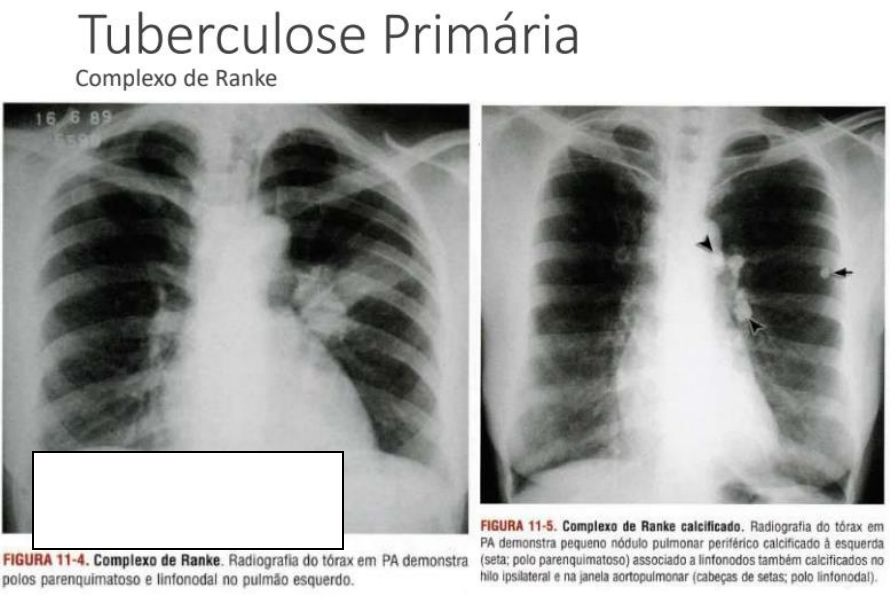 Tuberculose Introdução Agente etiológicos Micobacterium tuberculosis (padrão que lembra infecção bacteriana e fungica, na imagem tbm Forma de transmissão respiratória Quadro clinico suspeito tosse persistente por + 4 semanas + febre baixa vespertina+ perda de peso Formas de manifestação pulmonar + comum – forma de infecção inicial Tuberculose primária Forma inicial Pulmão e linfonodos + comum em crianças menores de 5 anos Fisiopatologia Complexo de Ranke – cicatriz radiológica, mostra que teve essa infecção no passado, nódulo calcificado periférico, linfonodos voltam ao normal mas calcificado Infecção tuberculose ativa – opacidade e linfonodos aumentados Alteração pulmonar e linfonodos aumentados Tuberculose pós primária Reativação de infecção lactente ou reinfecção Pessoas HIV+, > 70 anos, portadores de doenças crônicas, usuários de álcool e/ou outras drogas, uso terapia imunossupressora Fisiopatologia Região apico posterior do pulmão Massa mediastinal por linfonodos aumentados TC com contraste p/ ver mediastino- linfonodo grande Opacidade mal delimitada na região superior esquerda Na TC + nítido nódulos pequenos e agrupados, aspecto centronodulares Opacidadeas mal definidas na parte superior, com áreas + brancas = focos de consolidação Cavitações= cavernas opacidades arredondadas (+ branca) com radiotransparências central Destruição de parênquima e ar dentro Em outros casos pode ter liquido dentro da cavidade e pode ter um nivel hidroaereo liquido seroso com sangue e liquido seroso do pulmão Parênquima com opacidades de aspecto nodulares + cavitação Nódulos centrolobulares – aspecto de arvore em brotamento bem frequenre na TB mas não é especifico Opacidades Areas de consolidação com cavidades se formando e pode formar uma caverna depois Tuberculoma = área de consolidação que ficou arredondada com aspecto de nódulo Problema no diagnóstico para investigar de outras possíveis causas – diferencia pela clinica da TB + alterações radiológicas juntamente Paredes da cavitação -formato e espessura irregular Cavitação – alterações pulmonares ao redor da Múltiplos pequenos nódulos, nos 2 pulmões, difusamente, aleatória/randômica +outros achados Opacidade em consolidação (característico de pneumonia lobar) Diferencia = clinica + alterações radiológicas* Na pneumonia pode ter cavitação tbm mas menos frequente TC – broncograma aéreo + cavitação* Tuberculoma e pseudotumoral lembram aspecto de tumor A preocupação é o diagnóstico Pseudotumoral – consolidação grande Consolidação TC Nódulos +/- do mesmo tamanho Indicações TC Pacientes com sintomas respiratórios e baciloscopia do escarro negativa Casos suspeitos de tuberculose com radiografia normal ou duvidosa Necessidade de avaliação mediastinal Doença disseminada Alterações endobrônquicas Diagnósticos diferenciais Opacidade centrolobulares e em “árvore em brotamento : Bronquiolite infecciosa/outros processos de disseminação endrobrônquica e outras micobacterioses Consolidações: Pneumonia bacteriana Linfoma Adenocarcinoma Nódulos: Tumor broncogênico Linfoma Metástases Infecções fungicas Granulomatose de Wegener Embolia séptica Padrão miliar: Infecções fungicas Metástases – nódulos irregulares Localização apicoposterior: Outras granulomatoses – sarcoidose, silicose e micoses pulmonares TUBERCULOSE EXTRA PULMONAR Tuberculose linfonodal Linfonodomegalias + comum em crianças em região cervical e mediastinal Linfonodos homogêneos ou heterogêneos aspecto central + liquido – necrose com contraste realça na periferia quando homogênea diferencia na clinica e se quiser faz punção Degeneração cística – necrose caseosa- realce periférica Linfonodo + hetereogeneo, sem área necrosada central USG – aspecto grande (> 1cm ), ovalado, heterogêneo, sem hilo no interior definido Linfonodo grande – área central hipodensa e periférica realçada Tuberculose no SNC Meningite Granuloma (Tuberculoma) Abscesso Encefalopatia T1 mal delimitado, hiposinal FLAir lesão de baixo sinal, rodeada com hipersinal de edema T2lesão com realce em aspecto periferico em formato anelar TM lesão grande+ linfonodo invadindo tórax RX linfonodos calcificados, já está curada – cicatriz radiológica Pós contraste Realce periférico anelar Com contraste Meninge bem nítida= espessada Semelhante ao tumerculoma, mas o abescesso semelhante a liquido T1 escuro semelhante a liquido T2 branco semelhante a liquido Contraste realce periferico Tuberculose Hepática Micronodular ou macronodular Relacionado a forma miliar Hepatomegalia Formas variadas TC nódulos hipointensos com realce central RM nódulos com isosinal em T1, hipersinal em T2, com realce variável Se estiver nítida está espessada Nódulo grande, sem características q pensa em TB- nódulo hepático Modulo hipodenso com realce dentro- ajuda a pensar em tuberculose mas não é especifico Alça intestinal preenchida e depois luz estreita DG diferencial câncer, DII TC - Espessamento da parede intestinal, luz intestinal fina (contraste) RX- normal e depois fica estreito Destruição do parênquima renal com fase tardia de calcificação Abscesso Vértebra- destruição do osso e compressão medular (fragmentos + inflamação ao redor