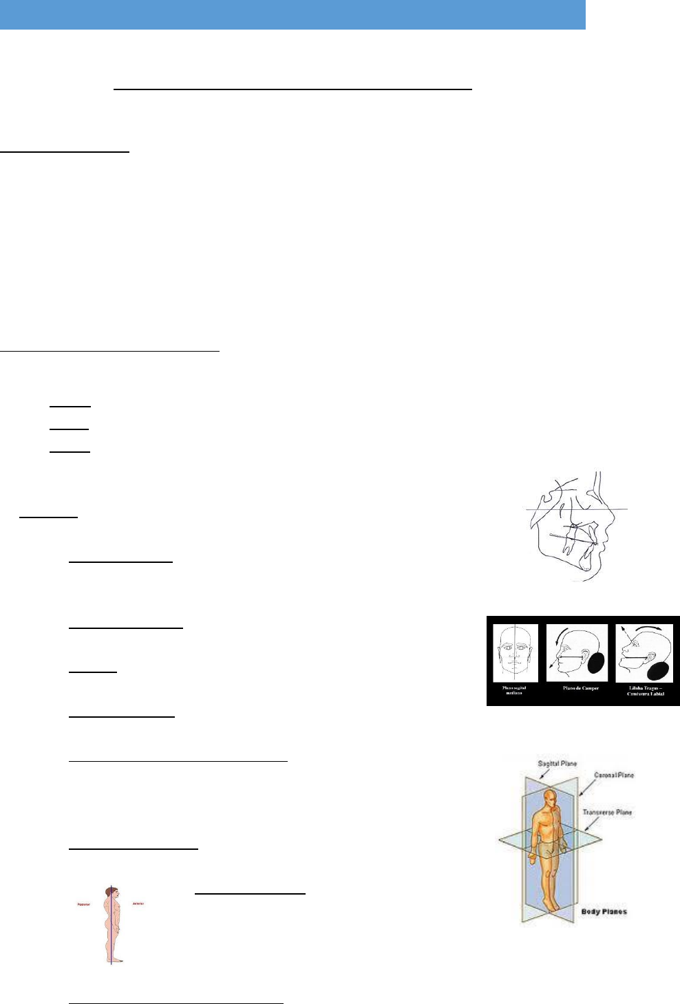 Tayná Magalhães ESTOMATOLOGIA I Terminologia e posicionamento em radiologia Posição anatômica: Braços aduzidos para frente Palmas da mão para frente Cabeça e pés retos para frente Olhando na radiografia, o lado direito do profissional é o esquerdo da imagem Planos, cortes e linhas do corpo: são situações geométricas imaginarias que atravessam o corpo na posição anatômica Plano = uma superfície gerada por um deslocamento de uma reta Linha = traço imaginário que conecta dois pontos Corte = ato de cortar ou fatiar uma estrutura em várias posições 1. PLANOS: Basal do crânio: é transversal, formado por conecxão das linhas basais de cada lado do crânio. Este, algumas vezes é denominado de plano antropológico ou plano horizontal de Frankforte Plano de Camper: plano de conexão das linhas que passaram pelo tragus a asa do nariz Oclusal: plano de conexão das linhas que passam pela superfície oclusal dos dentes em ambos os lados Sargital/vertical: plano que divide o corpo em duas metades direto e esquerdo Sargital mediano/médio sargital: plano sargital que divide o corpo em partes direita e esquerda iguais. Passa pela sutura sargital do crânio – qualquer plano paralelo ao plano sargital mediano é denominado plano sargital Coronal ou frontal: plano que atinge e divide o corpo em partes anterior e posterior Médio – coronal: plano que divide o corpo em partes iguais anterior e posterior, passa através da sutura coronal. Qualquer plano paralelo ao plano frontal ou médio – coronal é um plano coronal Horizontal (transversal ou axial): qualquer plano que passa através do corpo formando ângulo reto com plano sargital ou coronal dividindo o corpo em superior e inferior Tayná Magalhães ESTOMATOLOGIA I 2. LINHAS: Basal de Reid (Liom): linha infra orbitameatal, linha que segue da margem infra-orbitária (borda inferior do olho) passa pela borda superior do meato auditivo externo, até o meio do osso occipital Inter ou bipupilar: linha que passa entre as pupilas 3. CORTE OU FATIA: Longitudinais: sargital – cortes no comprimento da direção do eixo longitudinal do corpo ou qualquer de suas partes independentes da posição do corpo ereto ou em decúbito Transversal ou horizontal: axiais são cortes feitos fazendo ângulo reto ao longo de qualquer eixo longitudinal do corpo ou partes Cortes ou planos oblíquos: são os que se inclinam ou desviam de qualquer dos três planos do corpo. Imagem sargital, coronal, axial Superfícies e partes do corpo: Posterior ou dorsal: parte posterior do corpo, planta dos pés e o doso das mãos Anterior ou ventral: parte anterior do corpo, inclui o dorso dos pés e as palmas das mãos Posicionar: arte de colocar um paciente em determinadas posições para demonstrar ou visualizar, radiograficamente, partes especificas do corpo na radiografia ou em outros receptores Posição em duas formas = geral e especifica: Posição geral: Decúbito dorsal: deitado de barriga para cima Decúbito ventral: deitado de barriga para baixo Ereta Tayná Magalhães ESTOMATOLOGIA I Posição especifica: posição descrita a uma parte do corpo mais próxima ao filme ou receptor de imagem ou por aquela parte do corpo pela qual esta entrando e saindo o feixe de Raios – X Ex: lateral, obliqua, frente (ventral) e costas (dorsal) Incidência e área de incidência: Termo de posicionamento usado para descrever o trajeto do feixe de Raios – X, quando este atravessa o paciente, é o ponto ou área de entrada dos Raios–X Incidência em PA: o trajeto é posterior -> anterior Incidência em AP: o feixe entra pela anterior e sai posterior Axial: em relação ao eixo longitudinal Tangencial: tocar em uma curva ou superfície apenas em um ponto Termos de relação: Termos de posicionamento e/ou anatômicos que descrevem as relações com as partes do corpo Medial/mesial: em direção ao centro ou ao plano mediano ou linha media Lateral: fica oposto do medial ou fora do centro ou mais longe da linha media do corpo Proximal: próximo a origem ou inicio mais próximo a linha media Distal: distante da origem ou da linha media Cefálice ou superior: em direção a cabeça Caudas ou inferior: em direção aos pes Ipsilateral: do mesmo lado do corpo Contralateral: do lado oposto do corpo ou da parte do corpo Interior: próximo ao centro Exterior Superficial Profundo Termo em relação de movimento: Flexão: o ângulo entre as partes é diminuído Extensão: o ângulo entre as partes aumenta Hiperextensão: é a extensão de uma articulação além da posição reta ou neutra Protrusão: movimento para frente Retração: movimento para trás Tayná Magalhães ESTOMATOLOGIA I Técnicas intrabucais: P1 – posição 1 (arcada superior): Cabeça ereta; Plano sagital perpendicular ao plano horizontal; Plano de Camper (trágus – asa do nariz) e plano oclusal; Plano de Camper, plano oclusal superior e linha bipupilar paralelos ao plano horizontal P2 – posição 2 (arcada inferior): Cabeça em hiperextensão; Plano de Camper MODIFICADO (trágus – comissura labial) paralelo ao plano horizontal; Plano oclusal inferior paralelo ao plano horizontal PERIAPICAL: Bissetriz Paralelismo Indicações: Extensão dos processos de carie (incipiente, recidivante, comunicação com a câmara pulpar) Mineralização, módulos pulpares e reabsorção; Forma da câmara pulpar e condutos radiculares Manipulação dos condutos radiculares (forma, tamanho e número de raízes) Cronologia de erupção, relação dentição decídua/permanente Existência de anomalias dentarias Lesões patológicas periapicais e patologia ósseas Técnica da Bissetriz: Feixe de raios – X deve incidir perpendicularmente ao plano bissetor, formado pelo plano do dente e do filme Angulação: termo utilizado para descrever o alinhamento do feixe central de raios – X nos planos horizontal e vertical Ângulo de incidência do feixe de raios – X = são usados para a obtenção de radiografias do órgão dent
