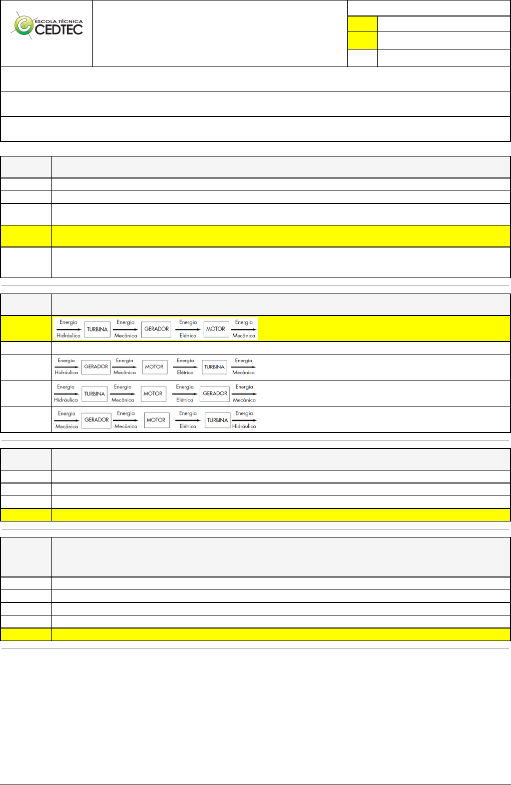 Pincel Atômico - 02/05/2021 19:09:58 1/1 JÚLIA ROCHA DA SILVA EXERCíCIO CAMINHO DO CONHECIMENTO - ETAPA 9 (14697) Atividade finalizada em 28/04/2021 19:04:51 (tentativa: 1) LEGENDA Resposta correta na questão # Resposta correta - Questão Anulada X Resposta selecionada pelo Aluno Disciplina: INSTALAçõES ELéTRICAS PREDIAIS [capítulos - 103] - Avaliação com 4 questões, com o peso total de 4,33 pontos Turma: Curso Técnico: Eletrotécnica - Grupo: EAD - FEVEREIRO/21 - EAD ELE [21241] Aluno(a): 91193950 - JÚLIA ROCHA DA SILVA - Respondeu 2 questões corretas, obtendo um total de 2,17 pontos como nota Questão 001 Da legislação em vigor, a Resolução da ANEEL no 456, de 29/11/00, foram retiradas as seguintes definições de Carga instalada: Nenhuma das alternativas. Aceitação dos termos do contrato de adesão pelo consumidor responsável por unidade consumidora do Grupo “B”. Conjunto de instalações e equipamentos elétricos caracterizado pelo recebimento de energia elétrica em um só ponto de entrega, com medição individualizada e correspondente a um único consumidor. X Soma das potências nominais dos equipamentos elétricos instalados na unidade consumidora, em condições de entrar em funcionamento, expressa em quilowatts (kW). Pessoa física ou jurídica, ou comunhão de fato ou de direito, legalmente representada, que solicitar a concessionária o fornecimento de energia elétrica e assumir a responsabilidade pelo pagamento das faturas e pelas demais obrigações fixadas em normas e regulamentos da ANEEL, assim vinculando-se aos contratos de fornecimento, de uso e de conexão ou de adesão, conforme cada caso. Questão 002 As etapas de Geração, Transmissão, Distribuição e da utilização da energia elétrica, podem ser assim representadas: X Todas alternativas estão incorretas. Questão 003 Os condutores capazes de irradiar ou captar energia elétrica funcionando como antenas, denominamos como: X Fios Solares Cabos dieléctro Fios de aterramento Fios coaxiais Questão 004 A identificação dos condutores Fase, Neutro e Proteção, é feita através de cores padronizadas da Isolação, com o objetivo de facilitar a execução e/ou manutenção/reforma na instalação elétrica, bem como, aumentar a segurança da pessoa que está lidando com a instalação elétrica.A Norma NBR 5410/97 determina que os condutores isolados devem ser identificados pela cor da Isolação, conforme a sua função: Condutor Fase: a isolação deverá ser de cores iguais dos condutores, Neutro e o de Proteção (PE) De acordo com a norma, não existe preferência de cores para identificação de condutores de eletricidade Condutor de Proteção (PE): a isolação deve ser na cor dupla verde e azul. Na falta da dupla coloração, admite-se o uso da cor verde X O fio de fase deve ser mais fino do que o fio do neutro Condutor Neutro: a isolação deve ser sempre na cor azul claro