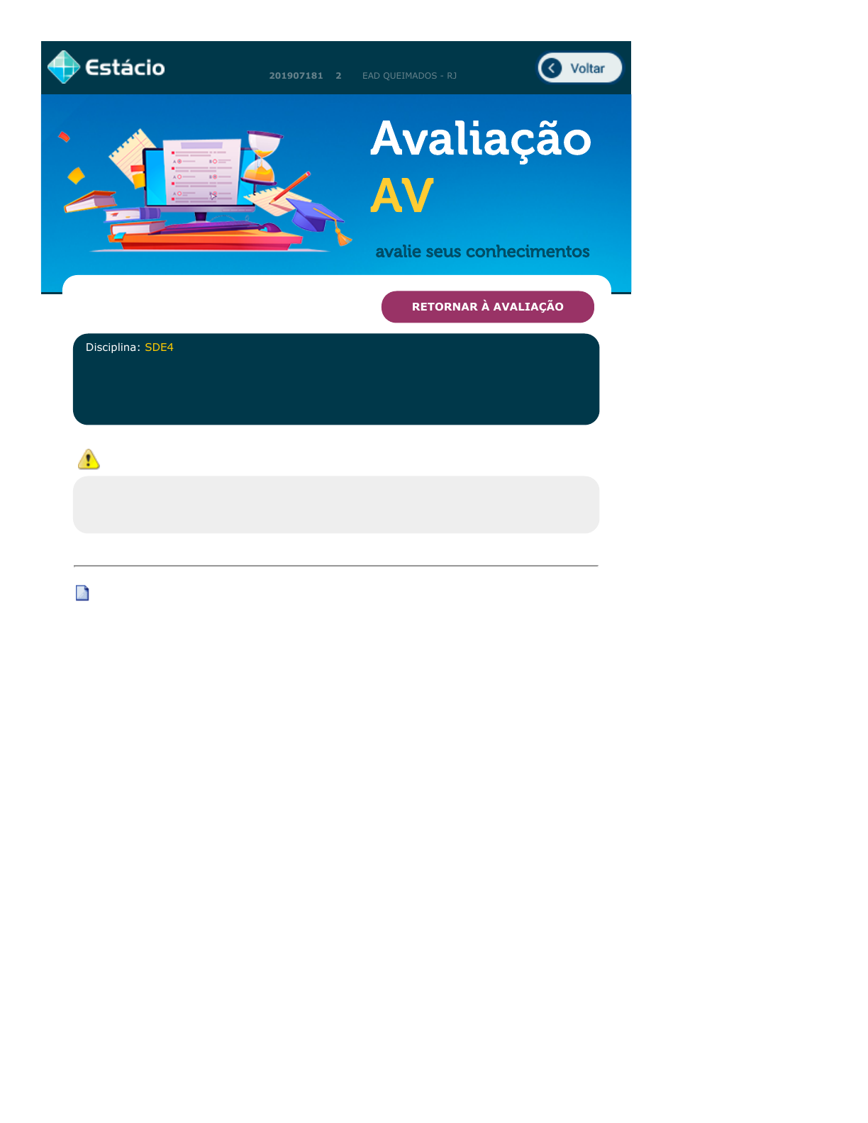 2. Caso você queira voltar à prova clique no botão "Retornar à Avaliação".