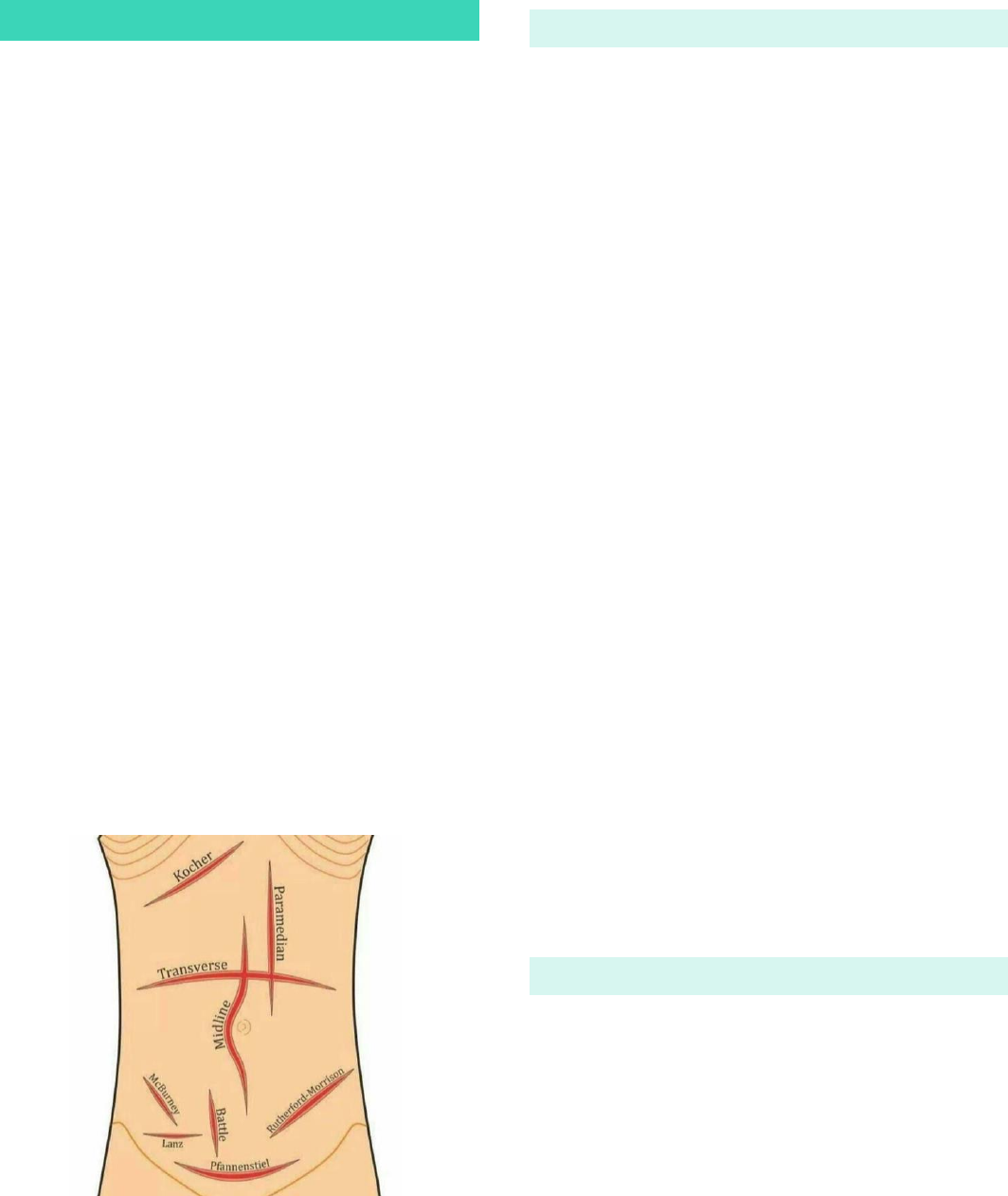 Júlia Azevedo - @juliamedstudy Laparotomias LAPAROTOMIA Laparotomia (laparon = flanco + tome = corte = ia) significa, exatamente, "secção do flanco"; porém, tem como significado "abertura cirúrgica da cavidade abdominal" no conceito da maioria dos cirurgiões. Celiotomia (celiocelio = abdome + tome = corte + ia) seria outro termo, pouco usado nos dias de hoje, e significa precisamente incisão da parede abdominal em qualquer região. Indicações: Via de acesso ao abdome para cirurgias de urgência e emergência; Via de acesso ao abdome para cirurgias eletivas – vem diminuindo, por conta do advento da laparoscopia; Via de acesso para drenagem de coleções intracavitárias; Método diagnóstico; Tipos Divididas pela forma de incisão Longitudinais Transversais Oblíquas Combinadas Toraco-Laparotomia: exemplo, cirurgia de aneurisma de aorta torácica e abdominal. Incisões LAPAROTOMIAS LONGITUDINAIS - Medianas: XIFO-PÚBICA: incisão universal, supra ou infra umbilicais - incisão universal: a mais utilizada em emergências - cirurgias com abordagem ampla da cavidade abdominal; - procedimento mais rápido: pele, TCS, linha alba, peritônio - sem secção de músculos; menor sangramento - maior possibilidade de deiscências de suturas: pressão fica sobre a linha alba, que não tem tanta resistância - esteticamente pior, pois não segue paralelamente as linhas de langerhans PARAMEDIANA: supra ou infraumbilicais Pele > TCS > aponeurose anterior do reto abdominal > músculo reto abdominal > aponeurose posterior> peritôneo - para-retal interna: lennader - trans-retal - para-retal externa (jalaguier) – pouco utilizada, pois a região tem inervação extensa, logo, pode dar lesão nervosa Complicações: Hematomas Seromas Infecção de parede Hérnia incisional Aderência Evisceração LAPAROTOMIA TRANSVERSAIS Amplo acesso, principalmente ao fígado, pâncreas, supra-renais e rins. Utilizada em crianças Supraumbilicais: acima da cicatriz umbilical - Parcial: de um dos flancos até a linha média Júlia Azevedo - @juliamedstudy - Total: partindo de ambos os flancos Infraumbilicais Parcial: Pfannensteiel; incisão arciforme de 2-3cm acima do pube; porém, abre-se o peritônio de forma longitudinal Total LAPAROTOMIAS OBLÍQUAS Subcostal: do lado direito – Kocher; abordagem das vias biliares na via aberta. Mc Burney: incisão realizada na transição do primeiro para o segundo terço em uma linha imaginária traçada entre a cicatriz umbilical e a espinha ilíaca ântero-superior - usada em apendicectomias; estrelada. - Estrelada: porque não há secção de músculo, e sim, divulsão muscular do oblíquo externo e do oblíquo interno > apendicectomia > sutura em bolsa de oschner Incisão especial: combinada - Mercedes Benz: usada para a abordagem cirúrgica no Transplante Hepático, nos receptores.