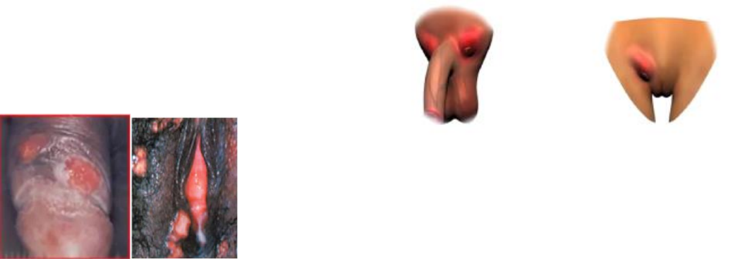 ÚLCERAS GENITAIS Cancro Mole, Cancroide, Cancro Venéreo, Úlcera de Ducreyi, Cancro de Ducreyi, Cavalo, Cancrela Transmissão exclusivamente sexual. 10% das pacientes com cancro mole podem estar coinfectadas pelo T. pallidum ou pelo HSV. Agente etiológico: cocobacilo Gram-negativo, Haemophilus ducreyi. Período de Incubação: 3-7 dias. O risco de infecção em um intercurso sexual é de 80%. Etiopatogenia: Múltiplas microabrasões epidérmicas durante o coito infecção. QUADRO CLÍNICO: A mulher pode ser portadora assintomática, representando um importante reservatório. A infecção acomete os homens em maiores proporções. Pápula dolorosa (que se desenvolve três a sete dias após o contágio, com halo de eritema) 48 horas depois torna-se pústula, sofre erosão úlcera (são múltiplas devido à autoinoculação). Característica da úlcera: Base amolecida, bordo irregular, contorno eritematoso e fundo irregular recoberto por exsudato necrótico amarelado com odor fétido que, quando removido, revela tecido de granulação altamente friável. A localização determina os sintomas, como disúria, dor à defecação, sangramento retal, dispareunia e corrimento vaginal. Local mais comum no homem: frênulo e o sulco balanoprepucial. Local mais comum na mulher: a fúrcula e a face interna dos pequenos e grandes lábios. Ocorre adenopatia inguinal inflamatória (bubão inguinal) em 30 a 50% dos casos, com tendência à supuração. Esta costuma ser unilateral (2/3 dos casos). Acomete quase exclusivamente indivíduos do sexo masculino (devido à anatomia da drenagem linfática). No início há adenomegalia dolorosa, que evolui para flutuação e fistulização em metade dos casos, classicamente por orifício único, exteriorizando-se um pus cremoso de cor verde com sangue. A adenopatia aparece de sete a quatorze dias após a ulceração e forma um plastrão que adere à pele em superfície e profundidade. Pode evoluir para abscessos acompanhados de episódios febris e impossibilidade de deambulação. Cancro Rollet: cancro mole + cancro duro. DIAGNÓSTICO: Clínico (múltiplas úlceras, DOLOROSAS (# do cancro duro sífilis – úlcera indolor); fundo SUJO, adenopatia que fistuliza p/ 1 orifício) – já pode fechar dx e iniciar tto (MS). Exames laboratoriais: Bacterioscopia com coloração de Gram ou Giemsa, Cultura (para identificação do Haemophilus ducreyi), PCR. TRATAMENTO: Recomendações gerais: Higiene local rigorosa para evitar a autoinoculação; Tratar o parceiro; MS: a aspiração com agulha de grosso calibre dos gânglios linfáticos regionais comprometidos pode ser indicada para alívio dos linfonodos tensos e com flutuações. Contraindica a incisão dos linfonodos. CDC: Indica a incisão dos linfonodos acometidos e contraindica a drenagem. TRATAMENTO: HERPES: É uma doença incurável causada pelo Hepes-Simplex Vírus, sendo a IST ulcerativa mais frequente, seguida pelo cancro duro. O vírus permanece no sistema neural por toda vida, permanecendo nos gânglios sensoriais após infecção primária. A sua reativação ocorre na raiz dorsal, retornando pelo nervo para a superfície da pele ou mucosa correspondente ao dermátomo de origem. Agente etiológico: HSV 1: predomina lesões orais HSV 2: predomina lesões genitais Incubação: 4 dias DIAGNÓSTICO: Exame clinico: A primoifecção é geralmente assintomática; A fase prodrômica se manifesta com sensibilidade local, prurido, mialgia e queimação no local onde as pápulas surgirão; Surgimento de pápulas eritematosas e dolorosas, as quais se tornam vesículas que coalescem; Ulceras possuem bordas lisas bem definidas, fundo limpo e não sanguinolentas, as quais formam crostas e cicatrizam Adenopatia inguinal bilateral e dolorosa, sem fistula, com frequente repercussão sistêmica (febre, mal- estar...) Em caso de infecções recorrentes (reativação do vírus), essas tendem a ocorrer com menos intensidade com o tempo. Os facilitadores para recorrência são: Febre ▪ Exposição solar ▪ Frio intenso ▪ Traumatismo ▪ Menstruação ▪ Estresse ▪ Imunodepressão ▪ Antibióticoterapia prologada Desaparece sem sequelas Recorrências diminuem com o passar do tempo; Exames laboratoriais: Citodiagnóstico de Tzank Papanicolau: demonstra inclusões virais Sorologia: anticorpos se desenvolvem após infecção primaria e permanecem por toda vida; Só tem valor se for 4 semanas após infecção; Imunoflorescência direta: pesquisa de anticorpos monoclonais com eficácia semelhante a cultura (fácil e rápido); Biopsia e cultura são mais específicos, porém não realizados rotineiramente; TRATAMENTO: A herpes é recorrente e incurável. O objetivo do tratamento é encurtar o curso da doença, diminuir intensidade e recorrência. Sintomáticos: analgésicos e anti-histaminicos Antibióticos tópicos (neomicina), em casos de infecção secundária TRATAMENTO ANTIVIRAL (ORAL): PRIMOINFECÇÃO: Aciclovir 400 mg, VO, 3x ao dia por 7 a 10 dias (MS) Fanciclovir 250 mg 3x ao dia por 7 a 10 dias Valaciclovir 1g 2x ao dia por 7 a 10 dias Obs: todos os tratamentos devem ser estendidos se não houver cura até 10 dias RECORRENTE: iniciar no primeiro dia ou nos sintomas prodrômicos o Aciclovir 400 mg VO 3x ao dia por 5 dias (MS) Fanciclovir 1g 2x ao dia por 5 dias o Valaciclovir 1g 1x ao dia por 5 dias GESTAÇÃO: Aciclovir Risco de transmissão é maior no 3º trimestre Prevenção do herpes neonatal: interrupção da gestação por cesariana em caso de lesões ativas no canal de parto Higiene local com solução fisiológica e água boricada; Uso de corticoides não é indicado;
