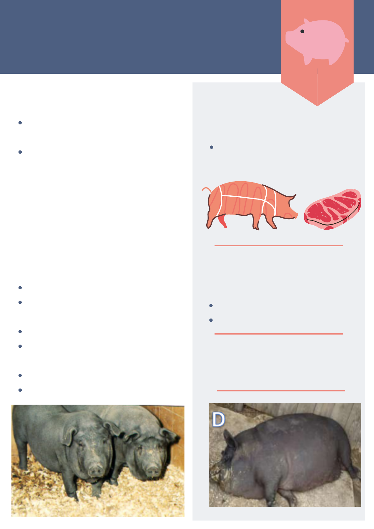 C A R A C T E R Í S T I C A S Porte: pequeno. Pelagem: Preta. Cerdas pouco abundantes. Tipo de orelha: asiática. Perfil cefálico: ultraconcavilíneo. Peso: entre 60 a 70 kg. Geralmente pelados. R A Ç A T A T U Sinonímia: Baé, Baié, Macau, Perna Curta . Origem étnica: Raças chinesas (Siamesa e Conchinchina) e indochinesas introduzidas em Portugal com o nome de Macau. S U I N O C U L T U R A Raças de suínos: Tatu Discente: Ana Beatriz dos Santos Mendes P R O L I F I C I D A D E 7 a 8 leitões/ parto. Leitegadas pequenas. A P T I D Ã O Mista: banha e carne. São dóceis e rústicos.