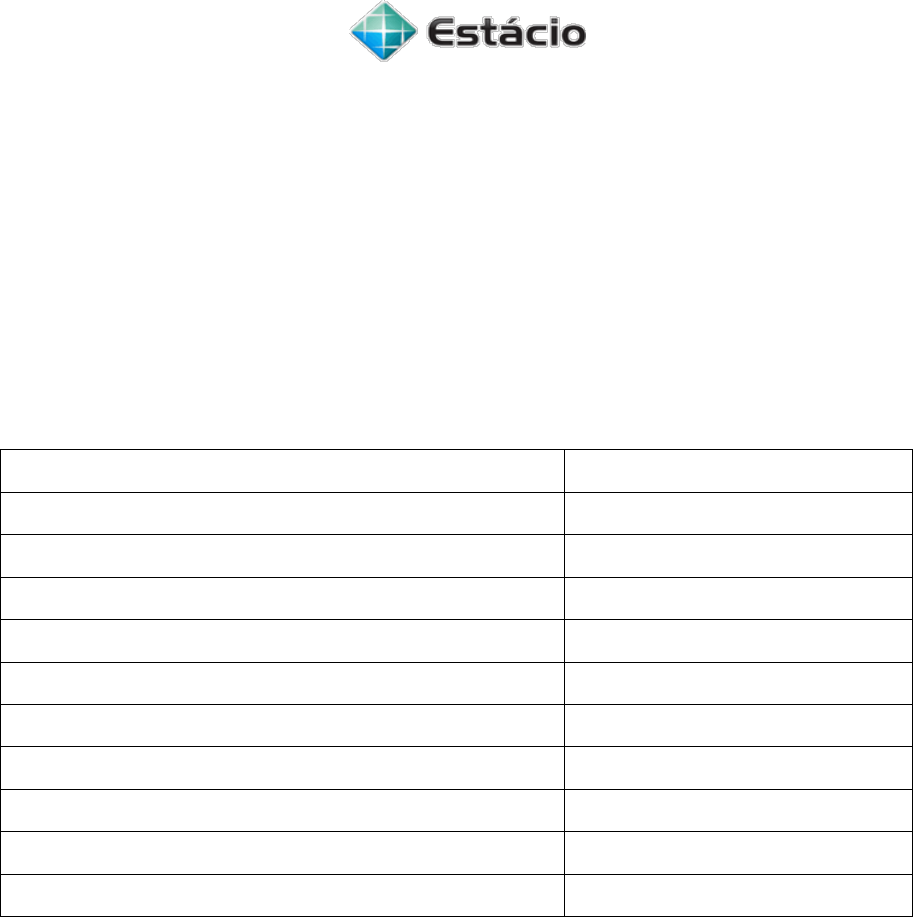 UNIVERSIDADE ESTÁCIO DE SÁ CURSO DE GRADUAÇÃO EM NUTRIÇÃO ESTÁGIO SUPERVISIONADO EM NUTRIÇÃO EM SAÚDE COLETIVA Nome do aluno: _________________________________________________ Local de estágio: _________________________________________________ Matrícula do aluno: ______________________________________________ FICHA DE AVALIAÇÃO DO ALUNO PELO NUTRICIONISTA RESPONSÁVEL Parâmetros Nota 1) Assiduidade 2) Pontualidade 3) Apresentação Física 4) Postura Profissional 5) Iniciativa 6) Responsabilidade 7) Facilidade de compreensão 8) Rendimento nas atividades desenvolvidas TOTAL DE PONTOS: MÉDIA DA AVALIAÇÃO Observação 1: Cada parâmetro deverá ser pontuado de zero (0) a dez (10). Observação 2: A média é feita pela divisão do Total de Pontos por 8. Campos dos Goytacazes, de de 20 . _________________________________________ Assinatura e Carimbo Nutricionista Responsável http://www.estacio.br/