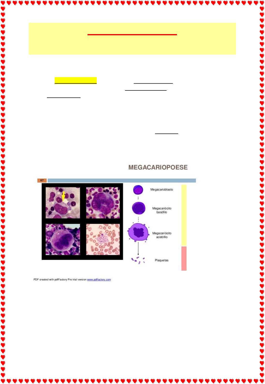 • A trombocitopoiese começa no megacarioblasto (que é a célula mais