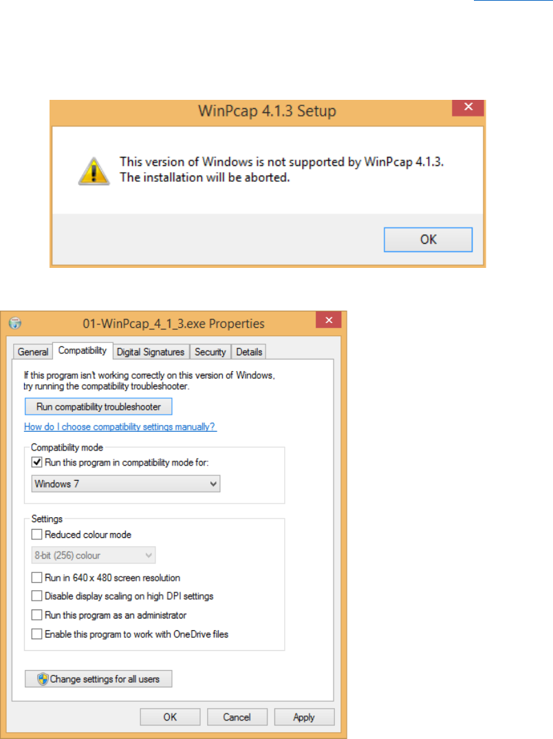 Tutorial de Instalação do eNSP Caso os arquivos de instalação estejam apresentando problema, tente baixá-los pelo Google Drive 1. Instale o WinPcap utilizando as configurações padrão Caso a seguinte mensagem seja exibida: Entre nas propriedades do arquivo, acesse a aba Compatibilidade e marque a opção Windows 7: Salve as alterações e tente instalar novamente. 2. Instale o Wireshark Prossiga na instalação até a tela a seguir: Desmarque a opção “Install Npcap" para não sobrescrever a instalação do WinPcap que acabamos de fazer. Depois prossiga na instalação com as configurações padrão. 3. Instale o Virtual Box Instale o Virtual Box utilizando as configurações padrão fornecidas pelo instalador. 4. Instale o eNSP Prossiga na instalação até a seguinte tela: Caso o instalador detecte corretamente os três programas instalados anteriormente, prossiga com a instalação. 5. Teste o simulador Após completar a instalação do eNSP, abra o programa. Assim que a janela abrir, será exibida uma mensagem do firewall do Windows, permita o acesso em ambas redes privada e pública. Depois de autorizar o firewall, clique no botão “New topology" no canto superior esquerdo: Arraste um roteador AR2220 do painel esquerdo para a área em branco: Clique com o botão direito em cima de “AR1" e clique em “Start". Após alguns segundo o roteador ficará com uma cor azul claro. Clique duas vezes em cima de “AR1" e verifique se o console <huawei> carrega: Se você chegou neste console, a instalação foi completada com sucesso. Resolução de problemas • Caso o simulador apresente o erro 40 ao iniciar o roteador Desinstale o Virtual Box, reinicie o computador e refaça a instalação do Virtual Box. Não é necessário reinstalar outros programas. Com o Virtual Box reinstalado, abra o eNSP e selecione a opção “Register Device" no menu: É importante que a topologia esteja vazia, do contrário o registro não funciona. Na tela de registro, selecione as opções AR_Base, AC_Base e AP_Base e clique em Register: Prossiga com as instruções da seção “Teste o simulador" e verifique se o roteador inicia com sucesso. • Caso o simulador apresente o erro 41 ao iniciar o roteador Prossiga com as instruções de registro logo acima, não é necessário reinstalar o Virtual Box. • Caso o Windows exiba uma BSoD (Tela azul da morte) ao iniciar o roteador Esse problema é causado pelo conflito entre o Hyper-V e o Virtual Box, para resolver, vá até o painel de controle, opção “Programas" e escolha a opção “Ativar ou desativar recursos do Windows": Na janela que abrir, desmarque a opção “Hyper-V" e pressione OK: O Windows pedirá para reiniciar, após reiniciar o computador, execute novamente os passos da seção “Teste o simulador".