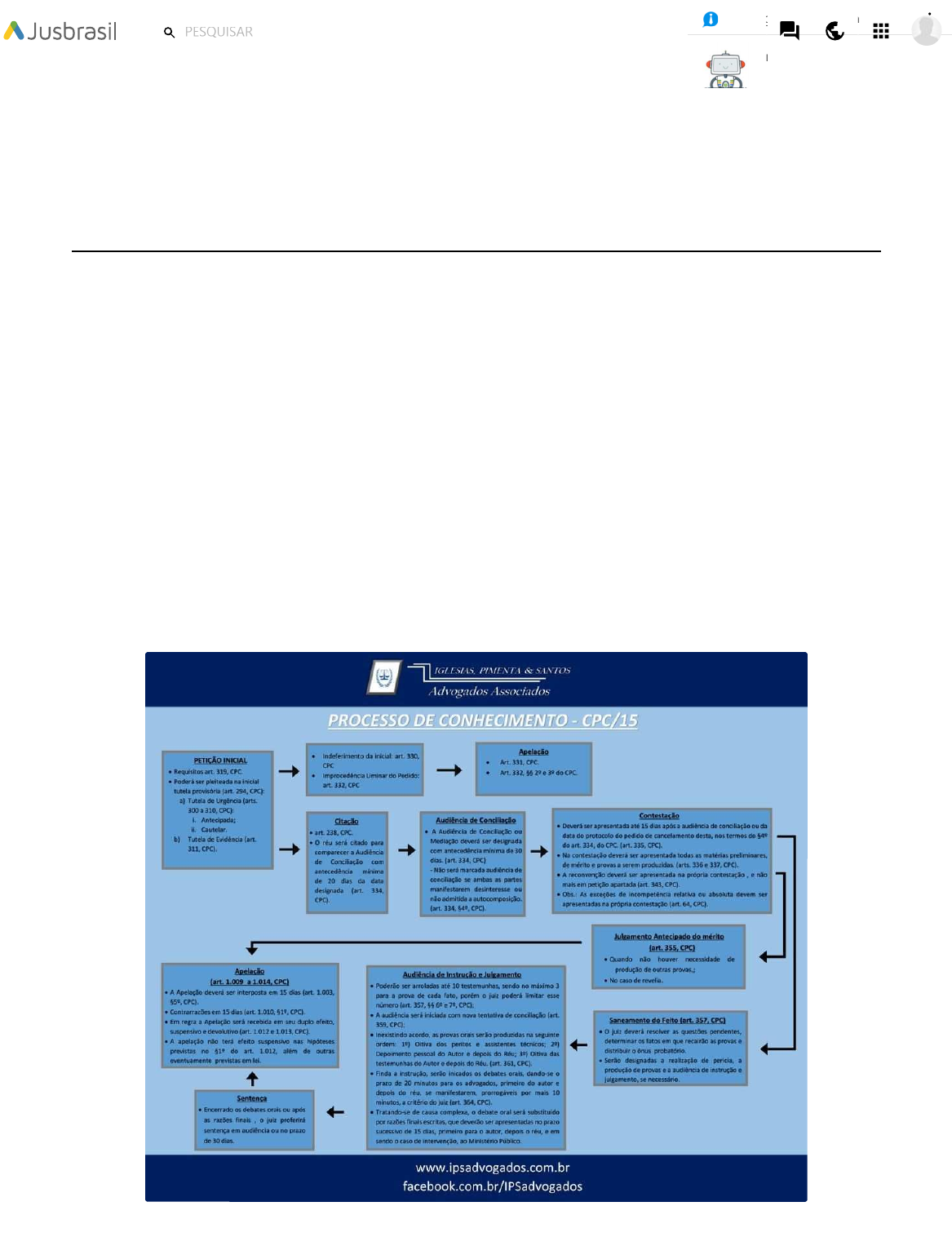 jusbrasil.com.br 5 de Março de 2018 Processo de Conhecimento no Novo Código de Processo Civil Ilustramos as principais alterações da fase cognitiva do CPC/15 no fluxograma a seguir. Importante ressaltar que o procedimento sumário foi extinto pelo CPC/15, somente restando o procedimento ordinário e os procedimentos especiais previstos no Título III, do Livro I da Parte Especial, deste diploma legal. Olá, Beatriz, aqui você pode responder às mensagens profissionais Mensagens profissionais Você ainda não tem mensagens Receba contato de pessoas procurando advogados. São mais de 30.000 contratações por mês. CONFIGURAR AGORA PUBLICAR 20 Processo de Conhecimento no Novo Código de Processo Civil https://pbliglesias.jusbrasil.com.br/artigos/316871989/processo-de-conh... 1 de 2 05/03/2018 16:35 Iglesias, Pimenta & Santos Advogados Associados Disponível em: http://pbliglesias.jusbrasil.com.br/artigos/316871989/processo-de-conhecimento-no-novo-codigo-de-processo-civil Olá, Beatriz, aqui você pode responder às mensagens profissionais Mensagens profissionais Você ainda não tem mensagens Receba contato de pessoas procurando advogados. São mais de 30.000 contratações por mês. CONFIGURAR AGORA Processo de Conhecimento no Novo Código de Processo Civil https://pbliglesias.jusbrasil.com.br/artigos/316871989/processo-de-conh... 2 de 2 05/03/2018 16:35