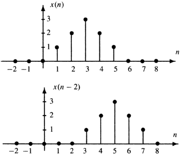 Operações com Sinais Discretos Deslocamento no tempo: O sinal é deslocado para a direita (atraso) ou deslocado para a esquerda (avanço). Abaixo o sinal x[n] e o sinal deslocado para a direita de 2 unidades, x[n-2] Reversão (Inversão) no tempo: O eixo vertical “y” do sinal x[n] é girado de 180° invertendo ou espelhando o gráfico Abaixo o sinal x[n] e o sinal invertido (girado de 180°) x[-n] Reversão e deslocamento no tempo: O sinal é invertido e deslocado ou deslocado e invertido. No exemplo tem-se o sinal x[6-n] Obtenção do sinal x[6-n]. Inicialmente o sinal é revertido e em seguida deslocado para a direita de 6 ����� � ����� � ��� � ���� � 6� � ����� � 6�� � ���� 6� � ��6 � �� Alteração da taxa de amostragem: Decimação e Interpolação Equivalente a Compressão e Expansão de sinais contínuos Exemplo decimação: Exemplo expansão e interpolação: