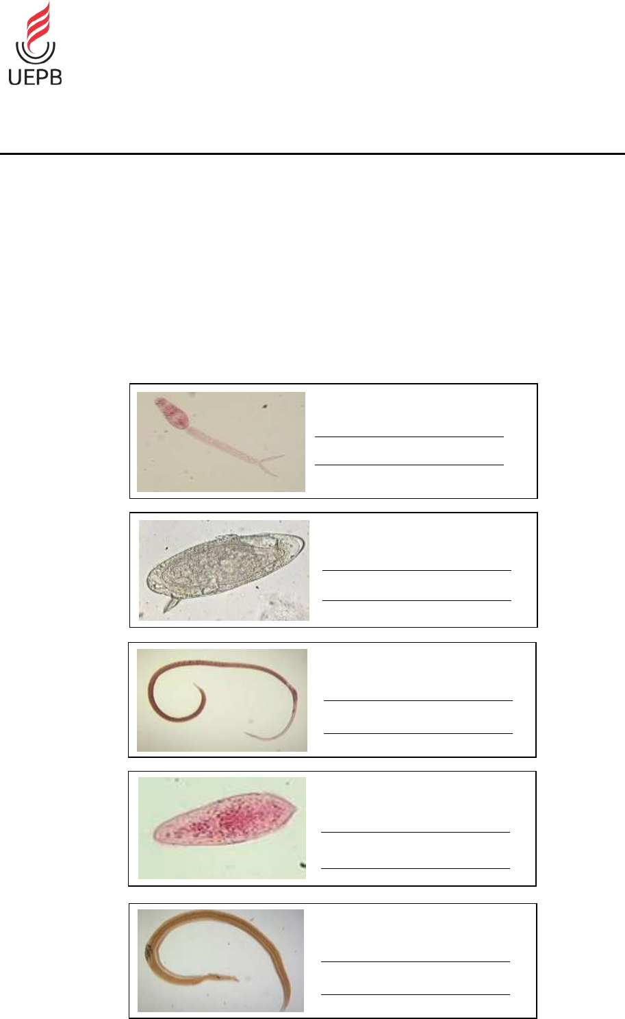 UNIVERSIDADE ESTADUAL DA PARAÍBA – CCBS DEPARTAMENTO DE BIOLOGIA PARASITOLOGIA PARA CIÊNCIAS BIOLÓGICAS ADRIELLY KAROLINY DE LIMA MATRÍCULA: 172110971 ATIVIDADE – PRÁTICA 1 As lâminas a seguir correspondem a diferentes fases do ciclo de vida de um helminto. Não há relação de tamanho entre elas. Após acurada observação das imagens, responda o que se pede. a. Nome da espécie: Schistosoma mansoni b. No espaço destinado em cada lâmina, coloque o nome da fase do ciclo de vida do parasito. Lâmina 2 ovo maduro Lâmina 1 cercária Lâmina 3 verme adulto - fêmea Lâmina 5 verme adulto - macho Lâmina 4 miracídio c. Qual a fase do ciclo de vida do parasito é responsável pela patogenia da parasitose? Construa um texto argumentativo que sustente a resposta. A fase responsável pela patogenia é o ovo. Pois, quando atingee a luz intestinal, as lesões começam a serem produzidas, tanto em pequeno, quanto em grande número de ovos. Eles podem acarretar hemorragias e manifestações degenerativas, provocando úlceras pequenas, esse tipo de traumatismo consegue ser restaurado. Porém, ao alcançar o figado, podem ocasionar modificações mais danosas que caracterizam a doença, como uma reação inflamatória granulomatosa provocada pelo antigeno solúvel excretado pelo ovo. A produção do granuloma apresenta diversas fases, como a fase necrótica-exsudativa, a fase produtiva e a fase de cura. d. A respeito da espécie foco dessa atividade, e da parasitose por ela ocasionada, analise as afirmativas. (1) Em inquéritos epidemiológicos da parasitose na população humana, a técnica utilizada é o teste alérgico, baseado na medida da protuberância epidérmica após a inoculação de antígeno do parasito adulto, e que deve ser acompanhado do exame quantitativo de fezes. V (3) Em moradores de áreas endêmicas da parasitose, a imunidade adquirida é denominada de concomitante, pois a resposta protetora tem atuação tanto nas fases imatura como na fase adulta do parasito. F (5) Um dos nomes populares da parasitose está relacionado ao quadro clínico conhecido por ascite, cuja causa principal é a hipertensão portal decorrente de uma obstrução no sistema venoso portal, com aumento progressivo da pressão local. V (7) O miraxone – produzido pela região anterior do corpo da fase livre-natante do parasito – é utilizado como um radar que localiza o correto hospedeiro intermediário para que, somente após, ocorra a penetração do parasito. V (11) Em localidades secas da região do Nordeste, as chuvas proporcionam o surgimento de inúmeros criadouros para o invertebrado e, com isso, há um aumento na transmissão do parasito durante a estação chuvosa e logo após a essa. V d.1. O exato somatório das afirmativas verdadeiras é (a) 17. (b) 19. (c) 27. (d) 20. (e) 9. d.2. Caso haja alguma afirmativa falsa, proceda a correção. A alternativa 3 é falsa, pois, o parasito na fase adulta, diferentemente dele na fase imatura, possui mecanismos que impedem que a resposta protetora aconteça; isso acontece devido a síntese de antígenos que se assemelham ao do hospedeiro que irá ocultar a aparência externa do parasito. A alternativa 7 também está incorreta, porque no texto diz que a larva do parasito produz o miraxone, que ajudaria na identificação do caramujo. Porém a larva do parasito é que segue o caminho quimicamente estimulante deixado pelas substâncias químicas liberadas pelo caminho do hospedeiro intermediário, isso acontece devidoàs terminações sensorias que se encontram na parte mais apical do miracídio, o terebratorium; alem disso, o parasito segue o caminho, porém não é algo seletivo ou exato, então ele poderá tanto chegar no hospedeiro do gênero Biomphalaria, quanto em hospedeiros de outros gêneros.