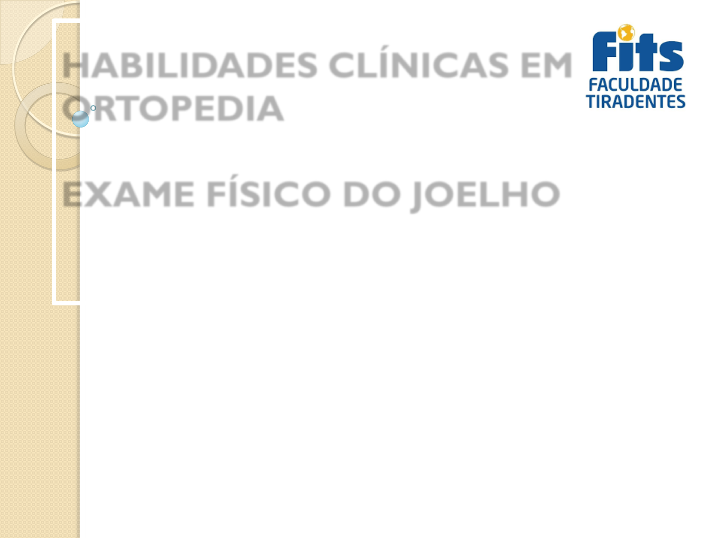 HABILIDADES CLÍNICAS EM ORTOPEDIA EXAME FÍSICO DO JOELHO Curso: Medicina Período: 5° Professor: Miguel Souza CONTRAÇÃO MUSCULAR Ação CONCÊNTRICA: ◦ Encurtamento muscular (dinâmica). ◦ Movimentação articular. Ação ISOMÉTRICA: ◦ Não altera o comprimento muscular (estática). ◦ Força, sem movimento. Ação EXCÊNTRICA: ◦ Alongamento muscular (dinâmica). INSPEÇÃO ESTÁTICA Vestígios de lesão traumática: ◦ Edema, equimose, hematoma, hemartrose, deformidades, limitação funcional. Desvios angulares: ◦ Varo/valgo, recurvato/antecurvato. Desvios rotacionais. ◦ Alinhamento patelar, ângulo “Q”, Contraturas. Hipotrofias. Ângulo Q (em extensão e em 90° de flexão). Altura das patelas. Patela em baioneta (desvio lateral da TAT, aumento do ângulo Q). INSPEÇÃO DINÂMICA Avaliação do arco de movimento. Avaliação da marcha: ◦ Aumento do varismo (flambagem ou “thrust”) durante a fase de apoio da marcha: Comprometimento do complexo ligamentar lateral. Excursão da patela, na extensão do joelho: ◦ Sinal J (subluxação lateral, quando o joelho se aproxima da extensão total). PALPAÇÃO Palpação da patela (derrame articular?). Palpação de eminências ósseas (pontos dolorosos?). Palpação da região posterior do joelho (Cisto de Baker?). Tônus e trofismo muscular. TESTES ESPECIAIS MENISCAIS: ◦ Smillie. ◦ McMurray. ◦ Appley. ◦ Steinmann. ◦ Marcha de pato. LCA: ◦ Lachman (Richey Test). ◦ Gaveta anterior. ◦ Jerk Test (Ressalto, Hughston). ◦ Pivot Shift (McIntoch). LCP: ◦ Gaveta posterior. ◦ Teste do Quadríceps. ◦ Posteriorização Passiva da Tíbia (Godfrey, Sag Test). ◦ Teste da Abdução (Valgo) • PATELA: – Teste da compressão patelar. – Sinal da tecla. – Teste da inclinação patelar. – Sinal da apreensão. • OUTROS: – Teste de Wilson. – Sinal de Wilson. Teste de Smillie Dor à palpação da interlinha articular correspondente (menisco medial ou lateral). Teste de McMurray Paciente em decúbito dorsal, quadril em flexão de 90, joelho em flexão de máxima. Examinador realiza rotação interna e palpa a interlinha articular lateral ou rotação externa e palpa a interlinha articular medial. Teste é positivo na presença de dor. Teste de Appley Paciente em decúbito ventral, quadril em extensão, joelho em flexão de 90. 1º tempo: Examinador realiza compressão axial e rotações. 2º tempo: Distração ao invés de compressão. Dor no 1º tempo e alívio da dor no 2º é sugestivo de lesão meniscal. RL – menisco medial. RM – menisco lateral. Teste de Steinmann Paciente em posição sentada, com os mmii pendentes. Examinador realiza movimentos rotacionais. Dor à palpação da interlinha articular correspondente sugere lesão meniscal. Marcha de Pato O paciente é solicitado a caminhar na posição agachada. O teste é positivo na presença de dor que impeça o paciente a executar o movimento e sugere lesão do corno posterior do menisco medial. Lachman Paciente em decúbito dorsal, quadril em extensão, joelho em flexão de 20°. Examinador realiza movimento antagônicos. O teste é positivo na translação anormal da tíbia em relação ao fêmur e sugere lesão do LCA. Gaveta Anterior Paciente em decúbito dorsal, quadril em flexão de 45°, joelho em flexão de 90°, perna em rotações neutra, interna e externa. Examinador realiza força sobre a tíbia proximal, de posterior para anterior. O teste é positivo na translação anterior anormal da tíbia e sugere lesão de LCA. Jerk Test (Ressalto, Hughston) Paciente em decúbito dorsal, quadril em flexão de 45° e joelho em flexão de 90° e rotação interna da tíbia. Examinador realiza extensão do joelho e estresse em valgo. O teste é positivo na subluxação anterolateral da tíbia, que ocorre em torno de 20°, e sugere lesão do LCA. Pivot-Shift (McIntosh) O retorno do Jerk-Test (da extensão para flexão). Na lesão do LCA em torno de 45º é percebido um ressalto característico da redução da subluxação anterior. Gaveta Posterior Paciente em decúbito dorsal, quadril em flexão de 45°, joelho em flexão de 90°. Examinador realiza força sobre a tíbia proximal, de anterior para posterior. O teste é positivo na translação posterior da tíbia e sugere lesão do LCP. Teste do Quadríceps Paciente em decúbito dorsal, quadril em flexão de 45°, joelho em flexão de 90°. Paciente realiza contração ativa do quadríceps. O teste é positivo na translação anterior da tíbia e sugere lesão do LCP. Posteriorização Passiva da Tíbia (Godfrey, Sag Test) Paciente em decúbito dorsal, quadril em flexão de 90 e joelho em flexão de 90. Examinador mantém essa posição, segurando o pé. O teste é positivo na subluxação posterior da tíbia, pela ação da gravidade, e sugere lesão do LCP. Teste da Abdução (Valgo) Paciente em decúbito dorsal, quadril em extensão e joelho em extensão ou 30° de flexão. Examinador realiza estresse em valgo. O teste é positivo na presença de abertura medial excessiva e sugere lesão do LCP (extensão) ou do compartimento medial (30° de flexão). Teste da Compressão Patelar Paciente em decúbito dorsal, quadril em extensão, joelho em extensão ou flexão de 30°. Examinador realiza compressão da patela, com a palma da mão. O teste é positivo na presença de dor ou crepitação e sugere instabilidade femoropatelar, artrose ou condromalácia. Sinal da Tecla Sugestivo de derrame articular. Sinal da Apreensão Durante o teste de inclinação patelar, na presença de instabilidade femoropatelar, o paciente apresenta uma sensação de apreensão e tentar interromper o exame.