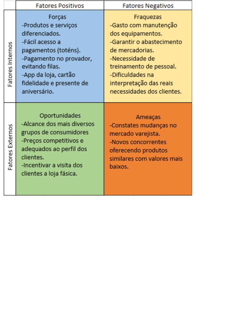 Matriz SWOT Moda Fashion Nome Completo: Mayara Filgueiras Cavalcante Araújo Matrícula: 04089610 Curso: Superior em Gestão de Recursos Humanos Outros horizontes de negócios que trarão grandes resultados para a empresa são assuntos bastante comentados nos dias atuais, são eles: · Apostar em marcas sustentáveis, desde o cultivo de sua matéria prima, a utilização de maquinários inteligentes e preservação de recursos renováveis na produção das peças, dessa forma irá agregar mais valor à marca. · Optar por marcas que não tenham trabalho infantil envolvido em seu processo. O trabalho infantil é identificado nas atividades rurais (plantio de algodão, por exemplo), que dão origem à matéria-prima, e na fabricação, principalmente nas pequenas fábricas, que prestam serviços a grandes marcas. Dessa forma a empresa se destacará pelo seu consumo consciente, redução de custos, incentivo à inovação e colaboração para redução de impactos ambientais, como também pelo seu compromisso de erradicar o trabalho infantil em razão da influência que exerce sobre a cadeia produtiva, os locais onde opera e as pessoas que consomem seus produtos. Referencias de pesquisas: https://livredetrabalhoinfantil.org.br/noticias/reportagens/grandes-redes-se-beneficiam-do-trabalho-infantil-no-setor-textil-diz-auditor/ https://fcem.com.br/noticias/como-desenvolver-sustentabilidade-na-industria-textil/
