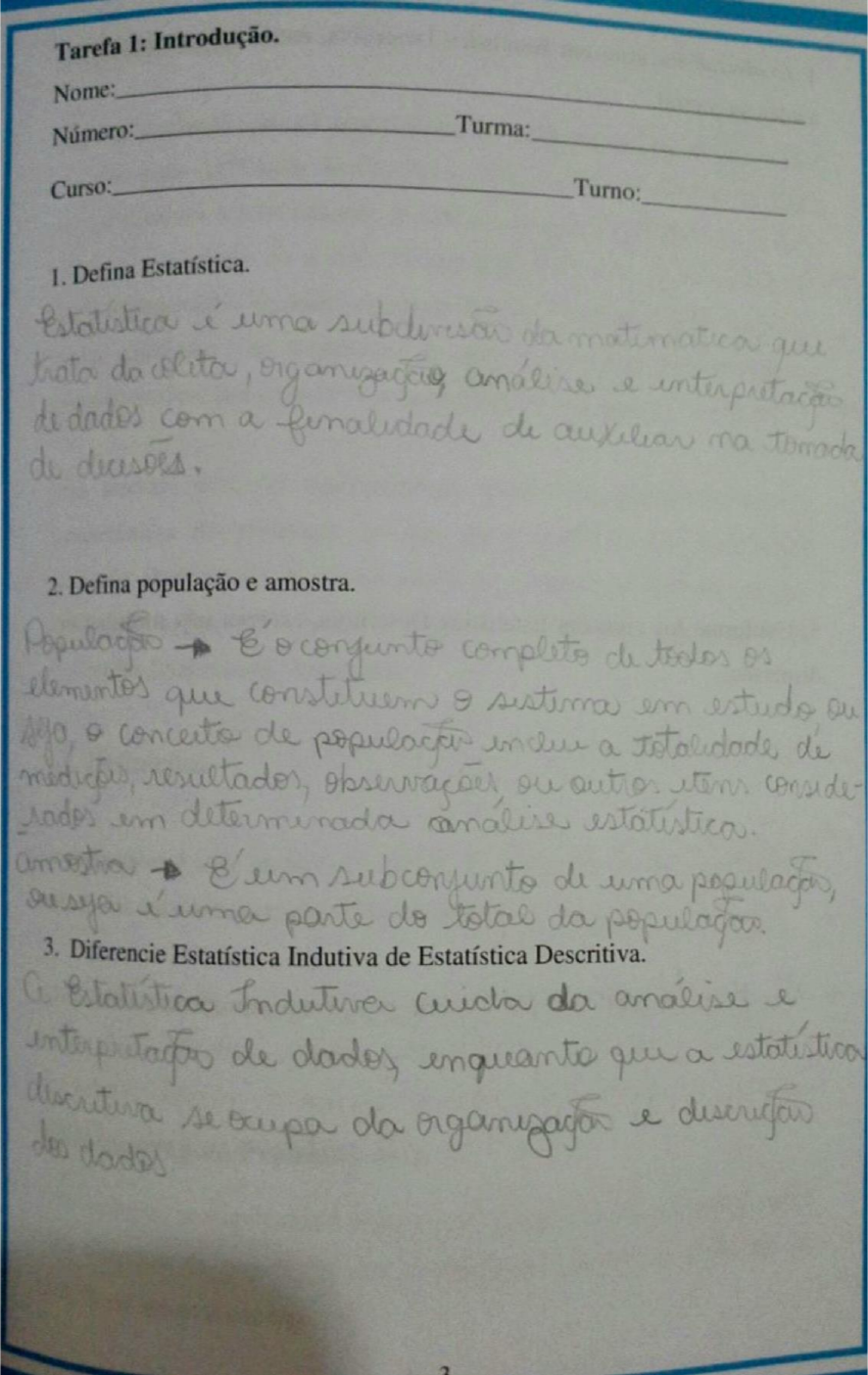 Tarefa 1 Estatística Indutiva Engenharia UNIP 3°/4° Semestre