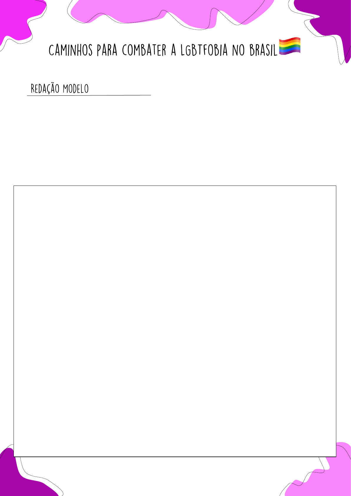 Olá! Meu nome é Pedro Moura (@pedroh.sa) e tirei 960 no ENEM 2020 Estou disponibilizando minha redação. Tenho outras redações disponíveis no meu perfil do “Passei Direto”, dá uma olhada! Tema: Caminhos para combater a LGBTfobia no Brasil A série americana “Pose” retrata o difícil período vivido pela comunidade LGBT no final do século XX, em que as relações sociais são afetadas devido ao preconceito contra esse grupo. Fora das telas, é possível observar que, ainda hoje, existem barreiras que dificultam a proteção da população LGBT no Brasil. Isso porque o pensamento conservador aliado à falta de políticas públicas perpetua esse entrave na sociedade. Dessa maneira, rever a situação na qual o preconceito está inserido é essencial para avaliar suas consequências na atualidade. É necessário destacar, antes de tudo, que os ideais conservadores são a principal causa para que os problemas ligados à LGBTfobia ocorram. Acerca disso, verifica-se que tais ideais impedem o debate social sobre as questões de gênero -cujo objetivo é informar à sociedade sobre a diversidade- o que, muitas vezes, promove um olhar intolerante. Segundo Paulo Freire, a educação é capaz de mudar o comportamento humano. Nessa visão, evidencia-se que a falta de um aprendizado que questione o conservadorismo estimula o comportamento preconceituoso e faz com que o Brasil seja o país mais transfóbico do mundo segundo a ONG “Transgender Europe”. Logo, a cultura conservadora mostra-se como a principal causa da LGBTfobia, não só por dificultar os debates, mas também por fomentar a intolerância. Ademais, a carência de medidas protetivas corrobora na intensificação dos impasses relacionados à comunidade LGBT. No que tange a esse assunto, analisa-se uma marginalização no que diz respeito aos direitos desse grupo social, o que contraria a Constituição Brasileira de 1988, que determina a igualdade jurídica entre os cidadãos. Além disso, nota-se o aumento da impunidade para o crime de homofobia, em virtude da falta de proteção a essa comunidade, o que perpetua o preconceito, haja vista a ausência de punição contra o infrator. Exemplificando essa afirmativa, têm-se a fala de Jair Bolsonaro que, mesmo sendo presidente da república, se declara homofóbico com orgulho. Assim, fica claro que a falta, ou a não fiscalização, dos princípios jurídicos favorecem a ocorrência de atitudes criminosas, como a homofobia. Em face do exposto, caminhos são necessários para combater a LGBTfobia no Brasil. Portanto, cabe ao Ministério da Educação, por meio de uma reforma da base curricular de ensino, adicionar o debate sobre a diversidade nas escolas, na qual visem informar acerca dos gêneros, bem como sobre os benefícios de ter um meio social plural. À luz disso, é importante que tais aulas sejam ministradas por professores de sociologia, devido o conhecimento inerente a tal área. Dessa forma, os impasses ligados a LGBTfobia seriam amenizados e a problemática apresentada na série “Pose” não seria uma realidade brasileira.