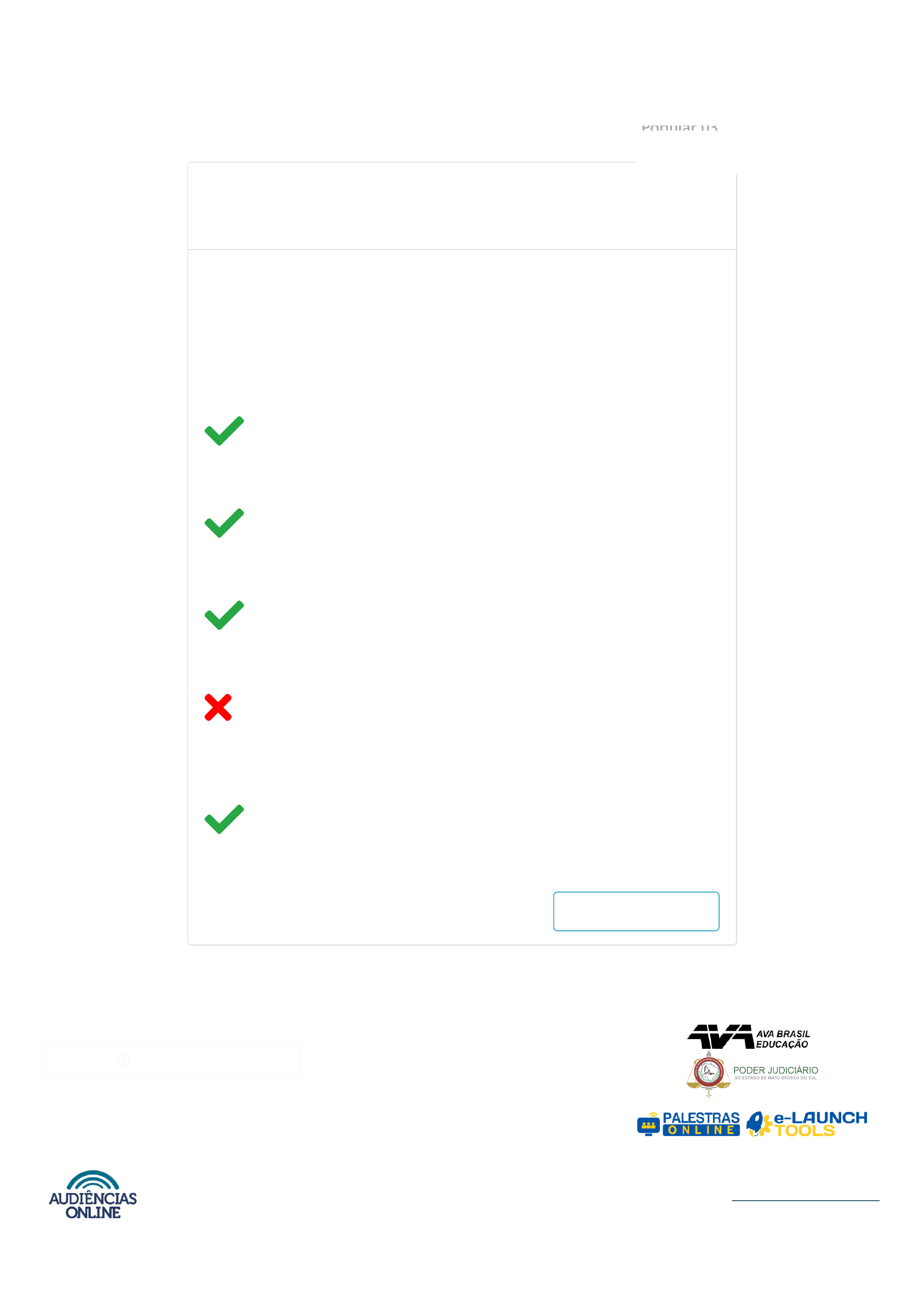 15/07/2021 Audiências online https://audienciasonline.com.br/#/avaliacao/5c82c2d878b3e14e4721909b 1/1 Avaliação de Conhecimento : Júri Popular Audiências do Tribunal do Júri Júri Popular 03 Júri Popular 03 Processo: 0007950-91.2016.8.12.0001 Voltar para a home Parabéns, você atingiu a pontuação necessária para a emissão do certificado. Dentro de no máximo 5 minutos você poderá acessar o seu certificado na opção "Meus Certificados", existente no Menu. Sobre a sessão do Tribunal do Júri: o réu Thiago foi reconhecido como autor do crime de constrangimento ilegal e absolvido do crime de homicídio qualificado; Durante a sessão do Tribunal do Júri: foi utilizado o tempo de réplica pelo Ministério Público, que sustentou ser o réu o autor do disparo que matou a vítima; A defesa do réu Thiago em plenário foi realizada: por três advogados constituídos que sustentaram que o réu Thiago não foi o autor do disparo de arma de fogo que matou a vítima; Sobre os fatos alegados pela acusação e sustentado em plenário pelo Promotor de Justiça: o réu Thiago deve responder apenas pelos crimes de homicídio simples e constrangimento ilegal; No interrogatório do réu Thiago, ele afirmou: que não tinha porte de arma e não estava armado no dia dos fatos narrados na denúncia; contato@avaeducacao.com.br CENTRAL DE DUVIDAS contato@avaeducacao.com.br Central de ajuda CONECTE-SE Apoio © 2019 Audiencias Online. Política de Privacidade Certificado Emitido Seu Certificado já está disponivel em "Meus Certificados" Usuário logado com sucesso! mailto:contato@audienciasonline.com.br mailto:contato@audienciasonline.com.br https://www.facebook.com/joseandradeaudienciasonline/ https://www.youtube.com/channel/UC0VPVc46sgqyslyCuEOk0Lw https://www.instagram.com/joseandradeao/?hl=pt https://api.whatsapp.com/send?phone=5567984815142&text=Quero%20falar%20sobre%20Audi%C3%AAncias%20Online https://t.me/joinchat/AAAAAEfsskxdtEMr_4Bqrg https://palestras.online/#/a/s/5dd5273033d2974094a5c822 https://e-launchtools.com/