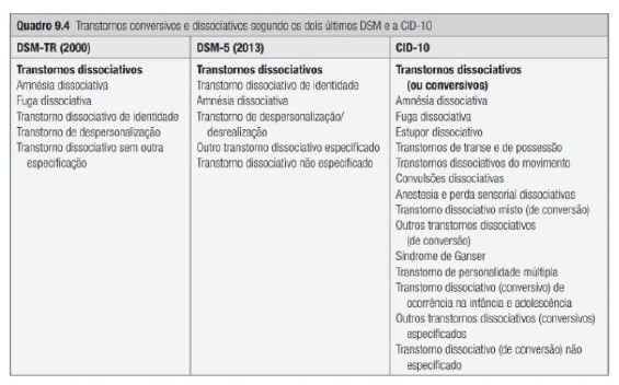 CASO 4 OBJETIVO 1) TRANSTORNOS CONVERSIVOS E DISSOCIATIVOS São caracterizados por perda parcial ou completa das funções normais de integração das lembranças, da consciência, da identidade, das sensações imediatas ou do controle dos movimentos corporais. Têm início geralmente súbito, e a investigação revela relação temporal estreita com “estresse” psicológico sofrido pela pessoa. Vale pontuar que: • Tendem a se repetir por algum evento desencadeador, durando semanas ou meses; o curso é mais breve quando se identifica e se aborda o acontecimento traumático. • Problemas ou dificuldades interpessoais persistentes e sem resolução podem cursar com evolução crônica do conjunto sintomático (a exemplo do que ocorre nos quadros de paralisias e anestesias). Os quadros descritos adiante muitas vezes resultam em investigações demoradas pelas equipes de saúde, principalmente os casos neurologia-like. Para o médico concluir pela implicação psíquica do sofrimento físico de seu paciente, ser-lhe-á exigida competência na semiologia e na clínica. A belle indiference (indiferença afetiva) pode ser observada, quando o doente fala ou ouve falar de si com um afeto distante ou superficial: “nada está acontecendo comigo, apesar de tudo o que você está vendo ou estão dizendo, doutor”. Porém, seu reconhecimento per si, como todo sinal isoladamente, não deve direcionar um diagnóstico. Muitas vezes é difícil para o clínico alcançar que os sintomas dissociativos traduzem frequentemente a ideia (simbólica) de que a pessoa tem uma doença física. Esses fenômenos em intimidade com os conversivos foram estudados por Freud e denominados histeria de conversão. No que diz respeito ao transtorno conversivo, o DSM-5 considera uma nova nomenclatura, o transtorno de sintomas neurológicos funcionais, estando nele incluídos os transtornos que na CID-10 vão de F44.4 a F44.7. Conversão: transposição de um conflito psíquico em sintomas somáticos, presentes basicamente nos sistemas neuromuscular voluntário (paralisias) ou sensório-perceptivo (anestesias). Possuem um significado simbólico e denunciam falhas do mecanismo de defesa psíquica. AMNÉSIA DISSOCIATIVA Os critérios diagnósticos do DSM-5 para a amnésia dissociativa es- tão listados na Tabela 12-1. A principal característica dessa amnésia é uma incapacidade de lembrar de informações pessoais importantes, normalmente de natureza traumática ou estressante, que é extensa demais para ser explicada por esquecimento habitual. E, como já mencionado, o transtorno não é resultado dos efeitos fisiológicos diretos de uma substância ou de uma condição médica neurológica ou geral. Os diferentes tipos de amnésia dissociativa estão listados na Tabela 12-2. Etiologia Em muitos casos de amnésia dissociativa aguda, o ambiente psicossocial no qual a amnésia se desenvolve apresenta intenso conflito, com o paciente sentindo variações intoleráveis de vergonha, culpa, desespero, raiva e depressão. Esses sentimentos normalmente resultam de conflitos por impulsos ou necessidades inaceitáveis, como compulsões sexuais, suicidas ou violentas de grande intensidade. Experiências traumáticas, como abuso físico ou sexual, podem induzir o transtorno. Em alguns casos, o trauma é causado pela traição de um ente querido e de confiança (trauma de traição). Acredita-se que essa traição influencie a forma como o evento é processado e lembrado. Diagnóstico e características clínicas Apresentação clássica. O transtorno clássico é uma perturbação aberta, florida e dramática que frequentemente resulta no paciente sendo logo encaminhado à atenção médica, sobretudo por sinto- mas relacionados ao transtorno dissociativo. Costuma ser encontrado naqueles que sofreram trauma agudo extremo. No entanto, também é comum se desenvolver no contexto de estresse emocional ou conflito intrapsíquico profundo. Os pacientes podem apresentar sintomas somatoformes ou de conversão intercorrentes, alterações de consciência, depersonalização, desrealização, estados de transe, regressão espontânea de idade e até amnésia dissociativa anterógrada contínua. Depressão e ideação suicida são relatadas em muitos casos. Não há perfil de personalidade ou história de antecedentes consistentemente relatados nesses pacientes, apesar de uma história pessoal ou familiar de sintomas dissociativos ou somatoformes apresentar predisposição individual a desenvolver amnésia aguda durante circunstâncias traumáticas. Muitos deles têm histórias anteriores de abuso ou trauma adulto ou infantil. Em casos de guerra, bem como em outras formas de transtorno de estresse pós-traumático relacionado a combate, a variável mais importante no desenvolvimento de sintomas dissociativos parece ser a intensidade do combate. A Tabela 12-3 apresenta a avaliação de estado mental da amnésia dissociativa. Apresentação não clássica. Esses indivíduos frequentemente procuram tratamento para diversos sintomas, tais como depressão ou mudanças de humor, abuso de substâncias, perturbação do sono, sintomas somatoformes, ansiedade e pânico, impulsos e atos suicidas e automutilatórios, estouros violentos, problemas de alimentação e problemas interpessoais. O comportamento automutilatório e violento nesses pacientes também pode vir acompanhado de amnésia. A amnésia também pode ocorrer para flashbacks ou episódios de reexperiência comportamental relacionados a trauma. Diagnóstico diferencial O diagnóstico diferencial da amnésia dissociativa está listado na Tabela 12-4. Esquecimento comum e amnésia não patológica. O esquecimento comum é um fenômeno benigno e não relacionado a eventos estressantes. Na amnésia dissociativa, a perda de memória é mais extensiva do que na não patológica. Outras formas não patológicas de amnésia foram descritas, tais como amnésia infantil, amnésia para sono e sonh