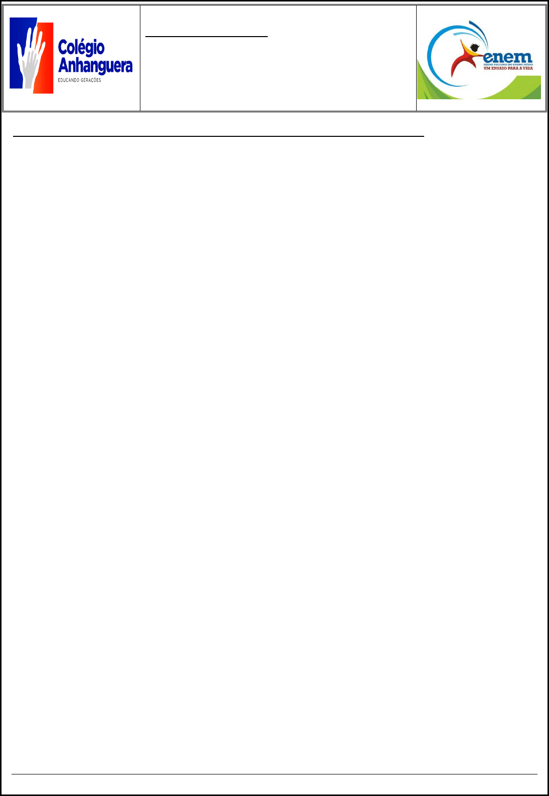 Colégio Anhanguera – Educando gerações 1 RESPOSTAS NO CADERNO (GRAMPEAR OU COLAR AS PERGUNTAS NO CADERNO) 01- O fim do mundo bipolarizado e da Guerra Fria não significou a eliminação dos conflitos e tensões internacionais. Atualmente, os confrontos se revestem mais de um conteúdo comercial, tecnológico e financeiro do que político- ideológico. Na denominada "Nova Ordem Mundial", três grandes pólos controlam a riqueza e o desenvolvimento técnico-científico deste final de século. a) Considerando os três pólos que estão comandando a globalização da economia mundial, explique as conseqüências para os interesses nacionais. b) Como esta nova ordem multipolar refletiu na atuação da Organização das Nações Unidas (ONU) e no Grupo dos Sete países mais ricos? 02- A queda do muro de Berlim, ocorrida no dia 09 de novembro de 1989, pode ser considerada como um marco que separa duas épocas: a época de vigência da Ordem da Guerra Fria, e a época da assim chamada Nova Ordem Mundial. a) Explique o que foi a Ordem da Guerra Fria. b) Como a chamada Nova Ordem Mundial se diferencia da Ordem da Guerra Fria? 03- Relacione a Guerra Fria ao surgimento dos Tigres Asiáticos. 04- "Os últimos anos da década de 80 foram decisivos para determinar o final da Guerra Fria." Apresente pelo menos 4 fatores que explicam esse fato. 05- A partir do final da Guerra Fria, ocorreram importantes mudanças nos limites territoriais de diversos estados europeus. O mapa da Europa já não era mais o mesmo. Apresente três importantes mudanças ocorridas na divisão territorial dos estados europeus a partir do fim da Guerra Fria. 06- Demonstre por que a globalização não significa melhor distribuição de riquezas no mundo atual. 07- A terceira revolução industrial e a globalização vão criar novas oportunidades, mas serão empregos para a elite. Os dias de oferta de empregos em massa acabaram. Jamais veremos milhares e milhares de trabalhadores saindo das fábricas depois de um dia de trabalho. (Jeremy Rifkin, autor do livro O FIM DOS EMPREGOS - "Folha de São Paulo", 25 / 08 / 97) (imagem abaixo) Considerando o texto e os dados apresentados: a) identifique as atuais tendências de absorção da mão-de-obra pelo mercado de trabalho; Questões selecionadas Aluno (a): __________________________________ Turma: 9º ano (Ensino fundamental) Professor: Yuri Disciplina: Geografia No Anhanguera você é + Enem Colégio Anhanguera – Educando gerações 2 b) explique por que essas tendências ocorrem. 08- No mundo atual têm ocorrido grandes transformações socioeconômicas atribuídas ao processo de globalização. a) O que é globalização? b) Cite dois aspectos positivos e dois negativos da atual globalização. 09- Vários aspectos que caracterizam o processo de globalização podem ser percebidos em eventos como a Copa do Mundo. Alguns autores chegam até a dizer que a "Copa do Mundo é lição de globalização". Apresente duas justificativas para tal afirmação. 10- A globalização é, muitas vezes, identificada com a multiplicação de redes que atravessam fronteiras e que aparentemente tornam obsoletos os limites internacionais entre os países. Entretanto, os territórios nacionais e seus limites são uma realidade e os Estados Nacionais ainda existem como unidades organizadas e de grande importância dentro da ordem política global. Apresente duas razões que explicam a relevância dos Estados Nacionais na era da globalização.