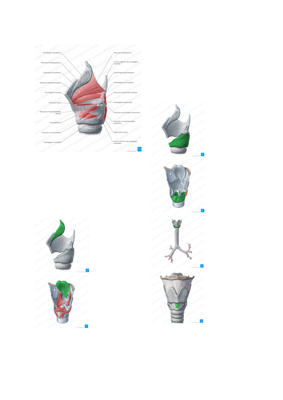 - Sem��� 2 - Fac� - Cav����e �r��, Cav����e n���� e S��os ����na����, Far����, Lar����. - Laringe: - Atua como uma válvula impedindo que o alimento deglutido e corpos estranhos penetrem nas vias aéreas inferiores; - É estrutura para a fonação; - Localizada na região anterior do pescoço, mede cerca de 5 cm de comprimento; - 3° e 6° vértebras cervicais. - Esqueleto da laringe: - Formado por 9 cartilagens - 3 pares e 3 ímpares. - Cartilagem epiglote: - Cartilagem cricóide: - Formato de um anel com sinete, com o arco olhando para frente; - É a mais inferior das cartilagens da laringe; - Menor que a cartilagem tireóidea mas mais grossa e mais resistente; - Parte posterior se chama lâmina e a parte anterior arco; - Fixada a margem inferior da cartilagem tireóide pelos ligamentos cricotireoideos - cricotomia - procedimento de urgência em pessoas que estão engasgadas, devemos cortar o ligamento cricotireóideo mediano para permitir acesso a cavidade da laringe e o paciente volte a respirar adequadamente; - E ao primeiro anel traqueal pelo ligamento cricotraqueal. (Ligamento cricotireóideo mediano) - Cartilagem tireóide: - É a maior cartilagem da laringe; - Duas lâminas, fundidas nos terços anteriores na linha mediana, formando a proeminência laríngea; - Proeminência laríngea - incisura tireóidea em Cin��y� A���s ���ev��. - Sem��� 2 - Fac� - Cav����e �r��, Cav����e n���� e S��os ����na����, Far����, Lar����. forma de V; - Corno superior e inferior; - A margem superior da cartilagem tireóide é fixada ao osso hióide pela membrana tireo-hióidea; - Cornos inferiores se articulam com a cartilagem cricóide em facetas que permitem uma inclinação ou deslizamento anterior ou posterior da cartilagem tireóide; - A face lateral de cada uma das lâminas da cartilagem tireóide é marcada por uma linha oblíqua; - Fornece fixação ao músculo constritor inferior da faringe e aos músculos esternotireóideo e tireo-hióideo. (Ligamento tireo-hioidea mediano) - Cartilagens aritenóides: - Par de cartilagens com formato piramidal, articula-se com as partes laterais da margem inferior da cartilagem cricóide; - Tem um ápice voltado para cima, um processo vocal na frente e um processo muscular lateralmente; - O ápice é fixado a prega ariepiglótica; - O processo vocal ao ligamento vocal; - O processo muscular aos músculos cricoaritenóideos posterior e lateral; - Cartilagens corniculadas e cuneiformes: - Pequenos nódulos cartilagíneos localizados na parte posterior das pregas ariepiglóticas; - Cartilagens corniculadas são fixadas aos ápices das cartilagens aritenóides e servem para prolongá-las; - Cartilagens cuneiformes localizam-se nas pregas ariepiglóticas. Cin��y� A���s ���ev��. - Sem��� 2 - Fac� - Cav����e �r��, Cav����e n���� e S��os ����na����, Far����, Lar����. - Epiglote: - Posterior a raiz da língua e ao osso hióide; - Extremidade superior é livre; - Extremidade inferior fixada ao ligamento tireoepiglótico; - Face anterior fixada ao osso hióide pelo ligamento hipoepiglótico. - Mucosa unida à raiz da língua pela prega glossoepiglótica mediana e duas pregas glossoepiglóticas laterais; - Entre as pregas medianas e laterais há depressões denominadas valéculas epiglóticas; - Tubérculo epiglótico - parte inferior da face posterior da cartilagem epiglótica que se projeta atrás. - Articulações da Laringe: - Algumas cartilagens da laringe se articulam livremente, permitindo deste modo que elas se movam durante a fonação; - Há dois pares de articulações sinoviais da laringe: - Articulações cricotireoideas: movimentos de rotação e deslizamento da cartilagem tireóide. Afrouxam ou retesam os ligamentos vocais. - Articulações cricoaritenoideas: movimentos das cartilagens aritenóides, deslizamento de uma em direção ou para longe da outra, inclinação para frente e para trás e movimento rotatório. - Fraturas de laringe: - Resultam de golpes recebidos durante a prática de boxe e do karatê ou da compressão pelo cinto de segurança em um acidente automobilístico; - Tais fraturas resultam em hemorragia e edema submucoso, obstrução respiratória, rouquidão e, às vezes, incapacidade de falar. - Obstrução de vias aéreas: - Se algum alimento ou corpo estranho penetra na laringe, os músculos da laringe entram em espasmo e isto retesa as pregas vocais; - Em consequência, a rima da epiglote é fechada e nenhum ar chega a traquéia, brônquios e pulmões. Obviamente, a pessoa está em perigo de asfixia; - Se o corpo estranho não é removido, deve-se instituir tratamento de emergência para abrir a via aérea. - Ligamento vocal: - Ligamento vocal: da junção das lâminas da cartilagem tireóide na frente ao processo vocal da cartilagem aritenóide atrás; - Ligamento vocal é o miolo fibroso da prega vocal.; - Membrana quadrangular: - Lâmina submucosa de tecido conectivo liga aritenóide a cartilagem epiglote; - A margem inferior livre desta membrana constitui o ligamento vestibular, que situa-se acima da prega vocal e estende-se da cartilagem aritenóide a cartilagem tireóide. Cin��y� A���s ���ev��. - Sem��� 2 - Fac� - Cav����e �r��, Cav����e n���� e S��os ����na����, Far����, Lar����. (Membrana quadrangular) (Membrana quadrangular) (Ligamento vestibular) (Ligamento vestibular) - Membrana fibroelástica da laringe: - Ligamentos cricotireóideo e a membrana quadrangular, embora separados pelo intervalo entre os ligamentos vocal e vestibular, são referidos como membrana fibroelástica da laringe. (Ligamento cricotireóideo) - Interior da laringe: - A cavidade da laringe estend