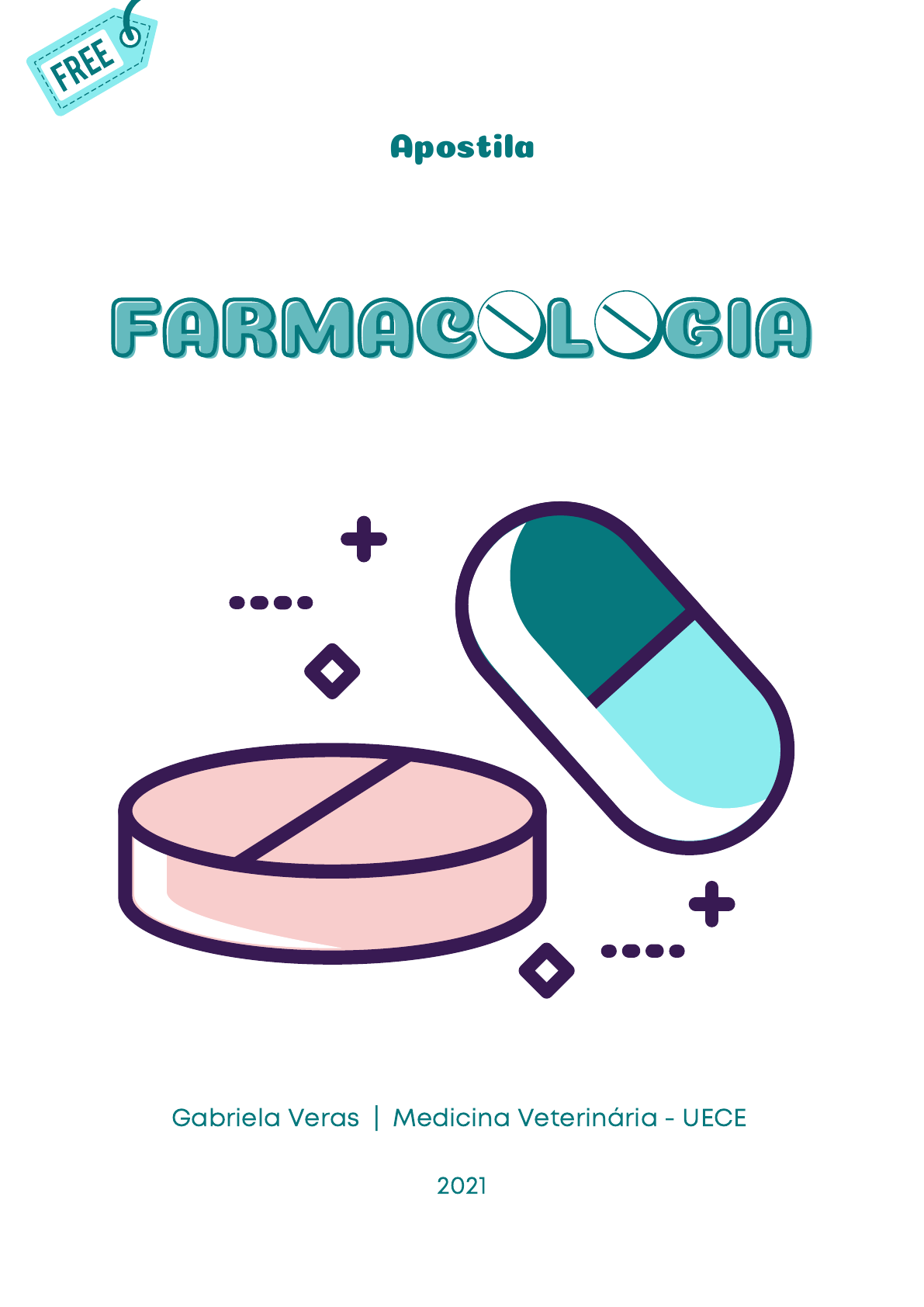 Gabriela Veras | Medicina Veterinária - UECE 2021 FARMACOLOGIAFARMACOLOGIA Apostila Versão Gratuita Este documento foi elaborado por mim, Gabriela, aluna do 6° semestre de Medicina Veterinária, na Universidade Estadual do Ceará - UECE. Essa apostila foi feita com base nas anotações de aula e no livro de Farmacologia Aplicada à Medicina Veterinária - H. S. Spinosa. APRESENTAÇÃO Para adquirir a apostila completa, entre em contato comigo através do meu instagram profissional, descrito a seguir. GABIVERAS.VET Ao final de cada capítulo, há um questionário a respeito do conteúdo da apostila cujo gabarito estará disponível na versão completa. 1) Introdução à farmacologia................................................................................................... 1 Conceitos Farmacológicos Vias de Administração Toxicologia Farmacológica Interações de Fármacos Exercícios de Fixação 2) Sistema Nervoso Autônomo................................................................................................ 9 Revisão do Sistema Nervoso Autônomo Sistema Nervoso Adrenérgico Agonistas Adrenérgicos Antagonistas Adrenérgicos Revisão do Sistema Nervoso Colinérgico Receptores Colinérgicos Agonistas Colinérgicos Antagonistas Adrenérgicos 3) Anestésicos Anestésicos Locais Propriedades Gerais dos Anestésicos Locais Pré-Anestésicos Anestésicos Gerais Anestésicos Dissociativos Anestésicos Inalatórios 4) Sistema Gastrointestinal Revisão dos mecanismo da secreção gástrica Antiácidos Pró-Eméticos Antieméticas 5) Drogas Antiinflamatórias Revisão dos mecanismos da inflamação Drogas antiinflamatórias não-esteroides - DAINES Corticosteroides (Glicocorticoides) 6) Drogas Antibióticas Introdução Inibidores da Síntese da Parede - Beta-Lactâmicos (Penicilinas, Cefalosporina, Carbapenêmicos e Monobactâmicos) - Não Beta-Lactâmicos (Bacitracina, Vancomicina, Cicloserina) Inibidores da Síntese Proteica - Tetraciclinas, Aminoglicosídeos, Cloranfenicol, Macrolídeos, Lincosamidas SUMÁRIO 7) Drogas Antifúngicas Revisão da Morfologia dos Fungos Derivados Poliênicos Derivados Azólicos Derivados Alilamínicos Derivados Morfolínicos Equinocandinas 8) Farmacologia dos Diuréticos Diuréticos de Alça Diuréticos Inibidores da Anidrase Carbônica Diuréticos Tiazídicos Diuréticos Osmóticos Diuréticos Poupadores de Potássio SUMÁRIO Atenção! Esse é sumário da versão completa da apostila. O conteúdo da versão gratuita abrange o primeiro capítulo e metade do segundo. A Farmacologia pode ser definida como a ciência que estuda a ação de substâncias químicas em um organismo vivo. Assim, faz parte do escopo da Farmacologia o conhecimento a respeito de origem, propriedades físico-químicas, absorção, distribuição, mecanismo de ação, biotransformação e eliminação, bem como os usos e efeitos destas substâncias químicas no organismo animal. Taquifilaxia: ocorre de forma aguda, sendo mais observada em experimentos in vitro, onde um fármaco interage com uma molécula-alvo e gera uma resposta farmacológica. Ao aumentar a dose do fármaco, a resposta também será aumentada, porém, em determinado momento, mesmo aumentando a dose do fármaco, não haverá mais nenhuma resposta farmacológica, devido à saturação ou até mesmo a destruição das moléculas-alvo. Tolerância: ocorre quando o organismo fica mais resistente ao fármaco devido à cronicidade de seu uso. Indivíduos que usam de forma crônica drogas anti-hipertensivas podem apresentar tolerância a esse medicamento em algum momento. Isso ocorre porque a molécula-alvo, ao longo do tempo, vai mudando sua conformação até chegar ao ponto de não reconhecer mais a droga. Taquifilaxia x Tolerância Introdução à Farmacologia É o estudo do mecanismo de ação do fármaco. Ou seja, é a maneira que o fármaco interage no organismo e produz uma resposta farmacológica. Tipos de Molécula-Alvo A taquifilaxia e a tolerância são fenômenos que ocorrem quando o organismo se acostuma com determinada substância. A molécula alvo deixa de ficar responsiva à ligação com uma determinada droga. 2. FARMACOCINÉTICA CONCEITOS FARMACOLÓGICOS 1. FARMACODINÂMICA Resposta Farmacológica A resposta farmacológica é o resultado da interação entre a droga e sua molécula alvo. A interação droga + molécula alvo é altamente específica, de forma que, a mesma droga ao interagir com uma molécula alvo diferente, irá produzir uma resposta farmacológica totalmente diferente. A noradrenalina O neurotransmissor noradrenalina quando interage com o seu adrenoceptor α1, aumenta a resistência periférica. O mesmo neurotransmissor ao interagir com o receptor β1, aumenta o débito cardíaco. De mesmo modo, ao interagir com adrenoceptor α2, bloqueia sua própria exocitose, antagonizando sua própria ação. Receptores (mais abundantes): adrenorreceptores, colinoceptores etc; Enzimas: acetilcolinesterase, cicloxigenases, fosfolipase A2 Canais iônicos: canais de Na, canais de K, canais de cálcio etc; Moléculas transportadoras: bomba de prótons É o estudo dos processos que o fármaco sofre ao percorrer o organismo. Desde o processo de absorção até sua excreção. Absorção O processo de absorção pode ser definido como a quantidade de fármaco que sai do seu local de administração e chega na corrente sanguínea. Por exemplo, ao aplicar um fármaco por via endovenosa, seu percentual de absorção será de 100%, visto que este não irá precisar passar por nenhuma barreira para ser absorvido. Desta forma, o fármaco alcança a absorção total ao ser aplicado diretamente na corrente sanguínea. Meia Vida Plasmática (t 1/2) A meia vida plasmática é o tempo necessário para que a concentração plasmática do fármaco caia pela 1 O período de latência é o intervalo entre o momento da administração do fármaco até sua resposta farmacológica. Em outras palavras, é o te