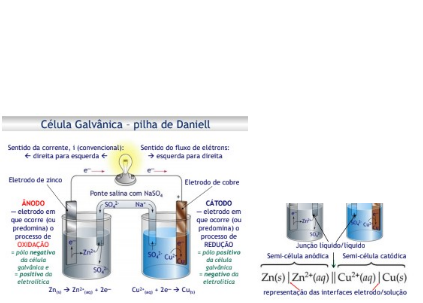 Potenciometria – Gutz Técnicas eletroanalíticas: apresentam pelo menos 2 eletrodos imersos numa solução (tipicamente eletrólito) Técnicas não há eletrólise (n há transferência de carga do eletrodo para um analito na solução ou vice verse): potenciometria e condutimetria Técnicas com eletrólise: completa (eletrogavimetria ou coulumetria) ou parcial (voltametria ou amperometria) PILHA DE DANIEL - Permite converter energia química em e elétrica - E composta de duas semi-células que estão unidas por uma ponte salina - Em uma das semi célula (lado esquerdo) temos o eletrodo de Zinco, que oxida com mais facilidade que o Cobre, da semi célula direita - Com isso, ocorre um fluxo de elétrons pelo circuito externo, levando até o eletrodo de Cu, produzindo energia elétrica que pode ser aproveitada para produzir trabalho/iluminar lâmpada - A célula, além de forçar a oxidação do Zn0 na semi célula esqueda à Zn2+, com liberação de 2e, e da redução de Cu2 com 2e produzindo Cu 0, tem que ter transporte de carga através da ponte salina - Para cada elétron liberado pelo Zn, temos que ter ou um íon de Na se deslocando no sentido da semi célula que está a solução de sulfato de cobre, ou meio íon de sulfato andando no sentido inverso, ou ambos acontecendo simultaneamente (é o que ocorre normalmente quando há fluxo maior no circuito) As semi células não funcionam separadamente, é preciso contato eletrolítico entre as células. Célula esquerda: solução de sulfato (ou nitrato) de zinco. Célula direita: solução de sulfato (ou nitrato) de cobre Quando a pilha está funcionando, considera-se seu funcionamento como o sendo de uma célula galvânica. Sentido da corrente é considerado do polo positivo ao polo negativo (Cu para Zn) (sentido dos elétrons é inverso, vai do eletrodo de zn ao eletrodo de cu) A nomenclatura utilizada para o eletrodo em que predomina processo de oxidação: ânodo – polo negativo de uma célula galvânica (zn) sofre oxidação. Ânodo – polo positivo na eletrolítica Eletrodo onde é redução: Cátodo. Cátodo Célula galvânica: polo positivo. Cátodo eletrolítica: polo negativo Para calcular o potencial esperado para um cel eletroquímica, usa-se a tabela de pot padrão de redução. >E0 aqui: maior tendência a se reduzir (portanto os mais fortes oxidantes). Ag (metais), I, Cu Ag e Cu. Ag: sofre red (potencial maior), aceita elétrons do Cu pelo fio externo. É diferente da cel de Daniel, onde Cu reduzia (potencial maior que o do Zn) Continuando a tbela: redutores mais fortes: potencial negativo. 0 arbritário: H+ em q com H2. Tem maismetais nos redutores. Cálculo de potencial de uma célula no estado padrão Esquerda: ions cobre, direito: prata. Tendência seria de circular da esq para direita, mas isso não é permitido por esse voltímetro. Ele tem passagem de corrente nula. É necessário que seja assim para medir corretamente o potencial da célula. Usar experimento em condições de equilibro, sem passagem de corrente. Para daniels mesma coisa. Direita menos o da esquerda. 3 situações diferentes para células eletroquímicas 1ª) se faz a medida de potencial ou ddp sem passagem de corrente 2ª) célula sofre descarga espontânea mediante circ de elétrons pelo circ externo 3ª) sentido reações é invertido mediante app de potencial externo superior ao potencial espontâneo da célula: recarga de uma bateria. Aplica potencial maior que o fornecido pela célula, para promover reversão do sentido das reações. CÁTODO À direita, onde ocorre predominantemente a redução. Mas quando reverte o sentido da corrente para recarregar, há uma inversão dos eletrodos. A redução da recarga passa a ser no Zn (cátodo passa a ser o Zn, não o Cu). FLUXO de e é sempre precedido de sinal negativo para indicar corrente catódica. Cel de Daniel, a medida que opera, sofre alteração em sua composição. De um lado deposição de Cu e do outro lado consumo eletrodo de zn. Ema lgum momento sistema para de funcionar (ou por falta de zn no anodo ou falta de ions de cu na direita), aí potencial chega a 0. Qtdade de cu a se depositar em função da corrente que passa pelo circ externo: faraday.