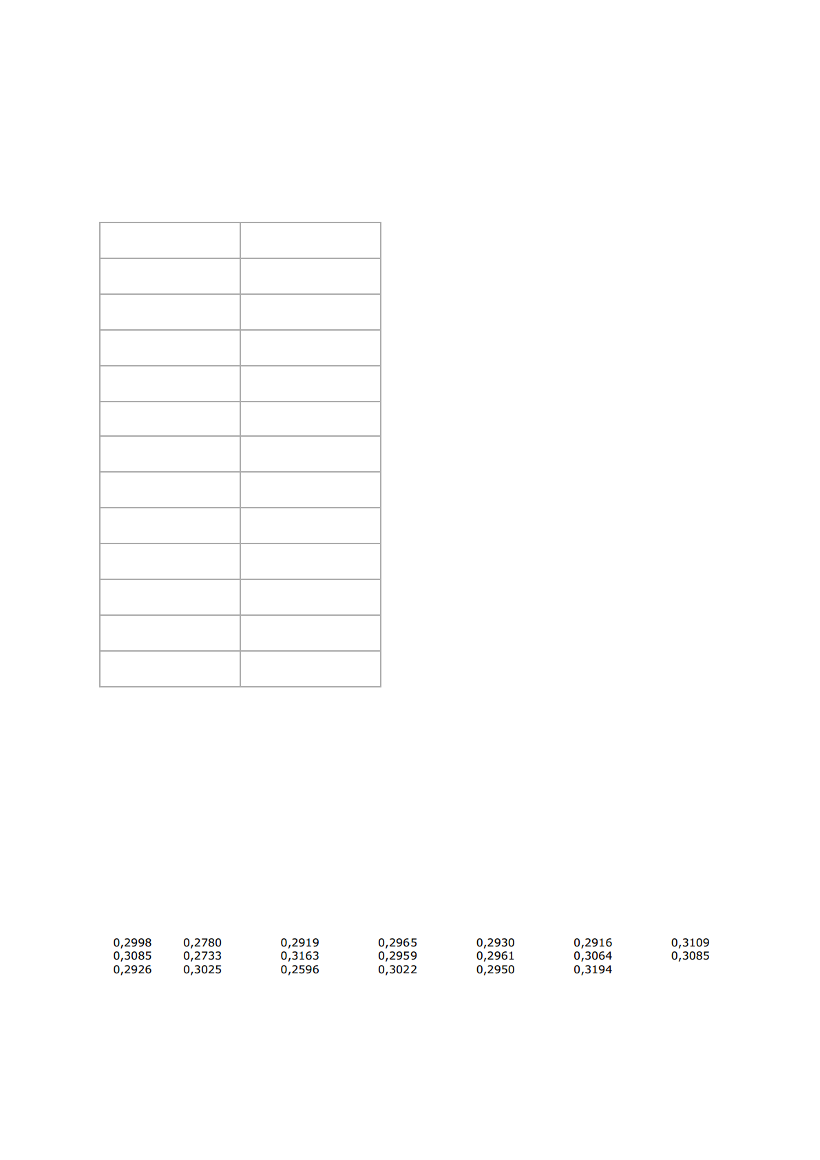LISTA DE EXERCÍCIOS ATIVIDADE 2 - Controle de Qualidade de Produtos Farmacêuticos Prof. MSc. Rodrigo Cesar Assis Caixeta ------------------------------------------------------------------------------------------------------------------------ Considere um teste de validação para dosagem de medicamentos por espectrofotometria UV/Vis que apresentou os seguintes resultados, a partir de SQR1: RÉPLICA ABSORBÂNCIA 1 0,567 2 0,671 3 0,555 4 0,789 5 0,767 6 0,750 7 0,652 8 0,790 9 0,673 10 0,568 11 0,701 12 0.656 1. Calcule todos os parâmetros analíticos necessários, segundo a RDC n. 166/2017 2. Descreva qual a interpretação final sobre a validação inicial do método. 3. O método é confiável? Justifique sua resposta, partindo de métodos estetísticos. 4. Elabore um gráfico de linearidade e demonstre qual a concentração de fármaco em uma amostra cuja absorbância foi 0,677. Em um ensaio físico de medicamentos, foram obtidos os seguintes pesos na análise de comprimidos não-revestidos de ibuprofeno 300mg: 5. A pesagem foi confiável? Justifique sua resposta, a partir da análise estatística. 6. De acordo com a Farmacopeia Brasileira, o medicamento apresenta uniformidade de dose? Justifique sua resposta. 7. Em um teste de friabilidade com os mesmos comprimidos, o peso total final obtido após rotação no friabilômetro por 5 minutos foi de 5,2231 g. O que pode dizer sobre o resultado da análise? Cite 3 (três) possíveis sugestões para melhoria da qualidade dos comprimidos. 8. Complete o texto a seguir (consulte a Farmacopeia, se necessário): “Em um ensaio de _____A_____, observamos in vitro se um comprimido de AAS 100mg pode ser dissolvido no suco gástrico para ser absorvido. Com isto, trituram-se os comprimidos do lote até a alíquota de 1 parte para 9 partes de ____B____(solvente) e transfere para o recipiente do dissolutor. É importante que a temperatura da cuba esteja a ____C____ ºC (graus Celsius) e a alíquota em pH de ____D____ para simular o local de absorção. O tempo correto para mistura é de ____E____ minutos. Antes, a alíquota precisa ser analisada em espectrofotometria UV/Vis em comprimento de onda de _____F____ a _____G____ nm (nanômetros). Então, após a alíquota passar pelo dissolutor, a absorbância precisa ser ____H____ que a absorbância da alíquota antes de passar pelo dissolutor. “ 9. Como preparar uma solução de 300mL de SQR1 de Paracetamol 5%? 10. Qual a amostragem e a tomada de ensaio de um lote de xarope de guaco 120mL para ensaio retrospectivo de teor, cuja concentração declarada é de 81,5mg/mL e o SQR2 apresentou leitura de 30 mcg? ------------------------------------------------------------------------------------------------------------------------ - Demonstre em todos os cálculos - Exponha-os de maneira organizada - Justifique usando a norma culta da língua portuguesa - Explore as farmacopeias existentes em edições atualizadas