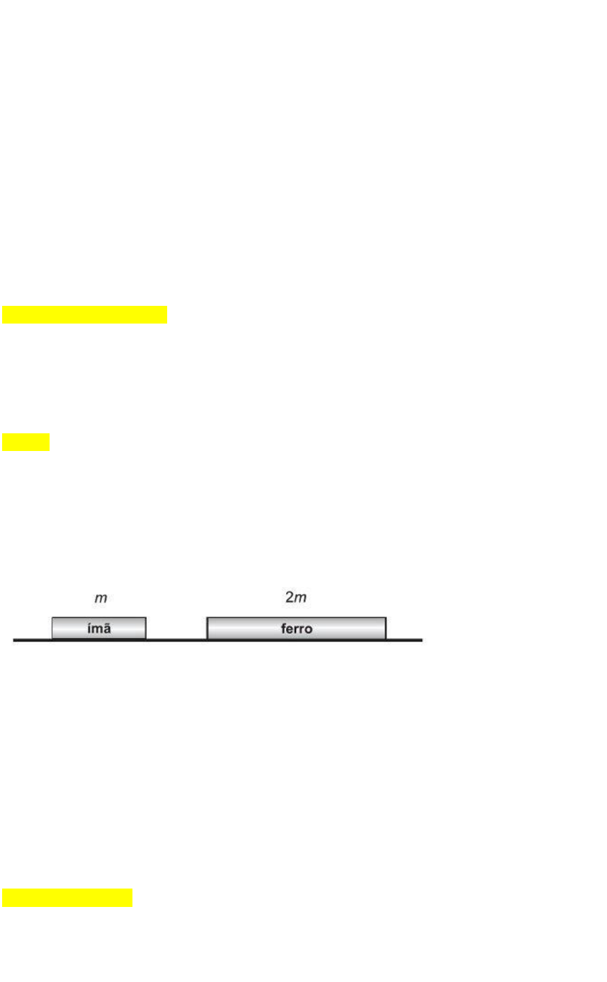 QUESTÃO DE FÍSICA PARA FIXAÇÃO (força magnética) 1- (MED - ITAJUBÁ) I. Uma carga elétrica submetida a um campo magnético sofre sempre a ação de uma força magnética. II. Uma carga elétrica submetida a um campo elétrico sofre sempre a ação de uma força elétrica. III. A força magnética que atua sobre uma carga elétrica em movimento dentro de um campo magnético é sempre perpendicular à velocidade da carga. Aponte abaixo a opção correta: a) Somente I está correta. b) Somente II está correta. c) Somente III está correta. d) II e III estão corretas. e) Todas estão corretas. 2- (PUC) Um elétron num tubo de raios catódicos está se movendo paralelamente ao eixo do tubo com velocidade 107 m/s. Aplicando-se um campo de indução magnética de 2T, paralelo ao eixo do tubo, a força magnética que atua sobre o elétron vale: a) 3,2 . 10-12N b) nula c) 1,6 . 10-12 N d) 1,6 . 10-26 N e) 3,2 . 10-26 N 3- (UFMG) Um ímã e um bloco de ferro são mantidos fixos numa superfície horizontal, como mostrado nesta figura: Em determinado instante, ambos são soltos e movimentam-se um em direção ao outro, devido à força de atração magnética. Despreze qualquer tipo de atrito e considere que a massa m do ímã é igual à metade da massa do bloco de ferro. Sejam ai o módulo da aceleração e Fi o módulo da resultante das forças sobre o ímã. Para o bloco de ferro, essas grandezas são, respectivamente, af e Ff . Com base nessas informações, é CORRETO afirmar que a) Fi = Ff e ai = af. b) Fi = Ff e ai = 2af. c) Fi = 2Ff e ai = 2af. d) Fi = 2Ff e ai = af. 4- (UNIP SP) A figura representa os polos de um ímã e um feixe de elétrons penetrando no campo magnético deste ímã com velocidade V, perpendicularmente ao plano do papel. O feixe de elétrons deslocar-se-á segundo a orientação dada pela seta: a) I b) II c) III d) IV e) nenhuma destas 5- (FPS-PE) Um fio condutor retilíneo tem comprimento L = 16 metros e transporta uma corrente elétrica contínua, igual a I = 0,5 A, em um local onde existe um campo magnético perpendicular e uniforme, cujo módulo vale B = 0,25 Tesla, conforme indica a figura abaixo. O módulo da força magnética exercida pelo campo magnético sobre o fio será: a) 0,2 N. b) 20 N. c) 200 N. d) 10 N. e) 2 N.