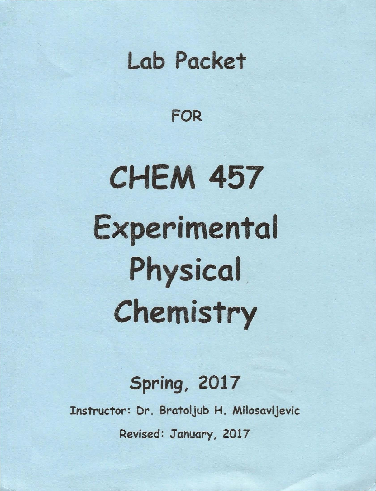 Experimental Physical Chemistry, CHEM 457 course is designed to reinforce the