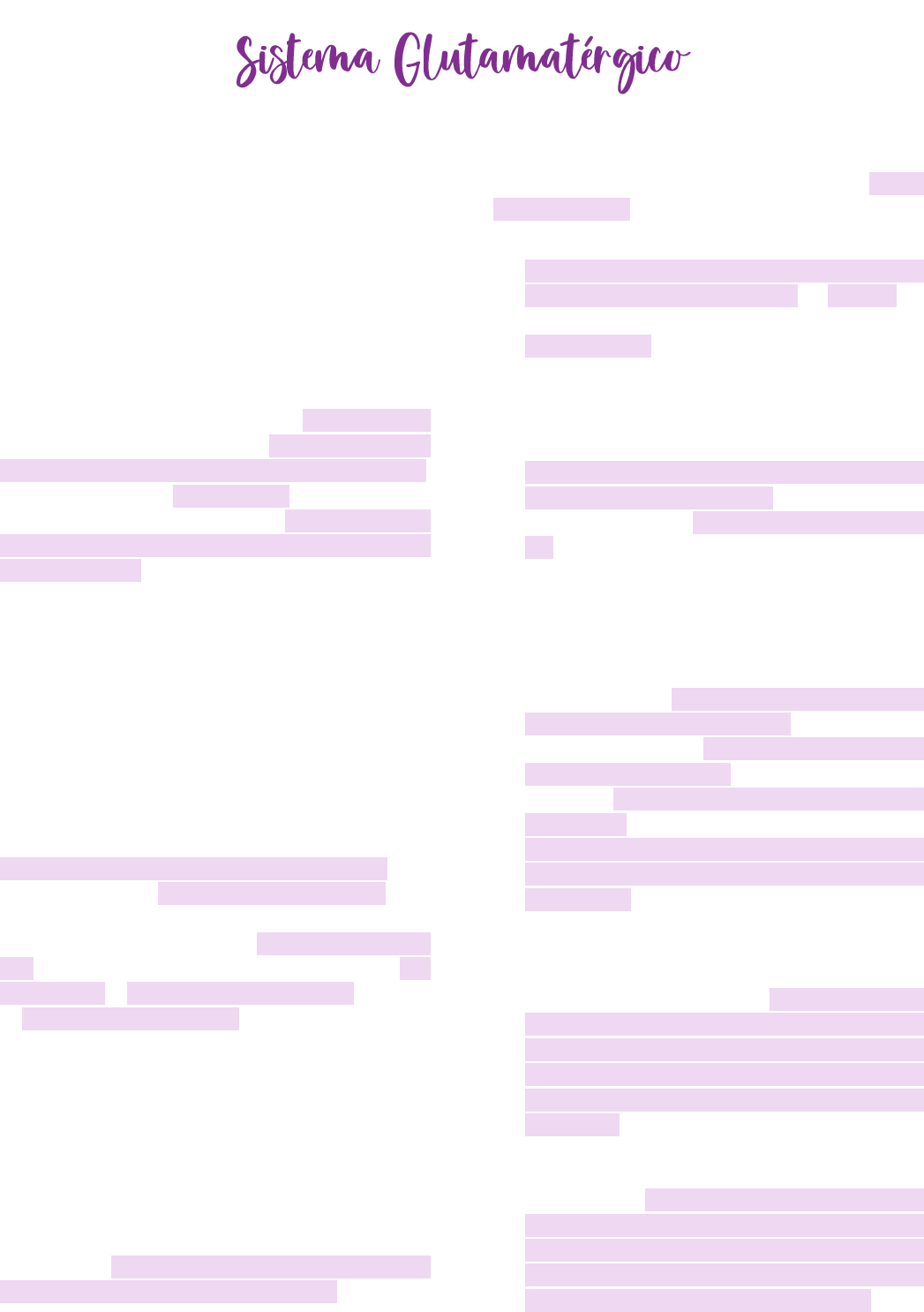 O glutamato é o principal neurotransmissor do encéfalo. A atuação do glutamato é fundamental no processo de memória. Curiosamente, o glutamato também está envolvido no processo de suicídio celular, uma vez que o excesso de glutamato é neurotóxico e mata a célula por excesso de influxo de Cálcio. Síntese A síntese do glutamato ocorre através de duas vias distintas. Em uma dessas vias, o α-cetoglutarato formado no ciclo de Krebs é transaminado a glutamato nas terminações nervosas do SNC. Alternativamente, a glutamina produzida e secretada pelas células da glia é transportada nas terminações nervosas e convertida em glutamato pela glutaminase. Liberação O glutamato é liberado por exocitose das vesículas contendo o transmissor através de um processo dependente de cálcio. Remoção O glutamato é removido da fenda sináptica por transportadores de recaptação do glutamato, que estão localizados nas terminações nervosas pré- sinápticas e nas membranas plasmáticas das células gliais. Esses transportadores são dependentes de Na+ e possuem alta afinidade pelo glutamato. Nas células gliais, a enzima glutamina sintetase converte o glutamato em glutamina, que é reciclada em terminações nervosas adjacentes para nova conversão em glutamato. Receptores de glutamato • Receptores Ionotrópicos de Glutamato: Os receptores ionotrópicos de glutamato medeiam as respostas sinápticas excitatórias rápidas. Esses receptores são canais seletivos de cátions constituídos por múltiplas subunidades que, ao se rem ativadas, permitem o fluxo de íons Na+, K+ e, em alguns casos, Ca2+ através das membranas plasmáticas. Existem três subtipos principais de canais de íons regulados pelo glutamato, classificados de acordo com a sua ativação pelos agonistas seletivos AMPA, cainato e NMDA. • Os receptores de AMPA: são encontrados em todo o SNC e localizam-se particularmente no hipocampo e no córtex cerebral. A ativação do receptor de AMPA resulta primariamente no influxo de Na+ (bem como em certo efluxo de K+), permitindo que esses receptores regulem a despolarização pós-sináptica excitatória rápida nas sinapses glutamatérgicas • Os receptores de cainato: são expressos em todo o SNC, sendo encontrados particularmente no hipocampo e no cerebelo. Os receptores de cainato permitem o influxo de Na+ e o efluxo de K+ através de canais que possuem uma cinética rápida de ativação e desativação. A combinação das subunidades no complexo do receptor de cainato também determina a permeabilidade do canal ao Ca2+. • Os receptores NMDA: são expressos primariamente no hipocampo, no córtex cerebral e na medula espinal. A ativação do receptor NMDA, que exige a ligação simultânea de glutamato e glicina, abre um canal que permite o efluxo de K+, bem como o influxo de Na+ e Ca2+. Nos receptores NMDA que estão ocupados pelo glutamato e pela glicina, os íons Mg2+ bloqueiam o poro do canal na membrana em repouso, é necessária a despolarização da membrana concomitantemente com a ligação do agonista para remover esse bloqueio de Mg2+ dependente de voltagem. A despolarização da membrana pós-sináptica que remove o bloqueio do receptor Mg2+ ligado ao NMDA pode ser produzida por séries de potenciais de ação pós- sinápticos ou pela ativação de receptores AMPA/cainato em regiões adjacentes à membrana. Por conseguinte, os receptores NMDA diferem dos outros receptores ionotrópicos de glutamato em dois aspectos importantes: exigem a ligação de múltiplos ligantes para a ativação do canal, e a sua regulação depende de uma atividade pré- sináptica mais intensa do que a necessária para a abrir os receptores AMPA ou de cainato. • Receptores Metabotrópicos de Glutamato: Consistem em um domínio transmembrana que atravessa sete vezes a membrana, acoplado a diversos mecanismos efetores através de proteínas G. Existem pelo menos oito subtipos de receptores metabotrópicos de glutamato; cada um deles pertence a um de três grupos (grupos I, II e III), de acordo com a sua homologia de seqüência, mecanismo de transdução de sinais e farmacologia. ➢ Grupo I: provocam excitação neuronal através da ativação da fosfolipase C (PLC) e liberação de IP3 intracelular mediada por Ca2+, ou através de ativação da adenilil ciclase e geração de cAMP. ➢ Grupos II e III: inibem a adenilil ciclase e diminuem a produção de cAMP. Essas vias de segundos mensageiros regulam os fluxos iônicos de outros canais. Assim, por exemplo, a ativação dos receptores metabotrópicos de glutamato no hipocampo, no neocórtex e no cerebelo aumenta as taxas de descarga neuronal ao inibir uma corrente de K+ hiperpolarizante. ➢ Grupos II e III: no hipocampo, podem atuar como auto-receptores inibitórios, que inibem os canais de Ca2+ pré-sinápticos, limitando, portanto, a liberação pré-sináptica de glutamato.