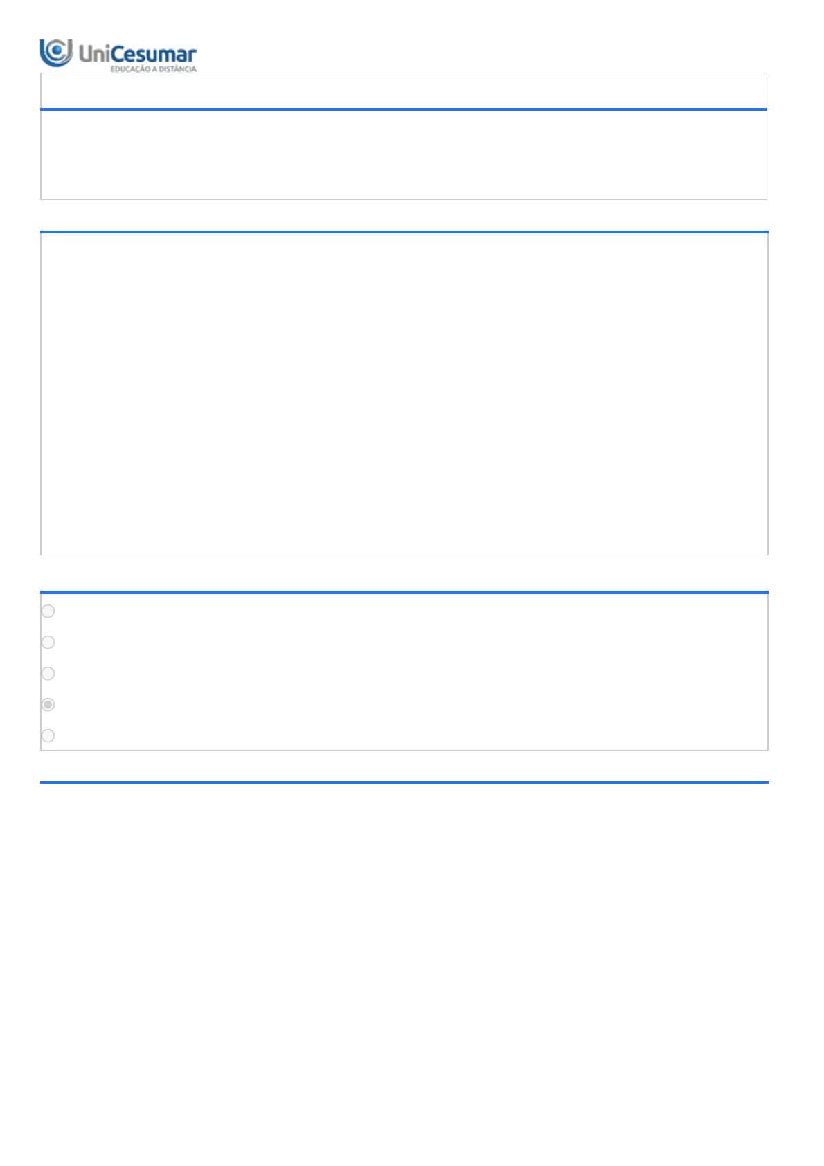 05/09/2021 Unicesumar - Ensino a Distância 1/7 ATIVIDADE 2 - PED - ESTATÍSTICA APLICADA À EDUCAÇÃO BÁSICA - 52/2021 Período:21/06/2021 08:00 a 09/07/2021 23:59 (Horário de Brasília) Status:ENCERRADO Nota máxima:1,50 Gabarito:Gabarito será liberado no dia 10/07/2021 00:00 (Horário de Brasília) Nota obtida:1,50 1ª QUESTÃO Diante os conceitos abordados em estatísticas nos deparamos com os conceitos de razão e proporção. Sobre o tema, analise as afirmativas que seguem. I. O conceito de razão se norteia sobre objetivo de comparar medidas de mesma grandeza. II. A proporção pode ser definido como a comparação entre duas razões e por isso podemos dizer que se duas razões comparadas forem diferentes não existirá proporção. III. Para realizar a ampliação proporcional de uma imagem, pode-se verificar se a razão da imagem menor é igual a da imagem maior. IV. Ao analisar dois quadrados de lados diferentes, não há como afirmar se suas dimensões são proporcionais. É correto o que se afirma em: ALTERNATIVAS I, apenas. I e IV, apenas. III e IV, apenas. I, II e III, apenas. I, III e IV, apenas. 2ª QUESTÃO 05/09/2021 Unicesumar - Ensino a Distância 2/7 Um dos critérios de suma importância para o bom desenvolvimento de uma pesquisa é a definição de quem será sua população, e consequentemente, sua amostra bem como suas características. A esta característica que será transformada em dados estatísticos ou valores numéricos, dá-se o nome de variável. Neste contexto, uma variável pode ser subdividida em 2 grandes grupos: variável qualitativa e variável quantitativa. Assim com base nesta informação e os conhecimentos referentes aos tipos de variáveis, analise as asserções a seguir: I. As variáveis qualitativas podem ser divididas em dois grupos, e o que determina essa divisão é a possibilidade de organização dos dados, de forma ordenada ou não. Porque II. As variáveis conhecidas como nominais possuem um atributo onde a principal característica a ser observada permite certa ordenação, assim como uma ordem alfabética em uma lista escolar, enquanto que as variáveis ordinais são aquelas que, em sua organização, na ordenação dos dados, por exemplo, o time de futebol preferido de uma população ou o estado civil de um determinado grupo de pessoas. A respeito dessas asserções, assinale a opção correta. ALTERNATIVAS As asserções I e II são proposições verdadeiras, e a II é uma justificativa correta da I. As asserções I e II são proposições verdadeiras, mas a II não é uma justificativa correta da I. A asserção I é uma proposição verdadeira, e a II é uma proposição falsa. A asserção I é uma proposição falsa, e a II é uma proposição verdadeira. As asserções I e II são proposições falsas. 3ª QUESTÃO De acordo com Crespo (2002), a estatística possui como aspecto inicial proporcionar métodos inferenciais, que visam permitir conclusões que transcendam os dados obtidos inicialmente. A partir deste contexto , analise as afirmações: CRESPO, A. A. Estatística fácil. São Paulo: Saraiva. 2002 I. É a partir da dedução dos dados obtidos que podemos encontrar respostas ou prováveis soluções para nossas indagações iniciais de pesquisa. II. Somente a exatidão dos dados obtidos atuam como fonte para encontrar respostas e soluções. III. É somente a partir da lógica dos dados obtidos que podemos encontrar respostas ou soluções para nossas indagações iniciais de pesquisa. IV. A dedução é parte importante para encontrar resposta e soluções que transcendam a lógica dos dados obtidos. É correto que se afirma em: ALTERNATIVAS 05/09/2021 Unicesumar - Ensino a Distância 3/7 I, apenas. I e II, apenas. I e IV, apenas. II e IV, apenas. II, III e IV, apenas. 4ª QUESTÃO Mediante a preocupação com os diversos cálculos de grandes números e complexidade ao qual o estudo da Estatística sempre esteve envolto, é que as atividades de caráter estatístico passam a ser consideradas como conhecimento científico, e assim, necessitam de um rigor metodológico padronizado, a fim de garantir que sua reprodução fosse uma atividade possível nas mais distintas situações, tendo com base o texto anterior elucidado, é possível afirmar que: ALTERNATIVAS A partir de então, a Estatística se torna parte importante da matemática, nome sugerido pelo pesquisador Godofred Achenwall. A partir de então, esta nova Ciência passa a ser conhecida como Estatística, nome sugerido pelo pesquisador Godofred Achenwall, que define a relação deste conhecimento estatístico com as demais ciências. A partir de então, a Estatística se torna parte importante da matemática, nome sugerido pelo pesquisador Godofred Achenwall, que apenas define a relação deste conhecimento estatístico com as demais ciências. A partir de então, este novo conhecimento passa a ser conhecido como uma parte importante da matemática, cujo nome foi sugerido pelo pesquisador Godofred Achenwall, aos quais define um método claro para sua reprodução. A partir de então, esta nova Ciência passa a ser conhecida como Estatística, nome sugerido pelo pesquisador Godofred Achenwall, que especifica quais os objetivos do método e define a relação deste conhecimento estatístico com as demais ciências. 5ª QUESTÃO 05/09/2021 Unicesumar - Ensino a Distância 4/7 Ao abordarmos sobre os cálculos que envolvem a regra de três e a porcentagem, pode-se perceber que ambos são amplamente comuns em meio aos conteúdos de estatística e podemos utilizá-los em diversas situações-problema. Sobre o tema, analise as afirmativas abaixo considerando V para o que for verdadeiro e F para falso: I- Ao desenvolver situações-problemas em sala de aula, embora seja muito importante, não denota o envolvimento de cálculos tal como a regra de três. II- Mesmo que a regra de três e a porcentagem sejam conteúdos comuns à Estatística, estas não atuam de f