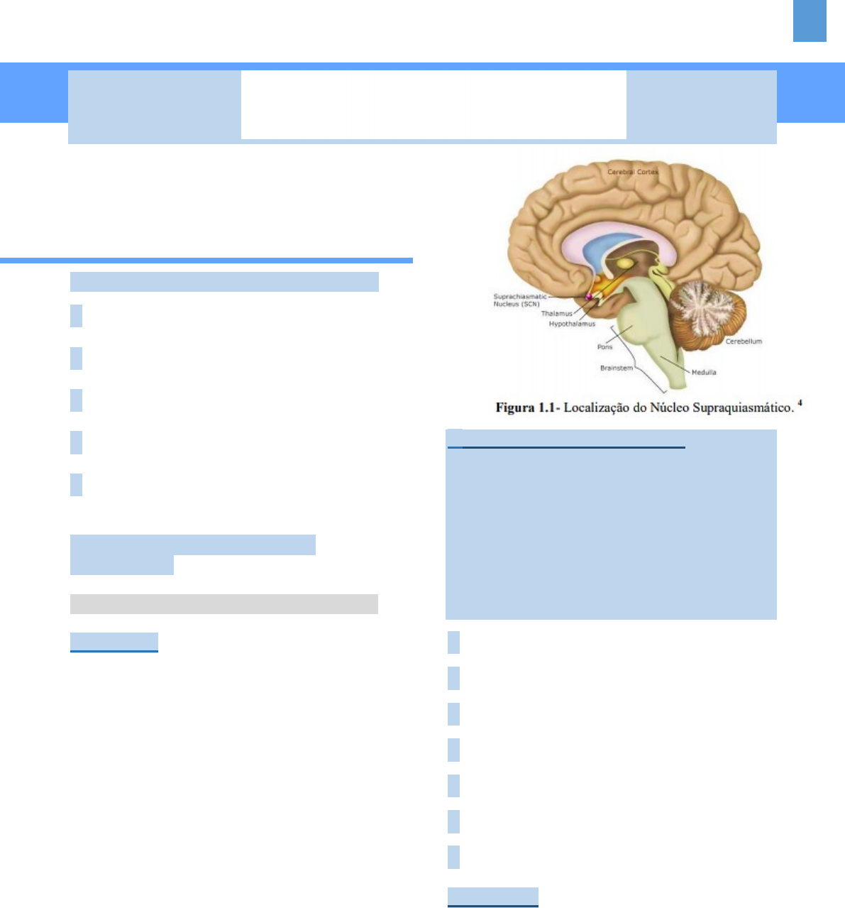 Thaiane Barros – Medicina P2 1 Problema: Mudanças de Vida Tutor: Hicla Relator: Ana Cecília Coordenador: Mauro Vital PASSO 5- LISTANDO OS OBJETIVOS: ♡ Explicar o Ciclo circadiano e seu funcionamento ♡ Compreender os mecanismos fisiológicos que alteram o ciclo circadiano ♡ Definir os tipos de estresse e explicar suas consequências físicas e psíquicas ♡ Compreender as fases do sono e suas alterações patológicas ♡ Compreender os mecanismos termorreguladores PASSO 6- DESCREVENDO OS OBJETIVOS: Ciclo circadiano e seu funcionamento: ● Conceito: O ciclo ou ritmo circadiano/ também chamado de ciclo de sono e vigilância é um ritmo biológico do nosso organismo, ele é basicamente um relógio interno periódico de 24hs que funciona através de controles presentes no nosso cérebro, chamado de núcleo supraquiasmático (NSQ), que está localizado no hipotálamo. Esse ritmo determina de que forma o nosso organismo irá se adaptar à duração do período claro (dia) e do período escuro (noite), afim de sincronizar as funções fisiológicas do corpo com a duração de um dia. É esse ciclo quem faz o controle de todo o corpo e de todos os processos homeostáticos presentes nele, como por exemplo, estados de sono e de alerta, temperatura corporal, equilíbrio químico entre outros, de modo que esses processos funcionem regularmente. ● Fatores que são regulados: O ciclo circadiano também exerce influência em nossa pressão arterial, no nosso apetite, na temperatura do nosso corpo, e nos hormônios que produzimos e liberamos na corrente sanguínea. A partir disso, o ciclo tem influência direta sobre nosso metabolismo e nosso comportamento ao longo do dia. ♡ Níveis Pressóricos ♡ Horário de sono ♡ Apetite ♡ Temperatura corporal ♡ Níveis hormonais ♡ Estado de sono/vigília ♡ Metabolismo ● Controle: O ciclo circadiano humano é controlado pelo hipotálamo, que recebe sinais de luz e escuridão, os quais são captados pela retina nos olhos, e estabelece os padrões de sono e vigília ao longo do dia. Thaiane Barros – Medicina P2 2 ◊ CURIOSIDADE: Pesquisas recentes expandiram o sentido do termo, demonstrando que os ritmos circadianos estão também relacionados às marés, ao ciclo lunar e também à dinâmica climática da Terra através das correntes eólicas e marítimas, em especial se observado com relação aos animais migratórios. ● Funcionamento: O mecanismo de funcionamento do ciclo se comporta de forma periódica e rítmica que é auto-sustentada e estimulada pela luminosidade, isso porque o núcleo supraquiasmático funciona como um tipo de oscilador central que vai regular a expressão desses genes captados pelos seus neurônios de acordo com a presença ou ausência da luz. Dentro do sistema neurológico, encontramos diversas células do tecido neural, que trabalham de maneira síncrona, umas com as outras do mesmo tecido, e entre os demais tecidos do corpo. Para que essa sincronia ocorra, ou seja, as informações e comandos sejam propagadas uniformemente, é preciso que haja uma comunicação entre as células do núcleo supraquiasmático com os estímulos exteriores, esses estímulos exteriores vão funcionar como uma espécie de organizadores de informação que vão garantir que essa comunicação celular seja cíclica e uniforme. Após a realização dessa comunicação celular com o estímulo externo, como por exemplo, a luminosidade, esse estímulo chega até o núcleo supraquiasmático, onde ele é captado através de um sinal chamado de INPUT (sinal de entrada por onde é gerado, conduzido e transmitido o impulso nervoso), e após captado o SCN vai interpretar a informação recebida e em seguida transmiti-la através de outro neurônio, que é o sinal de OUTPUT (ou seja, sinal de saída), por onde será transmitida a informação para todas as outras células do corpo. Mecanismos fisiológicos que alteram o ciclo circadiano: ● Fatores fisiológicos: ♡ Metabolismo energético ♡ Motilidade do trato gastrointestinal ♡ Ciclos de sono-vigília/ ciclo claro-escuro ♡ Atividade cardiovascular ♡ Secreção endócrina ♡ Temperatura corporal ♡ Atividade renal ♡ Atividade locomotora. ● Fatores ambientais/externos: ♡ Duração do dia e da noite intensidade luminosa (ambiente, aparelhos eletrônicos em horários inadequados, como a noite) ♡ Temperatura (frio=mais sonolência/ calor=mais energia) ♡ Hábitos alimentares (cafeína/ Em adultos saudáveis, a meia-vida da cafeína é entre 3-7 horas) estilo de vida (drogas) ● Consequências de alteração do ciclo: ♡ Distúrbios do sono: o corpo é “programado” biologicamente para dormir durante a noite. Interrupções nos ritmos naturais podem causar distúrbios como insônia, ansiedade, depressão, atraso mental; ♡ Disritmia circadiana (jet lag): um distúrbio no ritmo circadiano, normalmente temporário, causado por viagens durante a noite ou através dos fusos horários; causando sonolência diurna. ♡ Transtornos do humor: a privação do sono, a falta de exposição ao sol pode levar a condições como depressão, transtorno bipolar e transtorno afetivo sazonal (TAS); ♡ Transtornos de trabalho/atividades: pessoas que trabalham fora do cronograma biológico, ou por estilo de vida não seguem esse cronograma, tendem a Thaiane Barros – Medicina P2 3 ter um menor desempenho no trabalho, distrações e também uma maior propensão a acidentes. ● Prevenindo distúrbios do sono: ♡ Evitar substâncias que afetam o sono pelo menos após as 18h, incluindo cafeína, álcool e nicotina; ♡ Evitar consumir bebidas frias, como chá gelado, refrigerantes e energéticos ♡ Manter um horário regular de sono sempre que possível; ♡ Se expor à luz natural do sol; ♡ Tirar sonecas de dez a 15 minutos depois do almoço; ♡ Se estiver dentro de casa durante o dia, abrir as janelas e, se necessário, ligar as luzes; ♡ Evitar luzes artificiais ao entardecer e 