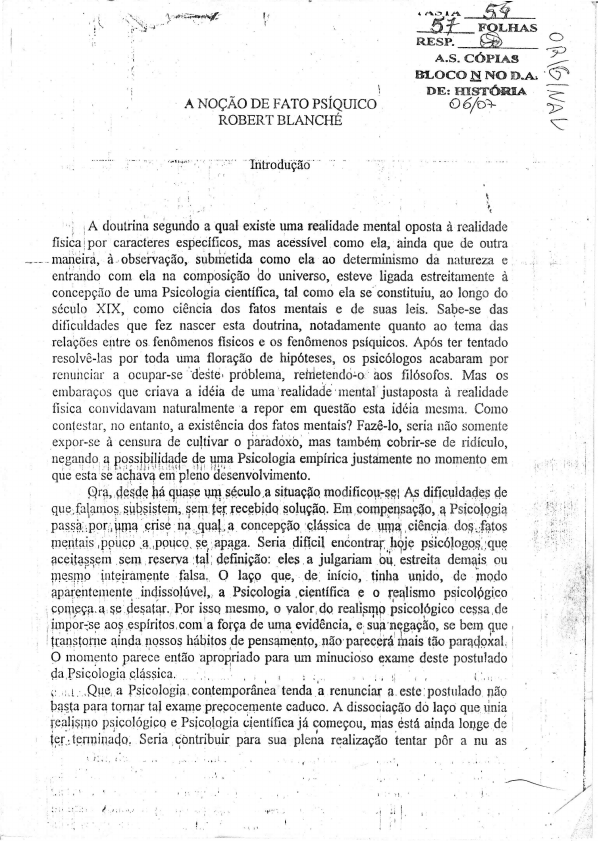 Psicologia, se se persistisse pm defini-la como çiência dos fatos mentais, nãq,teria