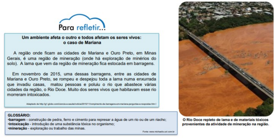 EXERCÍCIOS - Resolvidos 1. “Um garoto, durante o primeiro dia de suas férias viajou de avião, para uma belíssima praia brasileira e praticou mergulho.” Observe as palavras em destaque, a partir delas podemos afirmar que neste mesmo dia este garoto passeou, respectivamente (na sequência), por parte de quais esferas? O garoto passeou na Atmosfera, na Litosfera e na hidrosfera (respectivamente). 2. Relacione as partes da Terra e as frases a seguir: A – Núcleo B – Manto C – Crosta Terrestre ( B ) Formada por material pastoso chamado magma ( C ) Camada superficial da Terra que apresenta temperaturas amenas adequadas à vida. ( A ) Temperatura pode chegar a 6000°C ( C ) Também chamada de Litosfera ( C ) Única camada que abriga os seres vivos ( C ) Camada formada por placas tectônicas 3. Leia o texto e responda as perguntas: a) Em que esfera da Terra ocorre a atividade de mineração? Litosfera b) O Rio Doce, afetado pelo desastre, pertence a que esfera da Terra? Hidrosfera c) Os seres vivos que foram afetados pela lama fazem parte de qual esfera da Terra? Biosfera 4. Exemplifique 3 seres vivos que podem ser encontrados na: a) Litosfera: cavalo, cachorro, anta, zebra, avestruz, lhama, gato, onça, leão, elefante... b) Atmosfera: beija-flor, papagaio, tucano, arara, andorinha, pomba, canário, gavião... c) Hidrosfera: tubarão, arraia (raia), baleia, sardinha, pacu, tainha, dourado, pintado... 5. Complete a imagem identificando cada uma das quatro esferas (atmosfera, biosfera, litosfera e hidrosfera) que estudamos: 6. Identifique, nas imagens abaixo, as esferas (Litosfera, Atmosfera, Biosfera e Hidrosfera) em que nós e outros seres vivos interagimos na Terra. a) A retroescavadeira está cavando o solo que faz parte da litosfera. b) A família está pescando na lagoa que é uma das partes da hidrosfera. c) O menino coloca a pipa no ar presente na atmosfera. d) O menino está lavando as mãos, usando a água que pertence a hidrosfera. e) O menino está respirando o oxigênio presente no ar da atmosfera. f) A plantação é feita na terra, que compõe a litosfera. 7. A Crosta Terrestre é constituída de Crosta Continental e Crosta Oceânica. Indique na figura abaixo onde estão localizadas essas diferentes áreas da Crosta Terrestre. ← Crosta Oceânica Crosta Continental → 8. Analise as afirmativas abaixo e escreva a letra V para as que forem verdadeiras e F para as que forem falsas: ( V ) Terremoto é um tremor da superfície terrestre produzido por forças naturais situadas no interior da crosta terrestre. ( V ) O Núcleo é a camada mais interna do nosso planeta e representa cerca de 1/3 de toda a massa da Terra. Possui temperaturas altíssimas e acredita-se que seja formado por rochas e metais como ferro e níquel, entre outros elementos. ( F ) A litosfera abrange o núcleo e a crosta da Terra. ( V ) O núcleo externo encontra-se no estado líquido. ( F ) O manto é a maior das camadas internas do planeta. ( V ) A crosta terrestre pode ser classificada em continental e oceânica. 9. O interior da Terra é dividido em várias camadas. Entre essas diferentes camadas que compõem a estrutura interna do nosso planeta, qual(is) dela(s) pode(m) ser considerada(s) sólida(s). Assinale a alternativa correta: a) somente a crosta terrestre b) somente o manto c) somente o núcleo d) a crosta terrestre e o núcleo interno e) o manto externo e a crosta terrestre 10. Identifique e nomeie as partes que compõe a estrutura geológica do planeta Terra. I. Crosta Terrestre II. Manto III. Núcleo