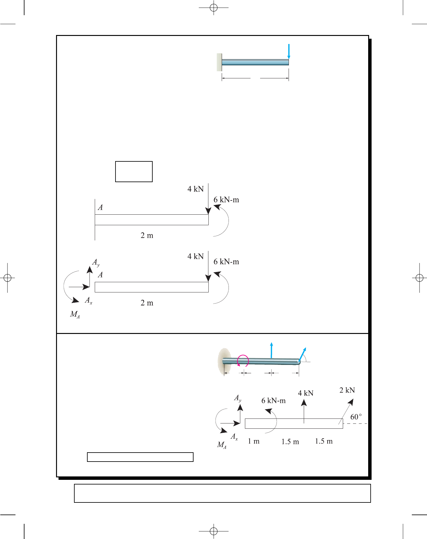 We obtain: Ax D �1 kN, Ay D �5.73 kN,MA D �22.9 kN-m