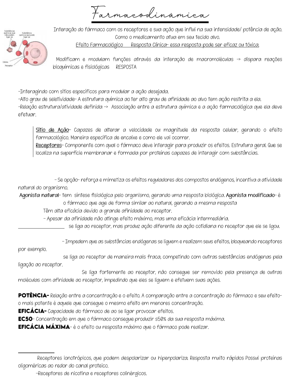 → ● → >>Como os fármacos atuam Classificação dos ligantes fármaco/receptor Agonista >>Total- >>Parcial Agonista Inverso- Antagonista >>Competitivo- >> Não Competitivo- Tipos de Receptores Canais Iônicos TIPOS ● ● ● -> Receptor acoplado à proteína G -> Receptores ligados à quinases -> Receptores Nucleares