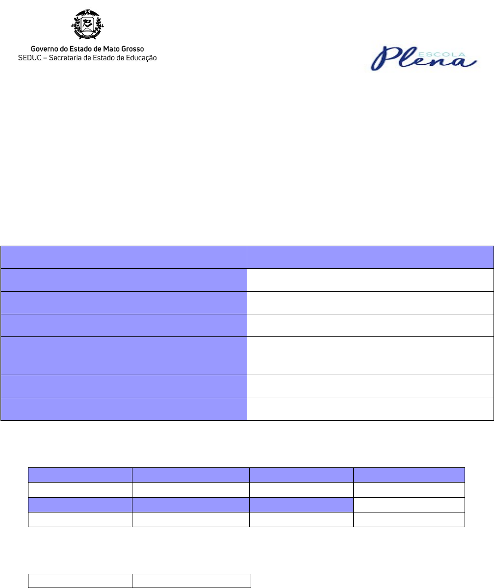 PLANO DE AÇÃO DA INTERVENÇÃO PEDAGÓGICA 1. IDENTIFICAÇÃO DA ESCOLA 1.1 Município: ARENÁPOLIS-MT 1.2 Nome: ESCOLA PLENA PREFEITO ALFREDO DE ARAÚJO GRANJA. 1.3 Equipe gestora: Função Nome Diretor MIRIANY DE PAULA M. DOS S. BARBOSA Secretário CARLOS ANDRÉ SANTANA DAMASCENA Coordenador Pedagógico MARILUCE ASCARI Orientador da Área de Ciências da Natureza e Matemática RICARDO JOSÉ LAHR Orientador da Área de Ciências Humanas DIANA FAVALESSA Orientador da Área de Linguagens JORGE DE OLIVEIRA AMORIM NETO 1.4 Etapas de atendimento (Inserir a quantidade de turmas nas alternativas de atendimento da escola): 1º Ciclo 1º Ano 2º Ano 3º Ano 1º Ano A/ 1º Ano B 2º Ano A/ 2º AnoB 3º Ano A / 3º Ano B 2º Ciclo 4º Ano 5º Ano 4º Ano A / 4º Ano B 5ºAno A/ 5º Ano B 2. PERÍODO DA AÇÃO INTERVENTIVA Início: 29/08 Término: 29/11 Após o envio deste plano de intervenção a escola já poderá iniciar a execução das ações; caso seja necessário algum ajuste, o mesmo poderá ocorrer concomitante a execução das atividades propostas. 3. RESULTADOS E METAS (Inserir as turmas, os resultados e as metas a serem atingidas nas quatro habilidades da BNCC que obtiveram menor desempenho na avaliação de intervenção). LÍNGUA PORTUGUESA TURMA: 1° A Habilidade BNCC Resultado obtido na avaliação de entrada % Meta[footnoteRef:1] a ser atingida % [1: Aumento de 60% a partir dos resultados obtidos na avaliação de intervenção diagnóstica em língua portuguesa.] Estudantes que realizaram a avaliação inicial Nº de estudantes transferidos/desistentes Nº de estudantes ingressos após a aplicação da avaliação de entrada Resultado obtido na avaliação de saída % EI03O04 50% 80% 21 EI03O05 72,73% 100% 21 EI03O07 77,27% 100% 21 EI03O09 79,55% 100% 21 MATEMÁTICA TURMA: 1°A Habilidade BNCC Resultado obtido na avaliação de entrada % Meta[footnoteRef:2] a ser atingida % [2: Aumento de 60% a partir dos resultados obtidos na avaliação de intervenção diagnóstica em matemática.] Estudantes que realizaram a avaliação inicial Nº de estudantes transferidos/desistentes Nº de estudantes ingressos após a aplicação da avaliação de entrada Resultado obtido na avaliação de saída % EI03ET08 45,45% 72,72% 22 EI03ET05 54,55% 87,82% 22 EI03ET07 70,45% 100% 22 EI03ET02 75% 100% 22 LÍNGUA PORTUGUESA TURMA: 1º B Habilidade BNCC Resultado obtido na avaliação de entrada % Meta a ser atingida % Estudantes que realizaram a avaliação inicial Nº de estudantes transferidos/desistentes Nº de estudantes ingressos após a aplicação da avaliação de entrada Resultado obtido na avaliação de saída % EI03EF09 77,08% 100% 24 EI03O07 83,33% 100% 24 EI03O04 95,83% 100% 24 EI03O05 72,73% 100% 24 MATEMÁTICA TURMA: 1º B Habilidade BNCC Resultado obtido na avaliação de entrada % Meta a ser atingida % Estudantes que realizaram a avaliação inicial Nº de estudantes transferidos/desistentes Nº de estudantes ingressos após a aplicação da avaliação de entrada Resultado obtido na avaliação de saída % EI03ET05 68,75% 100% 24 EI03ET02 72,91% 100% 24 EI03ET01 81,25% 100% 24 EI03ET08 85,42% 100% 24 LÍNGUA PORTUGUESA TURMA: 2° A Habilidade BNCC Resultado obtido na avaliação de entrada % Meta[footnoteRef:3] a ser atingida % [3: Aumento de 60% a partir dos resultados obtidos na avaliação de intervenção diagnóstica em língua portuguesa.] Estudantes que realizaram a avaliação inicial Nº de estudantes transferidos/desistentes Nº de estudantes ingressos após a aplicação da avaliação de entrada Resultado obtido na avaliação de saída % EF12LP16 39,13% 62,60% 21 EF12LP19 34,78% 55,64% 21 EF15LP01 47,83% 76,52% 21 EF15LP04 47,83% 76,52% 21 EF15LP17 43,48% 69,56% 21 MATEMÁTICA TURMA: 2°A Habilidade BNCC Resultado obtido na avaliação de entrada % Meta[footnoteRef:4] a ser atingida % [4: Aumento de 60% a partir dos resultados obtidos na avaliação de intervenção diagnóstica em matemática.] Estudantes que realizaram a avaliação inicial Nº de estudantes transferidos/desistentes Nº de estudantes ingressos após a aplicação da avaliação de entrada Resultado obtido na avaliação de saída % EF01MA05 8,70% 13,92% 16 EF01MA11 13,04% 20,86% 16 EF01MA15 47,83% 76,534% 16 EF01MA17 43,48% 69,57% 16 EF01MA20 39,13% 62,61% 16 LÍNGUA PORTUGUESA TURMA: 2° B Habilidade BNCC Resultado obtido na avaliação de entrada % Meta[footnoteRef:5] a ser atingida % [5: Aumento de 60% a partir dos resultados obtidos na avaliação de intervenção diagnóstica em língua portuguesa.] Estudantes que realizaram a avaliação inicial Nº de estudantes transferidos/desistentes Nº de estudantes ingressos após a aplicação da avaliação de entrada Resultado obtido na avaliação de saída % EF12LP07 50% 80% 20 EF15LP04 75% 100% 20 EF12LP19 85% 100% 20 EF12LP01 90% 100% 20 EF12LP14 90% 100% 20 EF12LP17 90% 100% 20 MATEMÁTICA TURMA: 2°B Habilidade BNCC Resultado obtido na avaliação de entrada % Meta[footnoteRef:6] a ser atingida % [6: Aumento de 60% a partir dos resultados obtidos na avaliação de intervenção diagnóstica em matemática.] Estudantes que realizaram a avaliação inicial Nº de estudantes transferidos/desistentes Nº de estudantes ingressos após a aplicação da avaliação de entrada Resultado obtido na avaliação de saída % EF01MA11 80% 100% 20 EF01MA17 80% 100% 20 EF01MA05 85% 100% 20 EF01MA15 85% 100% 20 EF01MA09 95% 100% 20 LÍNGUA PORTUGUESA TURMA: 3° A Habilidade BNCC Resultado obtido na avaliação de entrada % Meta[footnoteRef:7] a ser atingida % [7: Aumento de 60% a partir dos resultados obtidos na avaliação de intervenção diagnóstica em língua portuguesa.] Estudantes que realizaram a avaliação inicial Nº de estudantes transferidos/desistentes Nº de estudantes ingressos após a aplicação da avaliação de entrada Resultado obtido na avaliação de saída % EF12LP15 0,00 60% 21 EF15LP14 56,52% 90,43% 21 EF15LP01 65,22% 100% 21 EF15LP04