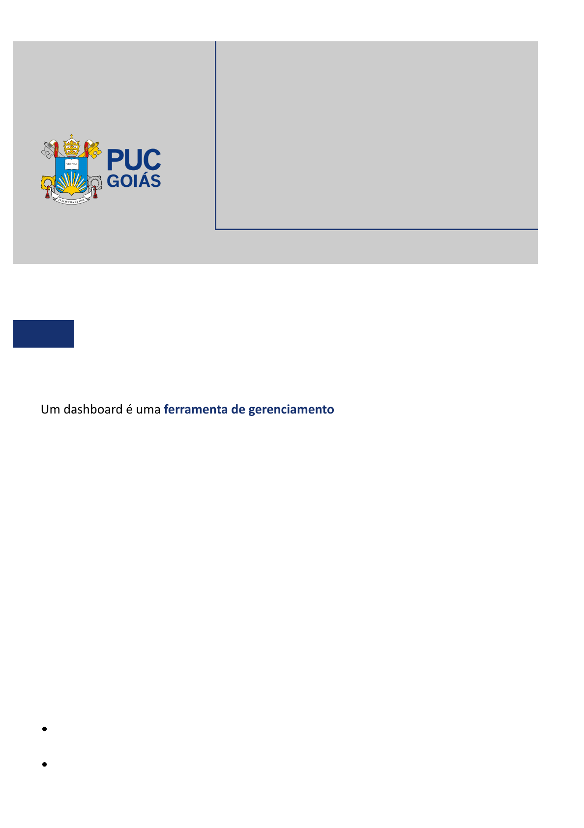 20/08/2020 https://sagahcm.sagah.com.br/sagahcm/sagah_ua_dinamica/impressao_ua/21197071 https://sagahcm.sagah.com.br/sagahcm/sagah_ua_dinamica/impressao_ua/21197071 1/26 ANÁLISE DE DADOS UTILIZANDO DASHBOARDS APRESENTAÇÃO Olá! Um dashboard é uma ferramenta de gerenciamento de informações que rastreia visualmente, analisa e exibe os principais indicadores de desempenho, métricas e pontos de dados principais para monitorar a integridade de um negócio, departamento ou processos específicos. É personalizável para atender às necessidades específicas de um departamento ou empresa. Nesta Unidade de Aprendizagem, você verá como os dashboards u�lizam-se de técnicas de visualização de dados/informações, combinadas com tecnologias de processamento de grandes quan�dades de dados, para oferecer insights aos usuários. Verá a importância da visualização de dados, que é um termo geral para descrever todo esforço de ajudar as pessoas a entender o significado dos dados, colocando-os em um contexto visual. Bons estudos. Ao �nal desta Unidade de Aprendizagem, você deve apresentar os seguintes aprendizados: Definir dashboard. Descrever os bene�cios dos dashboards. babic Realce 20/08/2020 https://sagahcm.sagah.com.br/sagahcm/sagah_ua_dinamica/impressao_ua/21197071 https://sagahcm.sagah.com.br/sagahcm/sagah_ua_dinamica/impressao_ua/21197071 2/26 Aplicar dashboards na ciência de dados. DESAFIO A criação de dashboards é um grande desafio, já que é necessário exibir informações corretas, que impactem na tomada de decisão das empresas e governo. Uma informação incorreta em um dashboard pode muitas vezes ocasionar tomadas de decisão equivocadas e impactar os negócios ou a vida das pessoas. Por isto, a prá�ca na criação de dashboards é um importante item, que precisa ser estudado. Neste Desafio, você deve criar um dashboard para acompanhar 3 tópicos, usando o Tweetdeck. Você irá selecionar a opção "Search" para inserir os termos de busca. http://lrq.sagah.com.br/uasdinamicas/uploads/layouts/1434543708_15706523162a088eac440624177e2bcdff418f79e85a7a3fed.jpg 20/08/2020 https://sagahcm.sagah.com.br/sagahcm/sagah_ua_dinamica/impressao_ua/21197071 https://sagahcm.sagah.com.br/sagahcm/sagah_ua_dinamica/impressao_ua/21197071 3/26 Os tópicos do dashboard devem ser: - Meio ambiente - Natureza - Árvores Como forma de entrega, você deve �rar print screens do seu dashboard, que deve conter como �tulo o seu nome + "Dashboard sustentável". Por exemplo: "João - Dashboard sustentável" Embora os tweets sejam informações públicas, após realizar o print do dashboard, se possível, u�lize uma ferramenta de brush para esconder o nome dos usuários a fim de preservar a iden�dade deles. INFOGRÁFICO Os principais conceitos de data science vão ao encontro da criação de dashboards no momento em que todo o trabalho baseado em dados precisa levar valor ao negócio. É neste momento que o uso de dashboards é perfeitamente encaixado no contexto de ciência de dados. Por meio do uso dos dashboards, toda a inteligência ob�da com a análise é exibida para o cliente/usuário. Este então pode tomar decisões a par�r das informações coletadas. Neste Infográfico você irá entender a relação da ciência de dados com o uso de dashboards para apresentar os resultados aos usuários. Note que o uso de dashboards é uma forma de entrega de valor de todo o trabalho realizado com base nos dados. 20/08/2020 https://sagahcm.sagah.com.br/sagahcm/sagah_ua_dinamica/impressao_ua/21197071 https://sagahcm.sagah.com.br/sagahcm/sagah_ua_dinamica/impressao_ua/21197071 4/26 http://lrq.sagah.com.br/uasdinamicas/uploads/layouts/1747272117_156829367990f5108ff36268cf17602608aea0388312ded2fb.jpg 20/08/2020 https://sagahcm.sagah.com.br/sagahcm/sagah_ua_dinamica/impressao_ua/21197071 https://sagahcm.sagah.com.br/sagahcm/sagah_ua_dinamica/impressao_ua/21197071 5/26 CONTEÚDO DO LIVRO Um dashboard ajuda você a monitorar eventos ou a�vidades rapidamente, fornecendo insights e análises importantes sobre seus dados em uma ou mais páginas ou telas. Já a ciência de dados facilita a obtenção de insights u�lizando-se de técnicas para extração, mineração e processamento dos dados. Apenas a ciência de dados permite a obtenção de alguns insights, mas é possível potencializar esse processo com o uso dos dashboards. No capítulo Análise de dados u�lizando dashboards, do livro Introdução a Big Data e Internet das Coisas (IoT), você irá conhecer os principais conceitos sobre dashboards, saberá quais são os principais bene�cios e desafios na criação deles, e ainda como o seu uso se relaciona com a ciência de dados. Boa leitura. 20/08/2020 https://sagahcm.sagah.com.br/sagahcm/sagah_ua_dinamica/impressao_ua/21197071 https://sagahcm.sagah.com.br/sagahcm/sagah_ua_dinamica/impressao_ua/21197071 6/26 20/08/2020 https://sagahcm.sagah.com.br/sagahcm/sagah_ua_dinamica/impressao_ua/21197071 https://sagahcm.sagah.com.br/sagahcm/sagah_ua_dinamica/impressao_ua/21197071 7/26 20/08/2020 https://sagahcm.sagah.com.br/sagahcm/sagah_ua_dinamica/impressao_ua/21197071 https://sagahcm.sagah.com.br/sagahcm/sagah_ua_dinamica/impressao_ua/21197071 8/26 babic Realce babic Realce babic Realce babic Realce babic Realce babic Realce 20/08/2020 https://sagahcm.sagah.com.br/sagahcm/sagah_ua_dinamica/impressao_ua/21197071 https://sagahcm.sagah.com.br/sagahcm/sagah_ua_dinamica/impressao_ua/21197071 9/26 babic Realce babic Realce babic Realce babic Realce babic Realce babic Realce babic Realce babic Realce babic Realce babic Realce babic Realce 20/08/2020 https://sagahcm.sagah.com.br/sagahcm/sagah_ua_dinamica/impressao_ua/21197071 https://sagahcm.sagah.com.br/sagahcm/sagah_ua_dinamica/impressao_ua/21197071 10/26 babic Realce babic Realce babic Realce babic Realce babic Realce babic Realce babic Realce babic Realce babic Realce babic Realce babic Realce babic Realce babic Realce babic Realce babic R