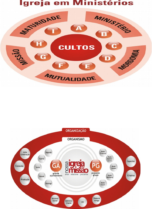 IMPLANTANDO E GERENCIANDO PEQUENOS GRUPOS POR QUE PEQUENOS GRUPOS? No final de 2008, um profundo descontentamento se instalou na liderança da IBC, a qual, conduzida pelos seus pastores, direcionou esse descontentamento para um repensar da forma como fazíamos Igreja, até então, estruturada em ministérios. A Rede ministerial foi uma ferramenta fantástica para IBC pois desafiou todos a se envolverem na causa usando seus dons e respeitando seu perfil de servo. Vivendo ministérios, crescemos como servos e na mobilização e envolvimento dos discípulos na missão da igreja. Contudo, percebemos que havia pouca sinergia entre os ministérios, suas atividades e programações. Estávamos realizando muito movimento mas, sem um deslocamento claro. Isso não invalida o princípio da Rede Ministerial que ainda é mantido por nós: “pessoa certa, no lugar certo, pelas razões certas”. O descontentamento de 2008 nos levou à visão de uma Igreja focada nos relacionamentos, onde não somente o serviço seria evidenciado, mas o pastoreio, a edificação, o evangelismo, independente de uma estrutura ministerial. É importante lembrar que a IBC sempre viveu pequenos grupos, contudo, como mais um ministérios e não como expressão do "ser" igreja. Entendemos que não estamos construindo apenas um “novo modelo” de Igreja, mas resgatando a essência do viver Igreja. Assim, temos vivido em constante mudança na forma de viver Igreja. Temos redirecionado toda força, da pesada estrutura do “fazer” (ministérios) para a leveza do “ser” (Pequenos Grupos). Isto significa investir em relacionamentos tendo no pequeno pequeno a mais forte expressão do ser Igreja. Acreditamos que a igreja de casa em casa, sejam grupos pequenos ou células, é o modelo bíblico de igreja, conforme Atos 2:42-47. REVOLUÇÃO DA SIMPLICIDADE Como a estrutura da igreja pode atuar para contribuir ou dificultar o cumprimento da missão? Toda igreja é um corpo vivo que funciona como organismo e como organização, são duas dimensões: espiritual e estrutural. a dimensão espiritual está relacionada com a igreja enquanto organismo, enquanto corpo de cristo (At 2:42-47) salvação, edificação, comunhão, adoração, são frutos da ação do espírito santo, atributos da igreja corpo. A dimensão estrutural diz respeito à igreja enquanto organização, sua estrutura física, seus recursos, processos, ministérios, programações, (At 6:1-7). Deixamos de estar “amarrados” a estrutura/organização para continuar crescendo como corpo. A Estrutura é serva da igreja, mas é a ação do Espírito Santo de Deus no corpo, no organismo, por meio dos relacionamentos autênticos que determinam o avanço da igreja. A estrutura deve servir de apoio, algo que contribua para levar as pessoas pelo caminho mais curto até Jesus. A igreja em PG, potencializa essa caminhada. Alguns aspectos na mudança estrutural da IBC; IGREJA EM MINISTÉRIOS/DEPARTAMENTOS IGREJA EM PEQUENOS GRUPOS/NAS CASAS 1. A igreja é cultocêntrica (templo) 2. Novos membros chegam via eventos e cultos 3. O ensino se dá na escola bíblica (classe) 4. O núcleo de serviço é o ministério 5. A liderança é centralizada 6. A eficiência é medida pela quantidade de ministérios e de pessoas nas programações. 7. Pouca sinergia entre ações e equipes (Fig. 3) 8. Haviam várias declarações de missão 1. A igreja se reúne de casa em casa e nos cultos 2. Novos membros chegam via pequenos grupos 3. O ensino é realcional e prioriza formar líderes 4. Pequeno Grupo é o núcleo de seviço 5. Liderança é compartilhada e autoridade é delegada à rede de pastoreio. 6. A eficiência é medida pelo número de discípullos dispostos a discipular outros 7. Decisões são coletivas e equipe mais sinérgica 8. Uma única declaração de nissão Ainda não estava claro. Faltava algo que pudesse traduzir nossa identidade de forma simples e objetiva. Quem somos? O que fazemos? Como um novo convertido ou alguém que chega à igreja identificará o caminho que o conduzirá ao crescimento em cristo? Figura 3. REDEFINIÇÃO DA MISSÃO A Busca da simplicidade nos levou à redefinição de nossa declaração de missão. A nossa declaração de missão representa tamém, nossa estrutura e processo ministerial. Amar Mt 22:37 / Relacionar Jo 13:34-35 / Proclamar Mt 28:19-20 Quatro princípios nos ajudaram na simplificação do nosso "processo ministerial", ou seja, a estratégia da igreja para conduzir pessoas da salvação à maturidade espiritual. 1. CLAREZA Além da clareza de propósito (o que), precisamos definir o processo (como). As pessoas precisam conhecer o processo porque elas fazem parte do como executá-lo. O resultado final é a transformação de vida deles. Quem produz salvação e crescimento é deus! nós só apontamos o caminho: Jesus 1. Defina como cada atividade semanal é parte do processo: As atividades precisam ser definidas para saber como serão usadas para conduzir as pessoas através do processo de crescimento espiritual. Nossas atividades dizem o que é importante pra nós. Temos claramente definido o processo para conduzir pessoas da salvação à maturidade espiritual? CLAREZA Habilidade de comunicar o processo a ponto dele ser entendido pelas pessoas. Qual a missão de sua igreja? Sua liderança diria a mesma coisa? Os membros de sua igreja 2. MOVIMENTO É a sequência de passos que faz com que as pessoas se movam na direção de áreas de compromisso maiores. É a passagem do bastão, como uma corrida de revezamento Movimento é o que acontece entre os programas e atividades. É como alguém é passado de um nível de compromisso para outro nível maior. Exemplos: Quando a pessoa vai do culto aos pequenos grupos. Testemunhos nos cultos, pede líder p/ orar e acompanhar novos. Quando o membro sai de observador a participante do movimento. Membro se torna líder Igrejas simples prestam atenção às passagens de bastão. MOVIMENTO Sequência