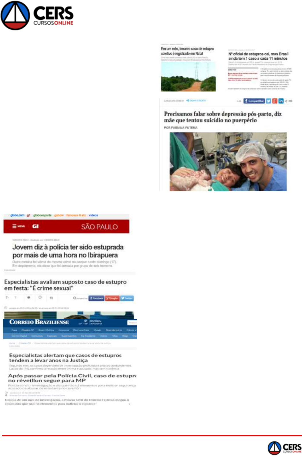 www.cers.com.br DELEGADO DE POLÍCIA CIVIL Medicina Legal – Aula 09 Wagner Bertolini 1 SEXOLOGIA FORENSE É a parte a Medicina Legal que estuda os proble- mas médico-legais relacionados ao sexo. A Sexologia Forense é a aplicação dos conhecimen- tos de sexologia que interessam ao Direito. É o capítulo da Sexologia que estuda as ocorrências médico- legais atinentes à gravidez, ao aborto, ao parto, ao puerpério, ao infanticídio, à exclusão da paternidade e a questões diversas relacionadas com a reprodução humana. Delton Croce Divide-se em capítulos, em que são abordados as- pectos específicos: Erotologia forense Himenologia forense Obstetrícia forense Erotologia forense: Estuda os crimes sexuais e os desvios sexuais Himeneologia forense: Estuda os problemas médi- cos legais relacionados com o casamento. Obstetrícia forense: Estuda os aspectos médico- legais relacionados com fecundação, gestação, parto, puerpério, além dos crimes de aborto e infan- ticídio. Erotologia Forense: Estuda os crimes sexuais e os desvios sexuais Segundo o Código Penal, são atos sexuais: Conjunção carnal Ato libidinoso O interesse jurídico, no caso de conjunção carnal, é: - crime de estupro - anulação de casamento - posse sexual mediante fraude - o interesse em caso de acidente. - Perícia deverá ocorrer imediatamente - os vestí- gios são efêmeros Estupro Constranger alguém, mediante violência “Art. 213. ou grave ameaça, a ter conjunção carnal ou a prati- car ou permitir que com ele se pratique outro ato libidinoso” é o ato sexual convencional: có-Conjunção carnal pula vaginal (coito pênis/vagina) desta espécie deli-Somente mulher pode ser vítima tuosa, podendo, no entanto, ser indiciada como coautora. stuprum ( afronta , infâmia, desonra) Conjunção carnal Também chamada de: • Cópula • Coito • Imissio penis in vaginam. É a relação entre homem e mulher, caracterizada pela penetração do pênis na vagina, com ou sem www.cers.com.br DELEGADO DE POLÍCIA CIVIL Medicina Legal – Aula 09 Wagner Bertolini 2 ejaculação (“imissio seminis”), com ou sem orgas- mo. Coito vestibular ou vulvar, desde que resulte OBS: gravidez, configura juridicamente conjunção carnal CONJUNÇÃO CARNAL É a introdução do membro viril na cavidade vaginal além da barreira himenal. Identificação Médico-legal: Os elementos considerados para se determinar se a mulher já praticou conjunção carnal são: ▫ Rotura himenal; ▫ Presença de esperma na cavidade vaginal; ▫ Gravidez. Atos Libidinosos atos libidinosos da conjunção carnal: diversos a) Cópulas ectópicas b) Atos orais c) Atos manuais a) Cópulas ectópica: cópulas fora da vagina: 1) cópula anal 2) Cópula retal 3) Cópula vulvar (cópula vestibular ou “ad introi- tum”) 4) Cópula entre as coxas b) Atos orais: 1) felação 2) cunilíngua (sexo oral na genitália feminina) 3) beijos e sucções nas mamas, coxas ou outras regiões de conotação sexual c) Atos manuais: 1) masturbação e 2) manipulações eróticas de todos os tipos Quanto à atividade Ativo - quando se exige que a vítima execute algum ato Passivo - quando se exige que a vítima apenas permita a execução do ato Misto Pode ocorrer dentro do casamento ATO LIBIDINOSO DIVERSO DA CONJUNÇÃO CARNAL Qualquer outro ato que vise satisfazer a libido (ape- tite sexual), que não seja a conjunção carnal. Identificação Médico-legal: *Presença de esperma em qualquer área do corpo da vítima; *Presença de saliva em áreas erógenas; : podem também ser encontradas equimoses Obs em áreas erógenas (arroxeados em forma de polpas digitais). Estupro Violência Concurso de força física e de emprego de meios capazes de privar ou perturbar o entendimento da vítima impossibilitando-a de reagir ou de se defen- der Quando o estupro é praticado mediante grave ame- aça, geralmente não deixa vestígios de violência no corpo da vítima, o que dificulta o trabalho pericial. Violência Efetiva a lei exige que o agressor tenha agido de Física: anulando ou a oposi-forma violenta, enfraquecendo ção ( ) resistência física da vítima A violência física (vis corporalis) deve ser obrigatori- amente provada Psíquica: O agente a vítima a uma forma de conduz não resistência por inibição ou por enfraquecimento das faculdades mentais embriaguez completa anestesia estados hipnóticos drogas alucinógenas (“Boa Noite Cinderela”) “Para a tipificação do estupro exige a lei que a víti- ma, efetivamente, com vontade incisiva e adversa, oponha-se ao ato sexual. Seu dissenso ao mesmo há de ser enérgico, resistindo, com toda sua força, ao atentado à sua liberdade sexual. Não se satisfaz, pois, com uma posição meramente simbólica, um não-querer sem maior rebeldia” “Estupro cometido mediante grave ameaça é crime que não deixa vestígios. Dispensável o exame peri- cial” Art. 217-A. Ter conjunção carnal ou praticar outro ato libidinoso com menor de 14 (catorze) anos Estupro de vulnerável - Menor de 14 anos (vulnerável) - Vítima e o agente conhe-alienada ou débil mental cia esta circunstância - Qualquer causa que impeça a vítima de resistir www.cers.com.br DELEGADO DE POLÍCIA CIVIL Medicina Legal – Aula 09 Wagner Bertolini 3 Lesões de Silenciamento As provas de violência ou luta, como equimoses, estigmas ungueais e escoriações, são pesquisadas nas mais diversas regiões do corpo da vítima, como faces internas das coxas, braços e região cervical. Lesões de Arrasto Mordida Humana na Mama Objetivos Periciais Comprovar a cópula vaginal Em relação à perícia, quais os que sinais duvidosos devem ser estudados para se provar a conjunção carnal? Os sinais duvidosos são: a) dor da vítima; b) hemorragia (podendo ou não ocorrer - quando tecido chamado hímen é rompido); c) presença de lesões no aparelho genital (equimo- ses, hematomas, contusões, escoriações etc.) - o fato de se encontrar estas le